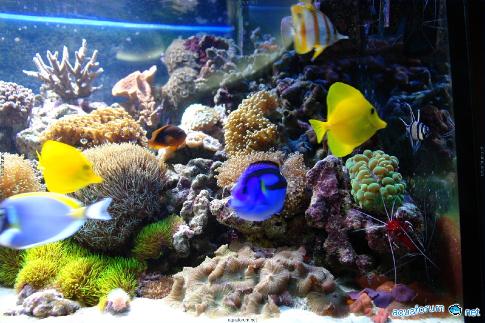 Hallo zusammen, ich möchte euch mein 580l Aquarium zeigen. Dieses Aquarium wurde im Dezember 2005 eingerichtet, die Maße sind 160-55-65 cm, Red Sea Salz, 80 kg lebende Steine, 140 kg Aragonitsand (Schumow Moskau), der Sumpf hat 130 Liter (muss genau gemessen werden). Die Beleuchtung besteht aus 2 Metallhalogenlampen mit je 150 Watt und 1300K sowie 3 blauen Kompaktlampen mit je 24 Watt (erworben bei Arowana). Hier sind ein paar Fotos.