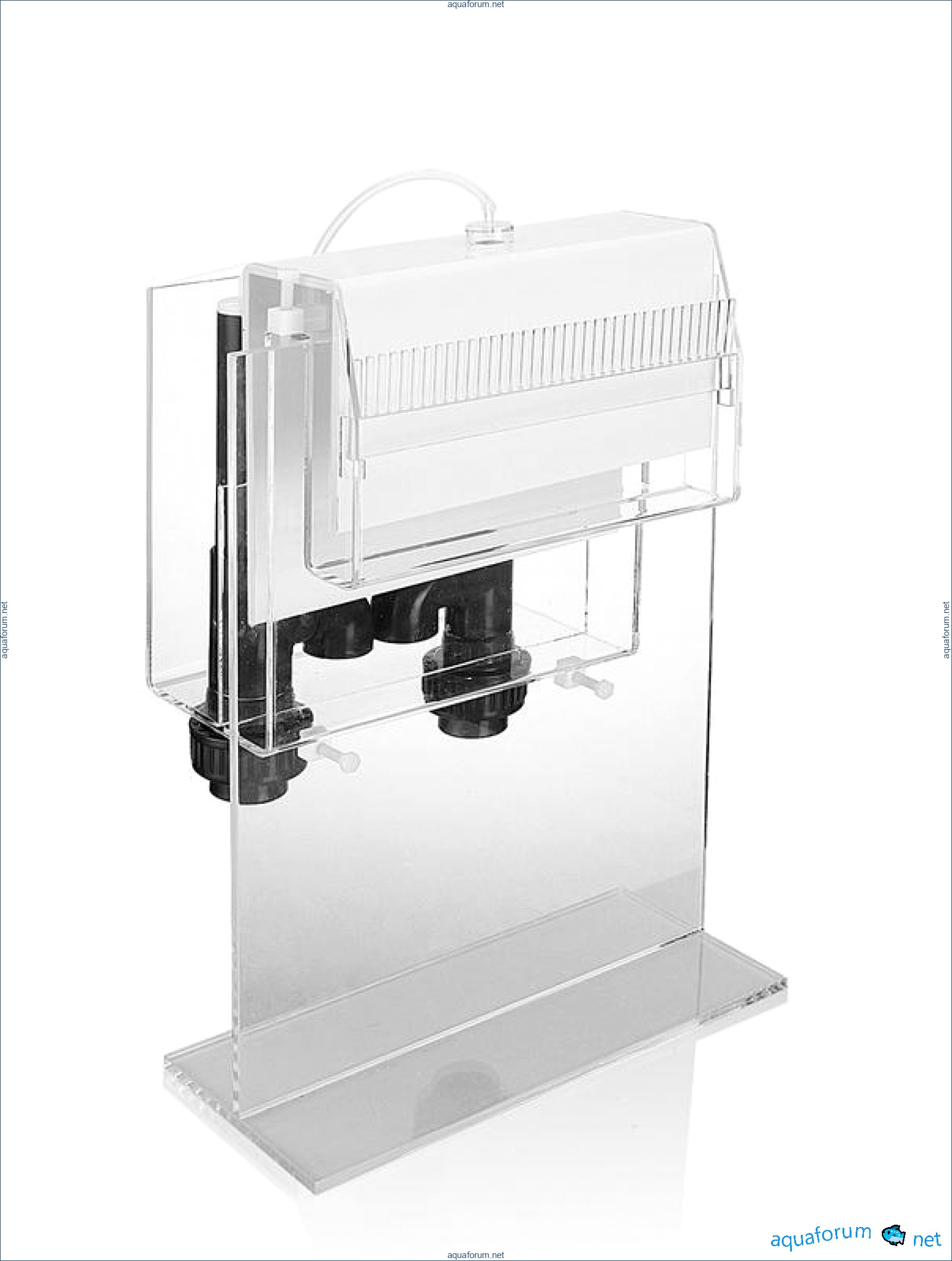 There is a problem. The drain will be through an overflow shaft like in the photo. The pipe diameter is 32mm. The aquarium is 450 liters. I'm thinking about how to best run a 32mm pipe all the way to the sump. Is it possible to use a 32mm pipe at the outlet and then transition to a 50mm pipe with a T-fitting? Now let me explain why. The transition from two 32mm pipes to one 50mm will be cheaper in terms of fittings. And I can install one 50mm valve to regulate the water flow, because installing two 32mm valves would be a bit more expensive. In short, I want it to be done well. Can someone suggest the best way to organize the drain for such an overflow? What pipes, valves, and fittings should be used? And for the return, will 25mm be sufficient for my volume?