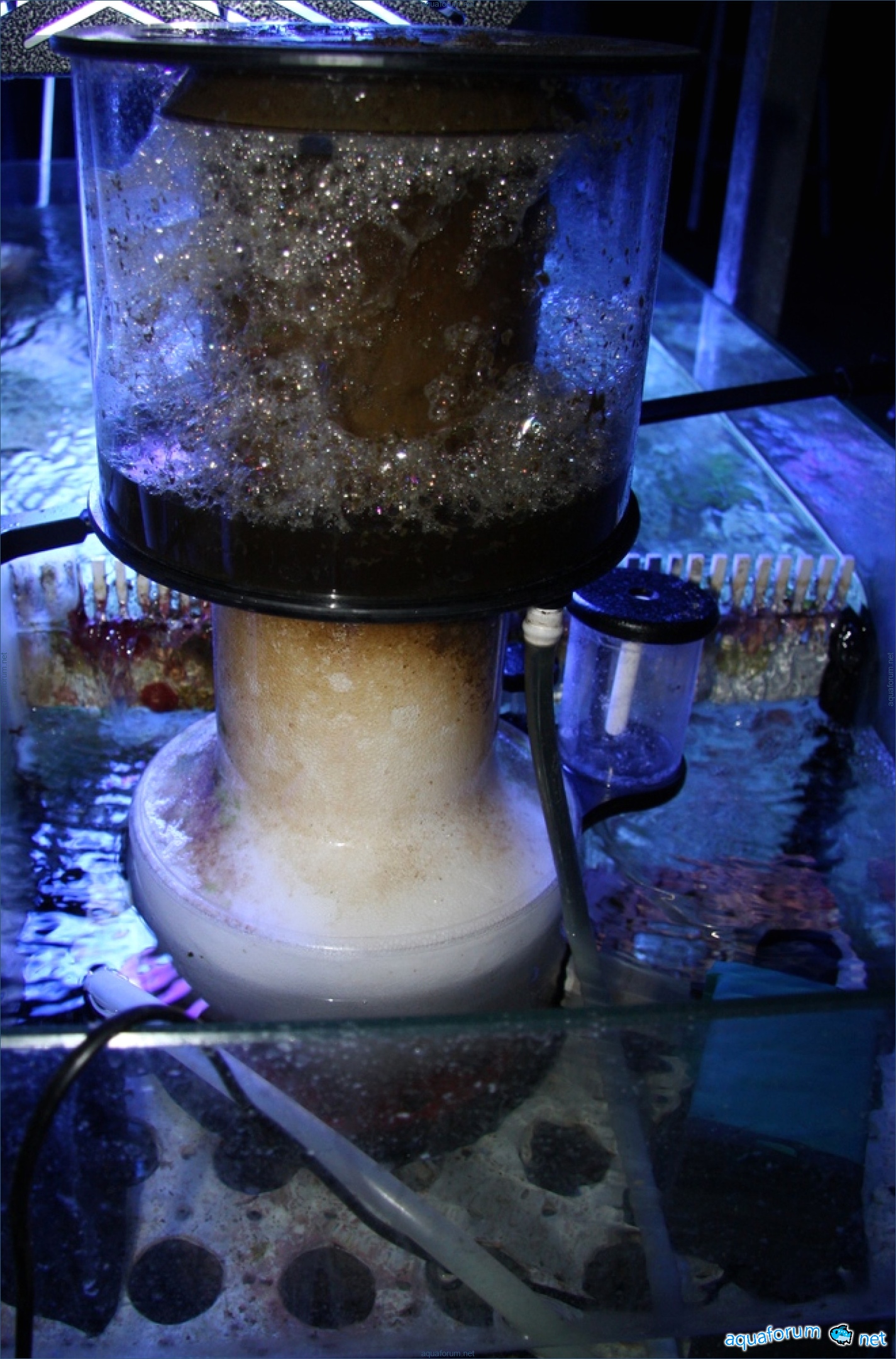 A lot has already been written about skimmers. The main discussion revolves around how much air and water a specific unit can handle, but it's difficult to find practical information on how much waste it actually removes. When transitioning to a larger volume, I considered replacing my skimmer with a new one. However, after observing how others work and trying out several models myself, I began to question the necessity of a replacement. I would like people to share their personal experiences. I think it would be interesting to compare the actual performance of different devices. Currently, I have an Aqua Medic Turboflotor Blue 1000 skimmer, with the original AQ 1200 pump replaced by an Aqua Medic PH 2500 Multi SL. My aquarium measures 125x55x60, holding around 400 liters, and is home to two tangs, two clownfish, a pair of mandarins, a pencilfish, and four shrimp. The corals, except for mushrooms, are all hard. The skimmer removes approximately 200-250 ml of foul-smelling waste per day. Despite its somewhat unclear design, it is very easy to adjust and start up.