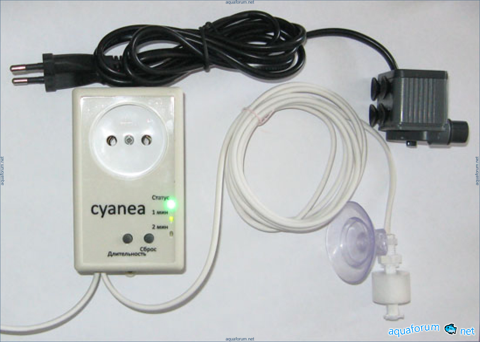 Equipment Control unit with socket Liquid level sensor Pump 190 l/h 0.4 m 3.3 W Hose 12/16 mm 1.5 m Operating principle 1. When the water level drops, the sensor is triggered. 2. The control unit tests the sensor for 30 seconds, and if the sensor remains in this state during that time (wave check), it supplies power to the socket for 1 minute or 2 minutes (as chosen). When using our pump, it will refill 2 or 4 liters, respectively. 3. After that, the control unit checks the sensor's position. If the state has not changed (for example, if the water in the refill container has run out), it disconnects the electricity and activates the sound alarm. If the state has changed, it disconnects the electricity and waits for further sensor activation.