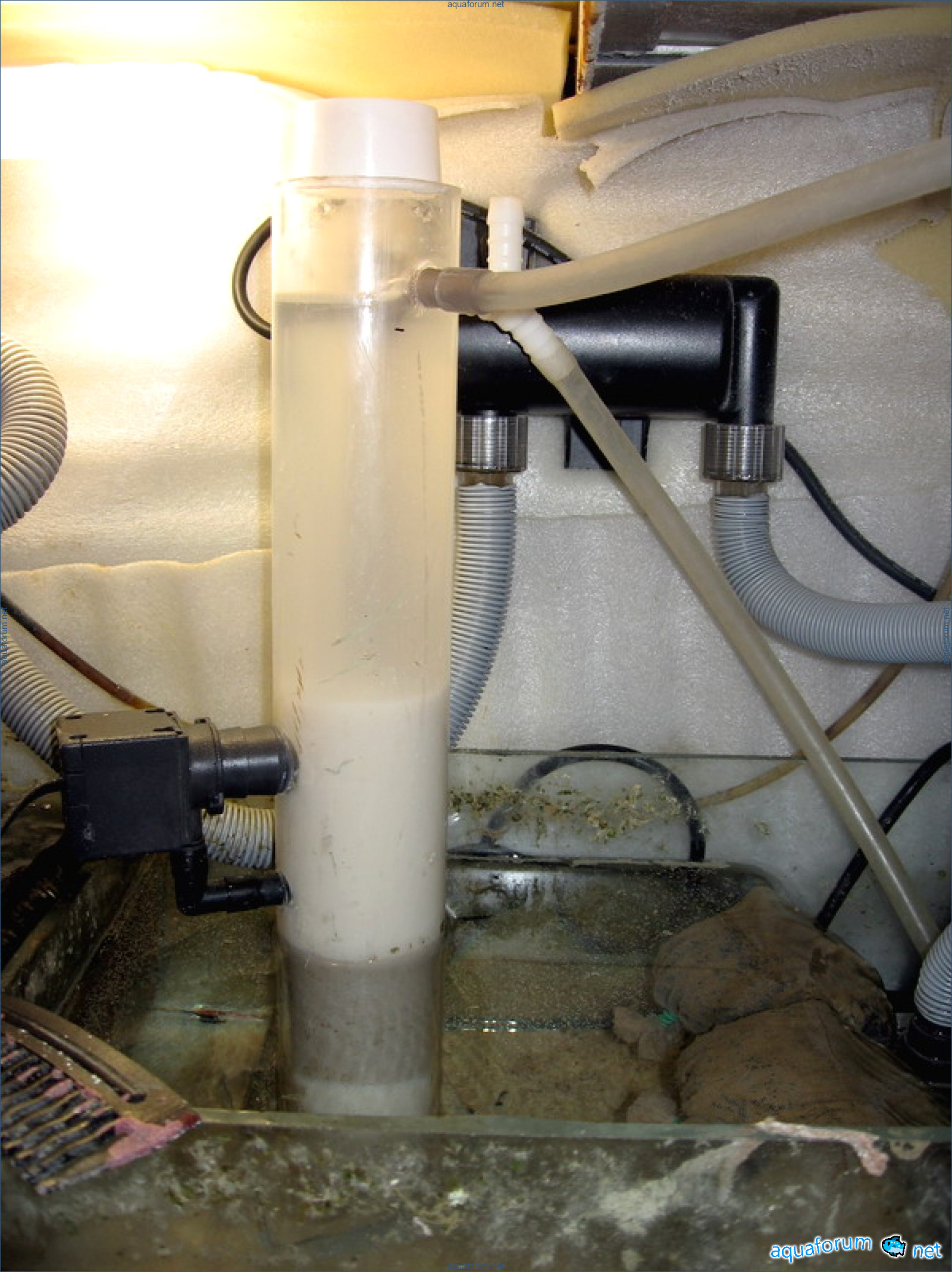 A film forms on the surface of the water in the calcium mixer, and it is recommended not to disturb it, so a tee is installed to prevent this film from flowing into the aquarium.