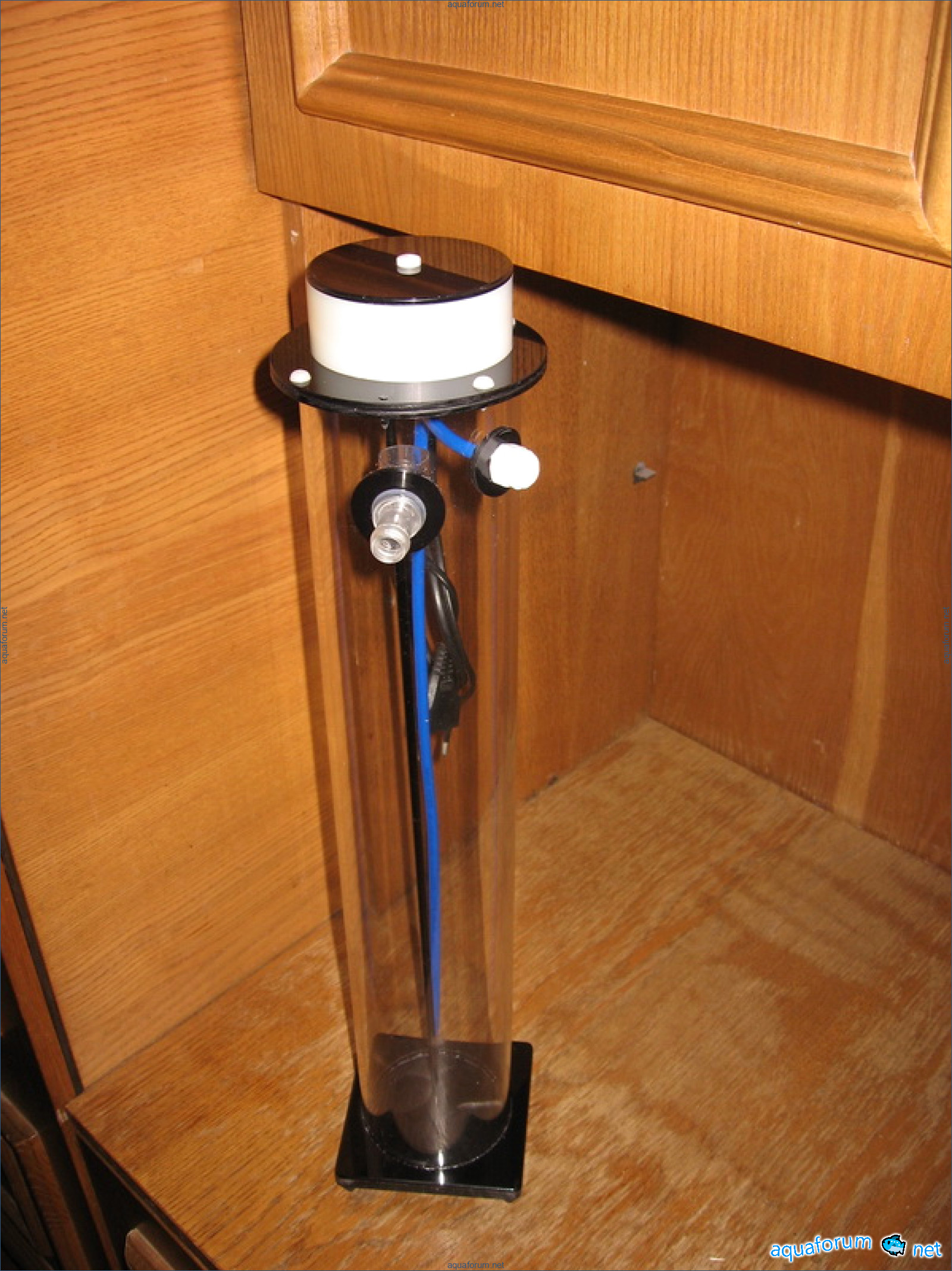 It works in conjunction with the auto-refill system, osmosis enters the mixer and displaces the already saturated calcium water through the white tee, while the hydroxide powder is mixed by the pump in a circular motion.