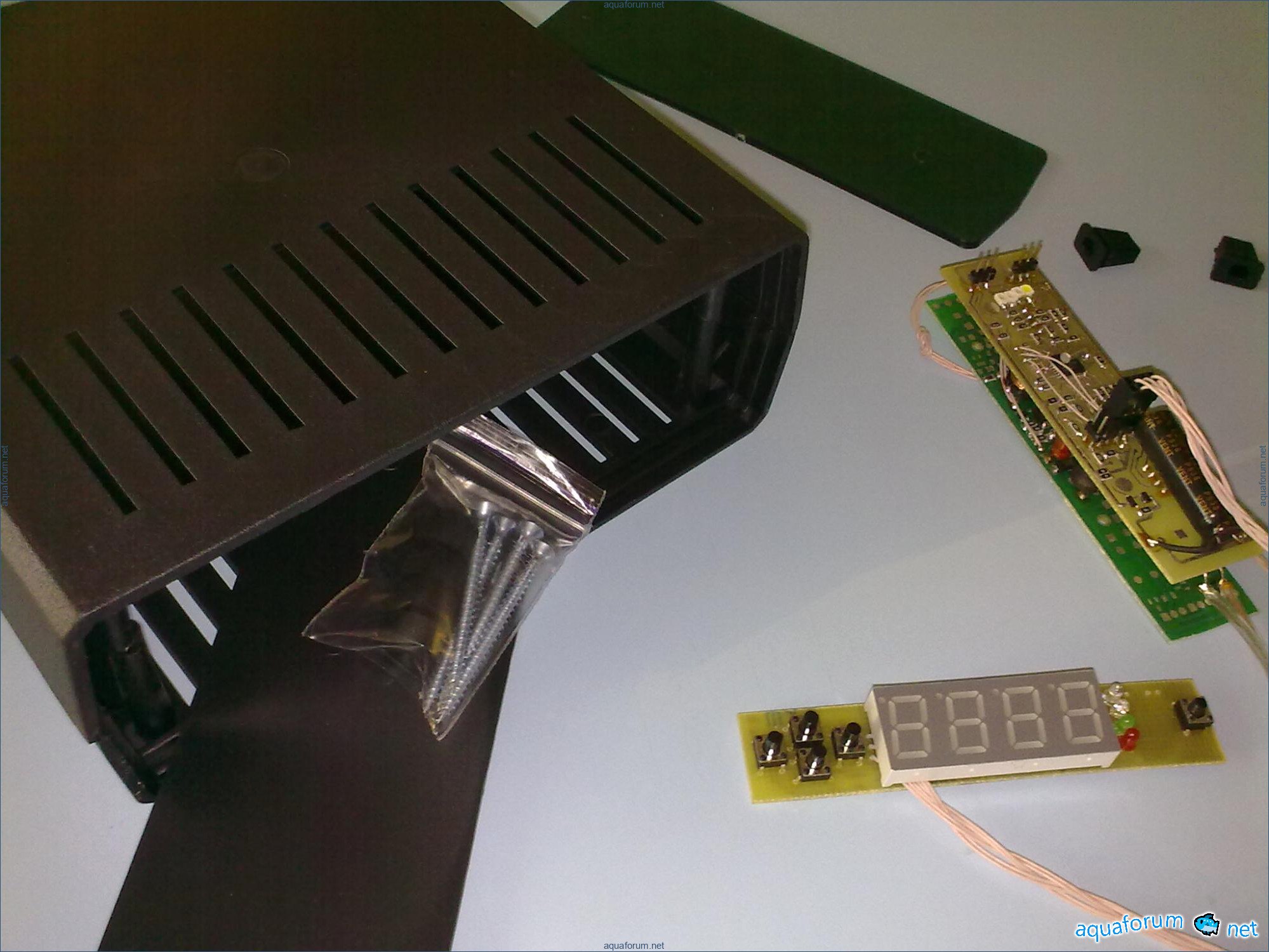 I had LED backlighting installed. The result was presented in the form of "electronic guts," albeit connected by wires. To enhance this product, I bought a box and a transparent glass for it. However, I couldn't find any answers to my questions about whether there are any mounting devices for the boards, what types they are, and which ones would fit the specified ones. Perhaps I didn't explain well. The weakest link that I currently don't see in terms of quality mounting, and especially how to make it look nice and be convenient to operate, is the NETWORK DISPLAY (for four characters). As seen in the photo, there is one button, followed by a vertical row of light indicators, then the DISPLAY for 4 characters, and finishing with a diamond-shaped block of adjustment buttons. The height of the buttons and the display is the same. And here’s what’s bothering me: 1) where can I buy guides/mounts for sticking under this board? 2) how can I attach all this to the transparent glass of the box so that the light indicators are visible and without making horrible holes in it? Are there any overlay buttons available? (sorry for the terminology, I'm not an expert in this) Also, I would like to consult: I will be placing a dual board with a controller and a power supply in the same box. To cool the controller and the power supply, I plan to install a fan. If anyone knowledgeable in this matter or who has seen a similar implementation could advise me on where to go and what to look for, I would greatly appreciate it! Thank you in advance for your support!