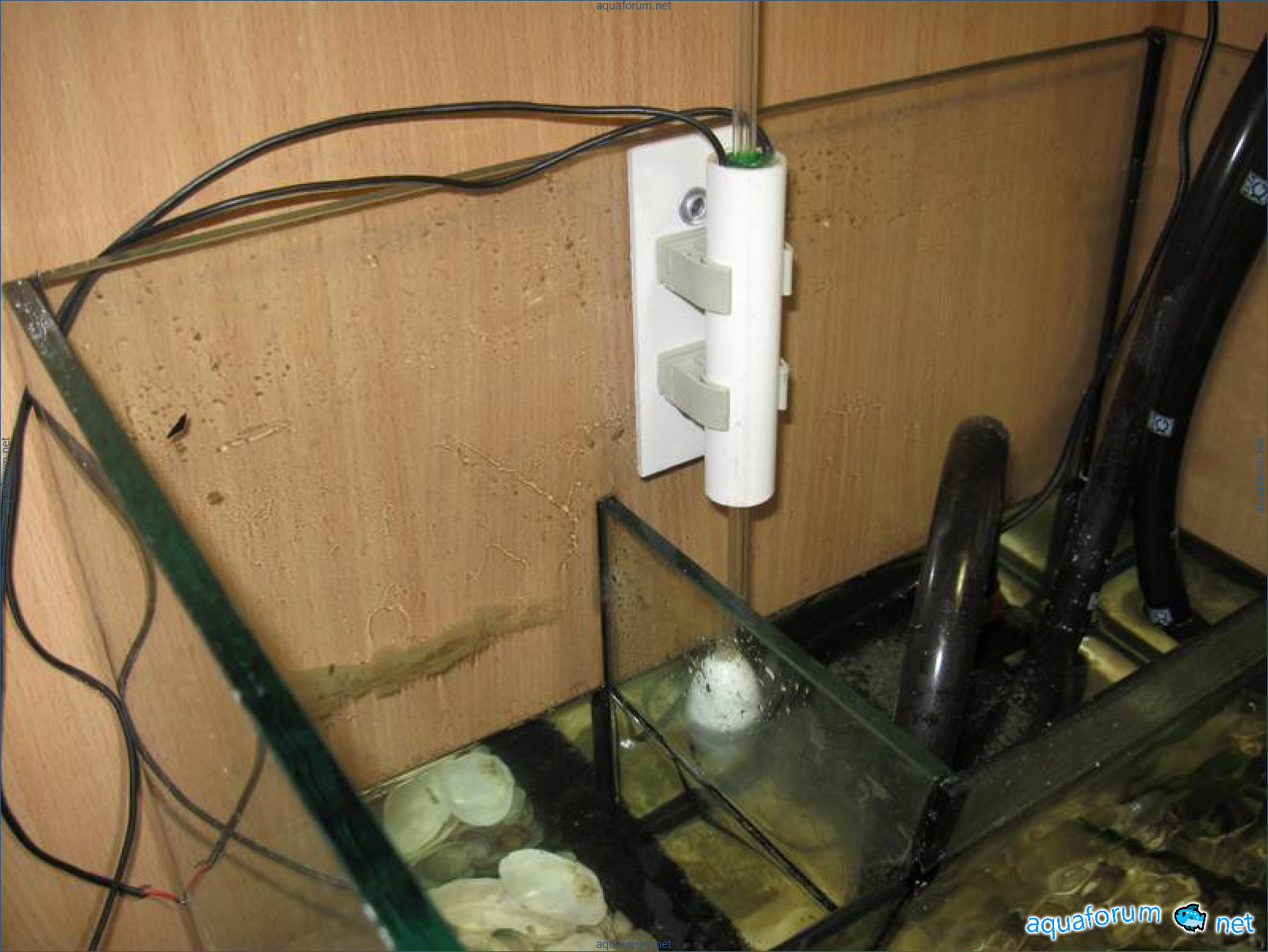 I decided to do it this way: in the side wall, at the required level (well, I just said it), a hole of 4-5mm is drilled (for the air tube), into which it is essentially embedded. The length of the tube is 10-15cm. The other end is soldered into the cap of a 5-liter plastic bottle. The bottle is filled with water and attached above the aquarium. I would draw it, but I think it's generally clear.