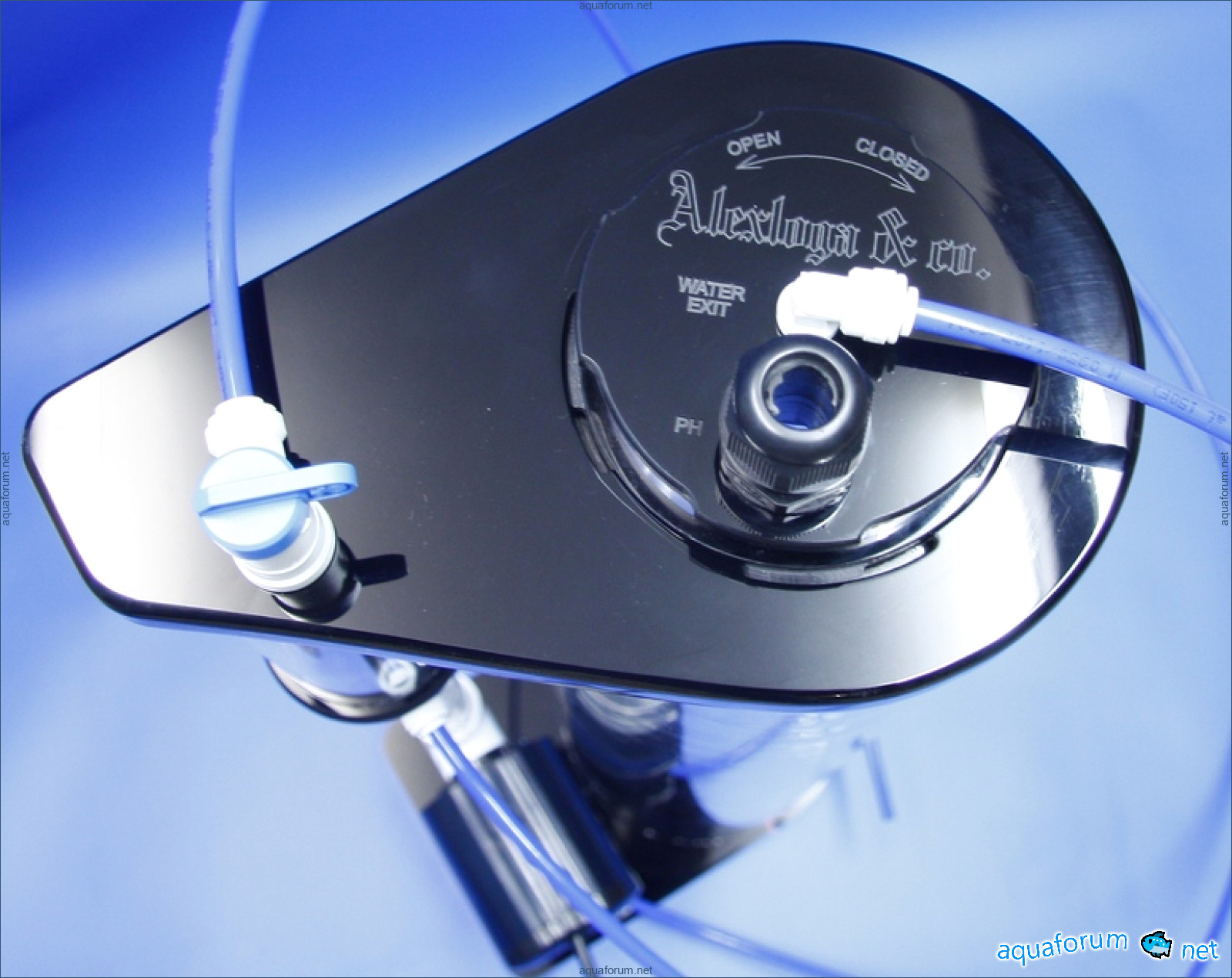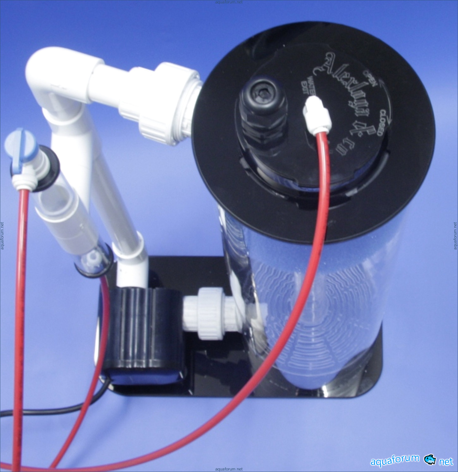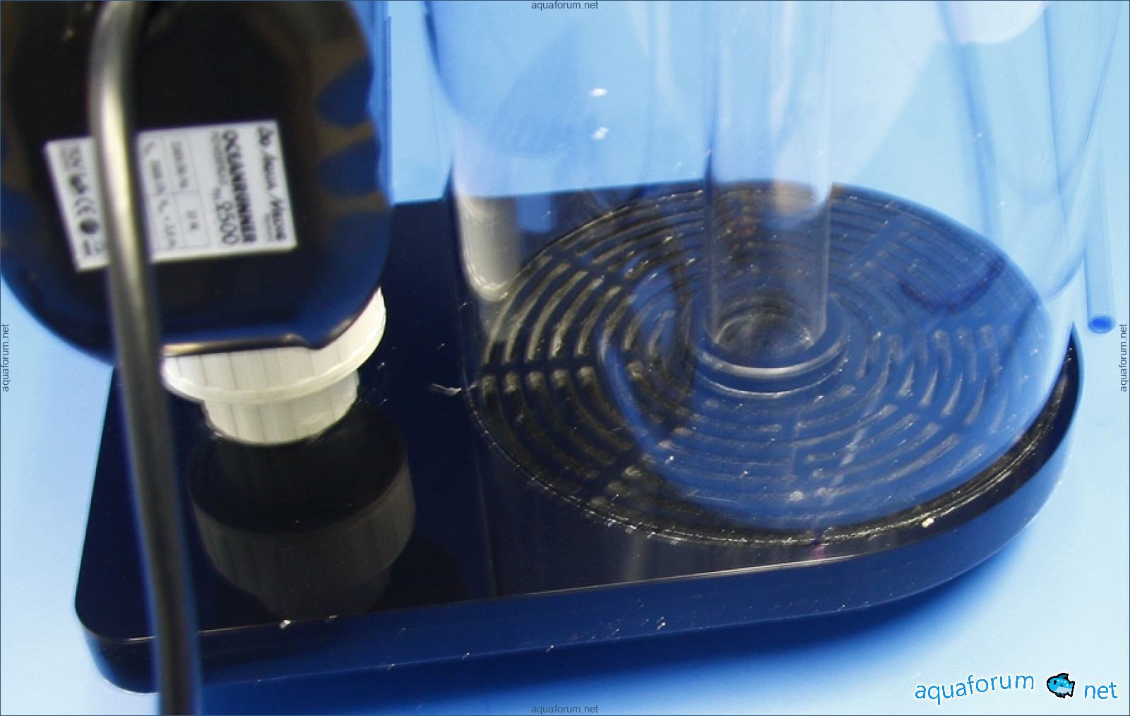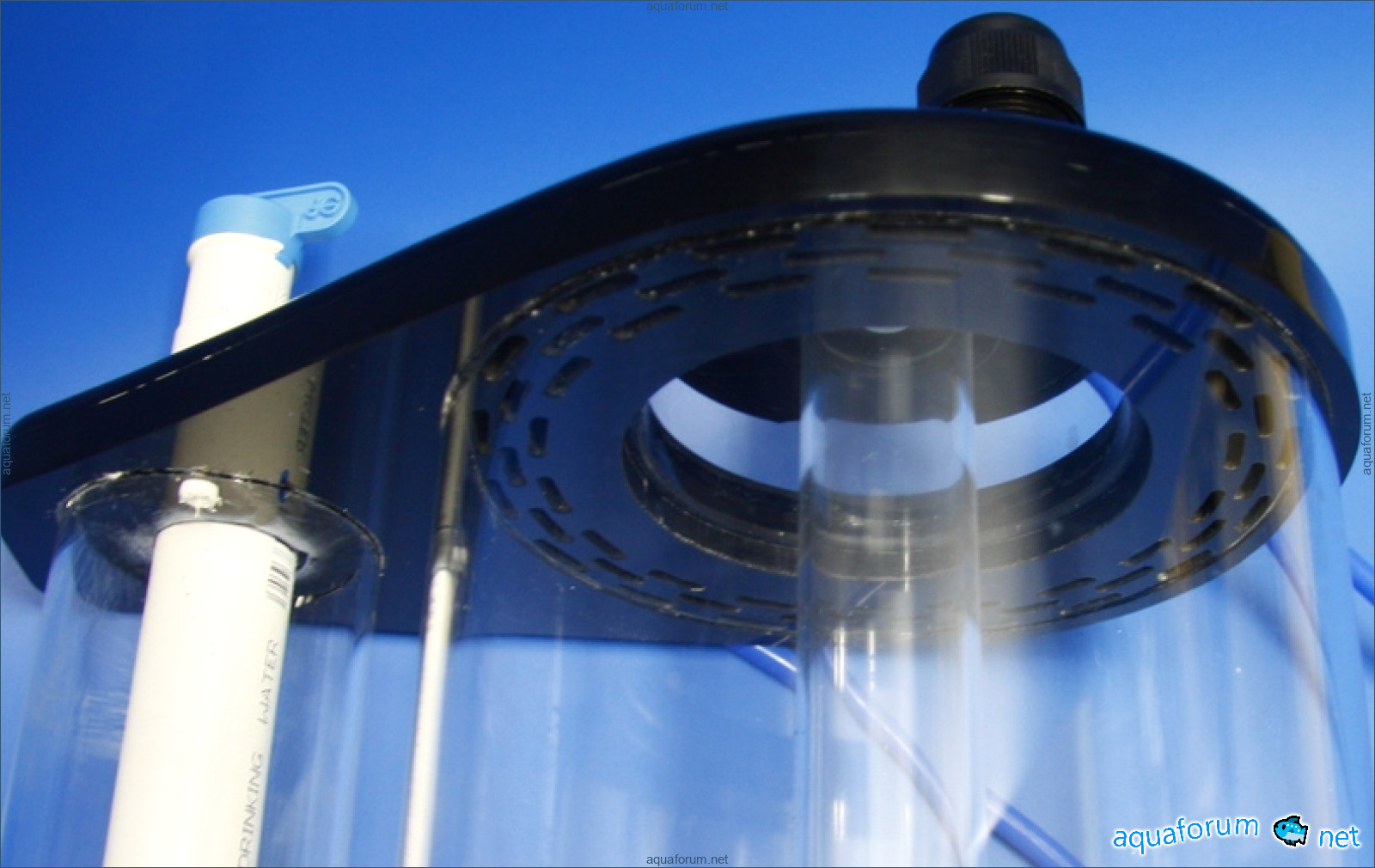 The essence lies in reducing the level of CO2 and undissolved particulate matter. In previous models, the outlet from the reactor was from the active zone (with high water movement and high CO2 saturation). The sponge only partially solves the problem. In this model, the water outlet goes through an additional chamber with a slow water flow (up to 5 l/h), allowing the particulate matter to settle and the remaining CO2 to be neutralized since there is no longer any saturation. Additionally, CO2 is reduced through dissolution (the filler is also added to this chamber).