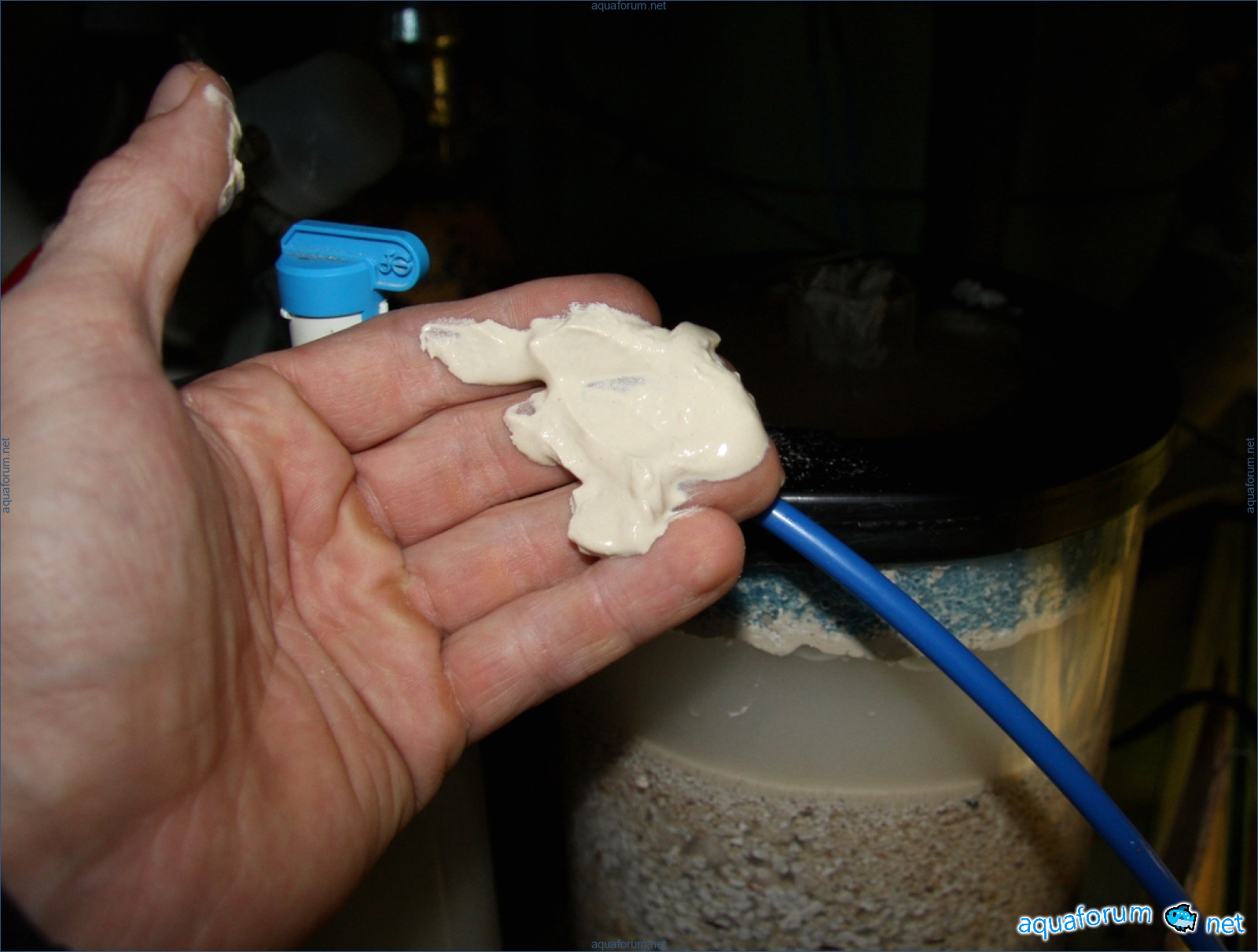 Here is what is being collected and how to remove it. The reactor was started about two years ago, and a significant amount of fine suspension has accumulated. When adding crumbs, the second chamber is flushed. All the accumulated suspension goes into the main chamber, and then it continues in a cycle. To flush, it is enough to turn on the reactor with the lid removed.