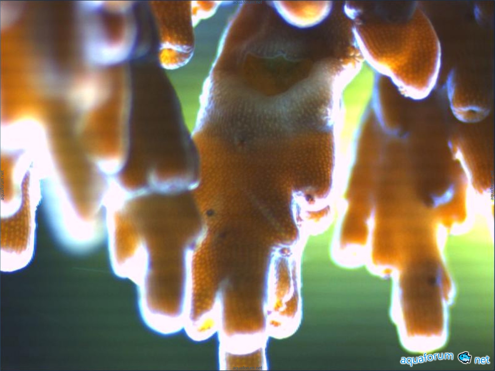 In the first photo, the tissue is missing from the skeleton; observe that under the right conditions, it can cover up. Do corals release polyps? There are little worms living on the stylophora; I don't know their names, but they are very often present on corals purchased from suppliers. You can see them by the tube and two tentacles. Stylophora need strong current... not direct, but strong.