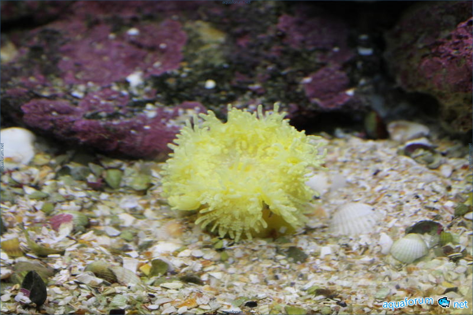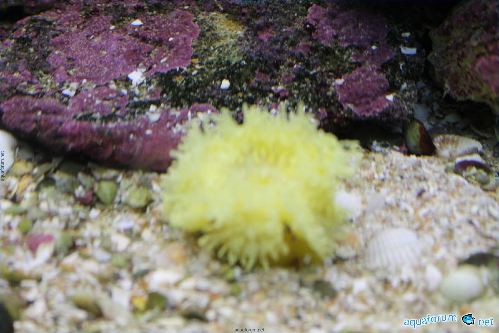 The anemone has burrowed its head into the ground. Who knows if this is its usual behavior or if something is bothering it? Recently, it has been swallowing squid and then spitting it out. Maybe it is sick?
