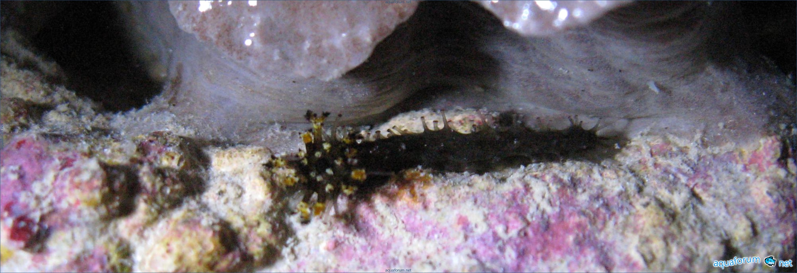 Harmless detritivore. Class Holothuroidea. Let it live, return it back to the aquarium.
