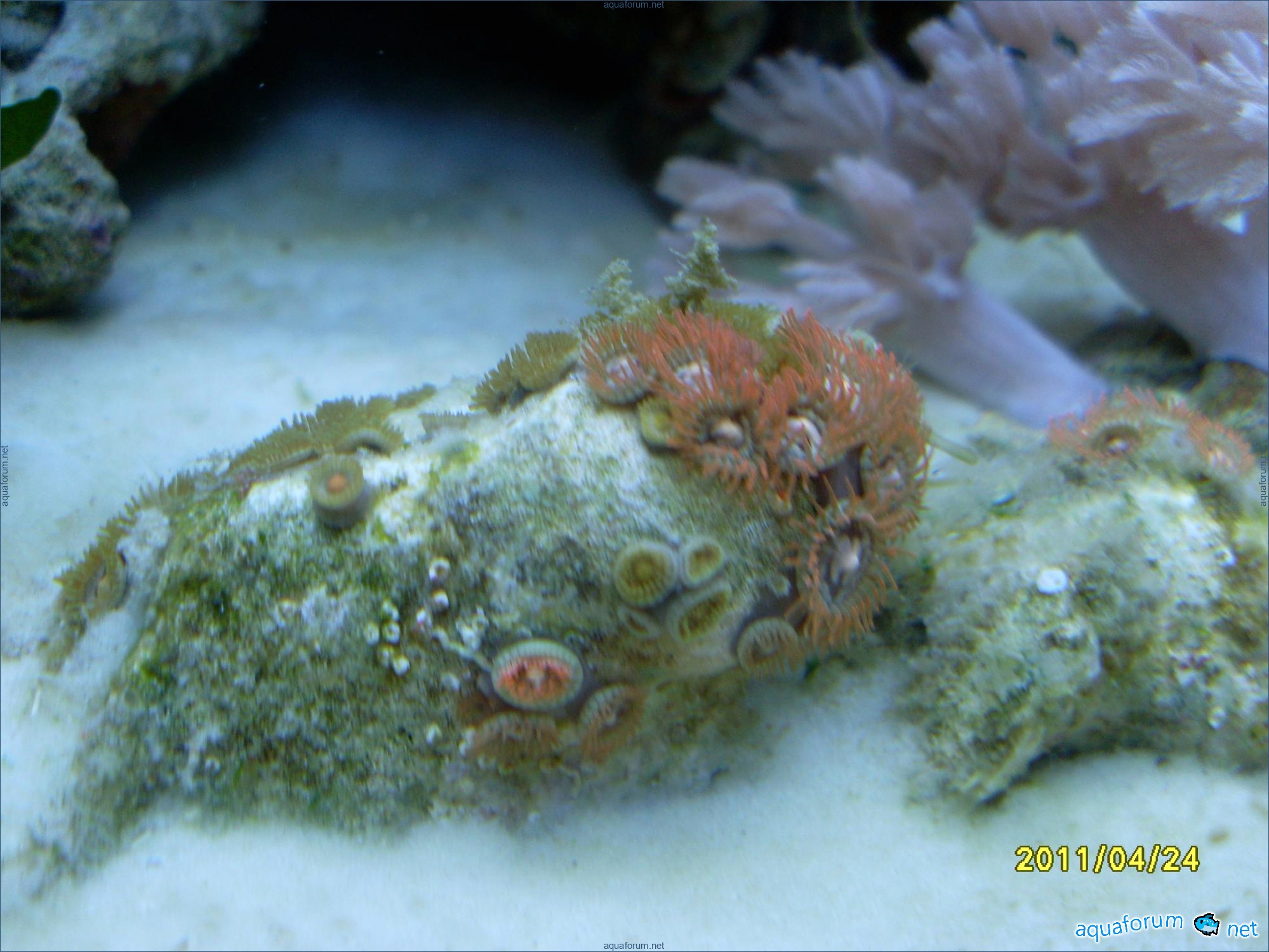 Hello everyone!!! Help me figure out what's wrong with the corals. They are shrinking in size and seem to be disappearing. In the first photo, you can see how they were, and in the second, what is left of them. Aqua 31 liters. Light: 2 * 24 compact blue-white + blue diodes. Salt: Red Sea Salinity 1.021-1.026. Water change once a week, 5 liters. Tests: Salifert KH-7.2, Po2-0, No3-5, but usually it's 0 after the experiment without water changes and feeding. The other inhabitants, Clavularia, Xenia, Sinularia, Rhodactis, Parazoanthus, and mushrooms are doing great. I met someone at an exhibition in Kyiv who advised me to observe at night to see if anything is eating my corals. He said there are small snails that might be nibbling on them. After keeping watch by the aquarium at night, I noticed some tiny bugs in shells that were nibbling on the corals. So that's the situation. I'm also thinking about getting a test for silicates; is it worth it? It seems like the other corals are living, growing, and dividing, except for the corals.