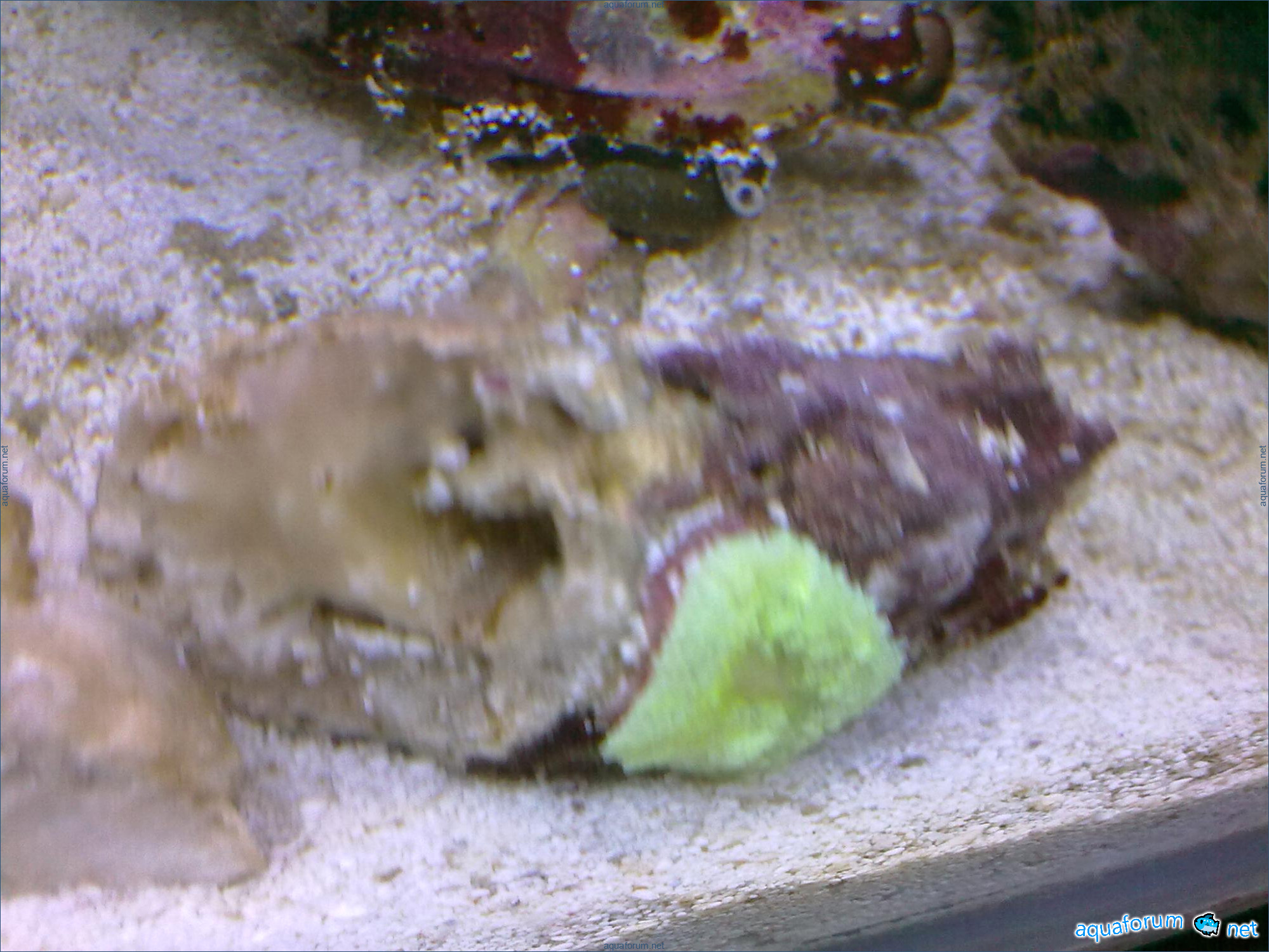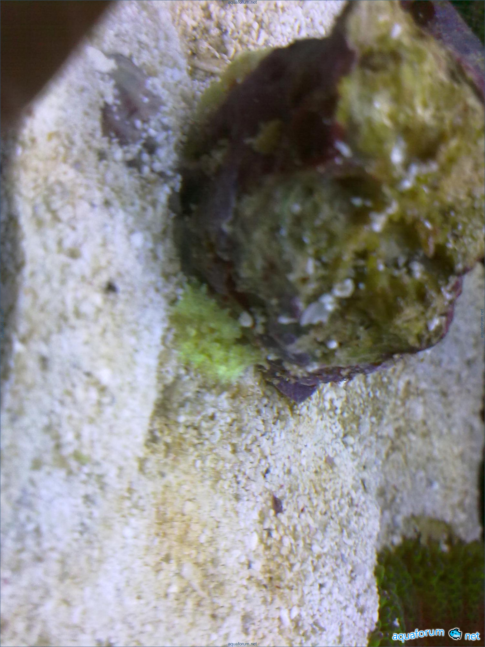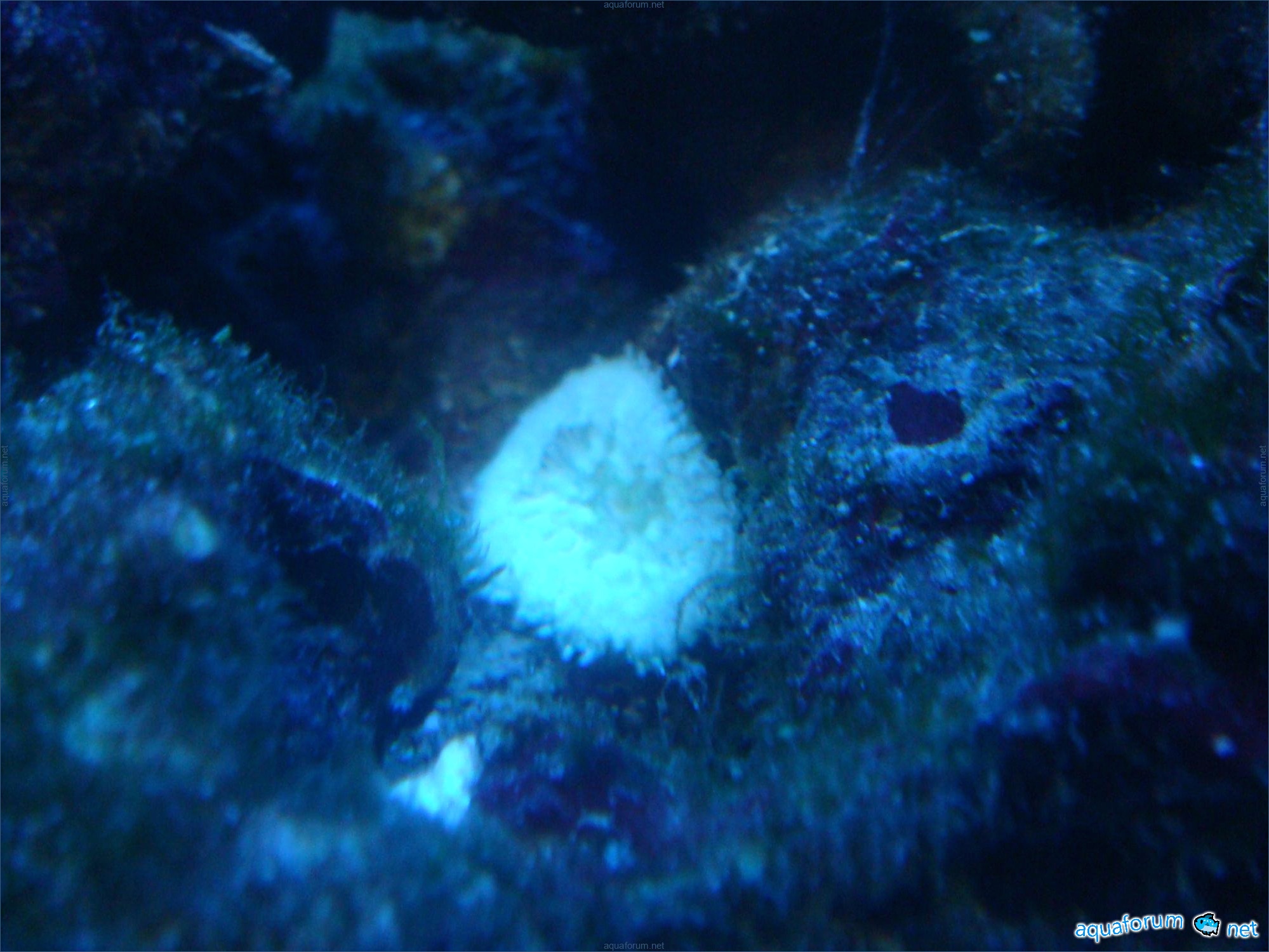 Have a good day, everyone. I received 2 actiniae the size of 25 kopecks on the Marchenkov stones. One is snow-white with a red foot, the other is a dirty brownish-green color. As soon as I placed the stones, they stayed in one spot, but after a couple of hours, they had already scurried into the nearest crevices about 5 centimeters away from them. They are quick. When the main light is turned off, they crawl into the crevice, with only the edge visible. The light turns on, and they open up again in a couple of minutes. The polyps are small and numerous. But they are not round like bubbles, but sharp. One can be photographed somehow, but the other is impossible. What are your thoughts on this? The thing is, the worker said in the store that this time many such actiniae came on the stones, but he is not aware of the genus, let alone the species. This means that some of those sailors who took stones from the last shipment also received these creatures.
