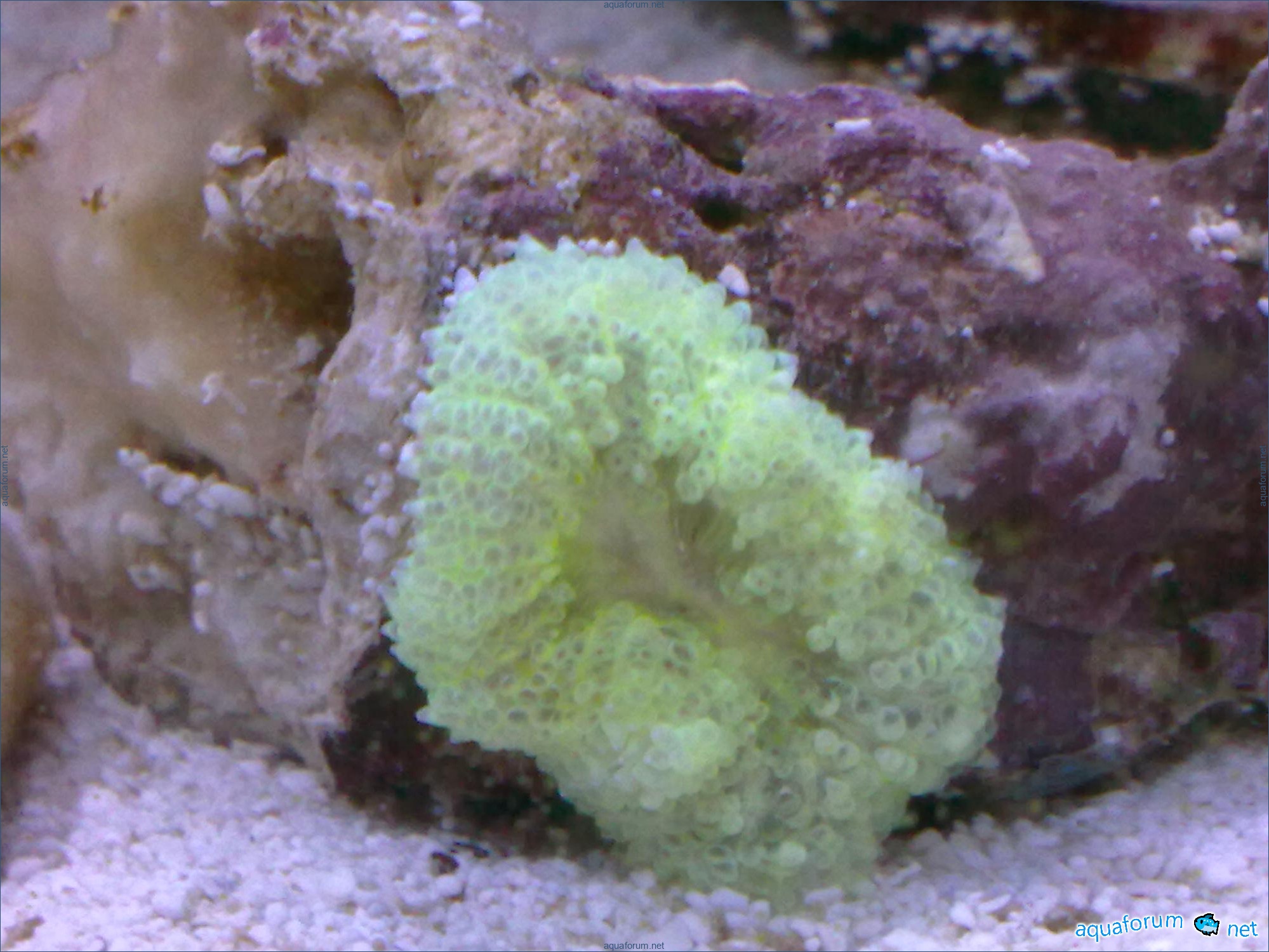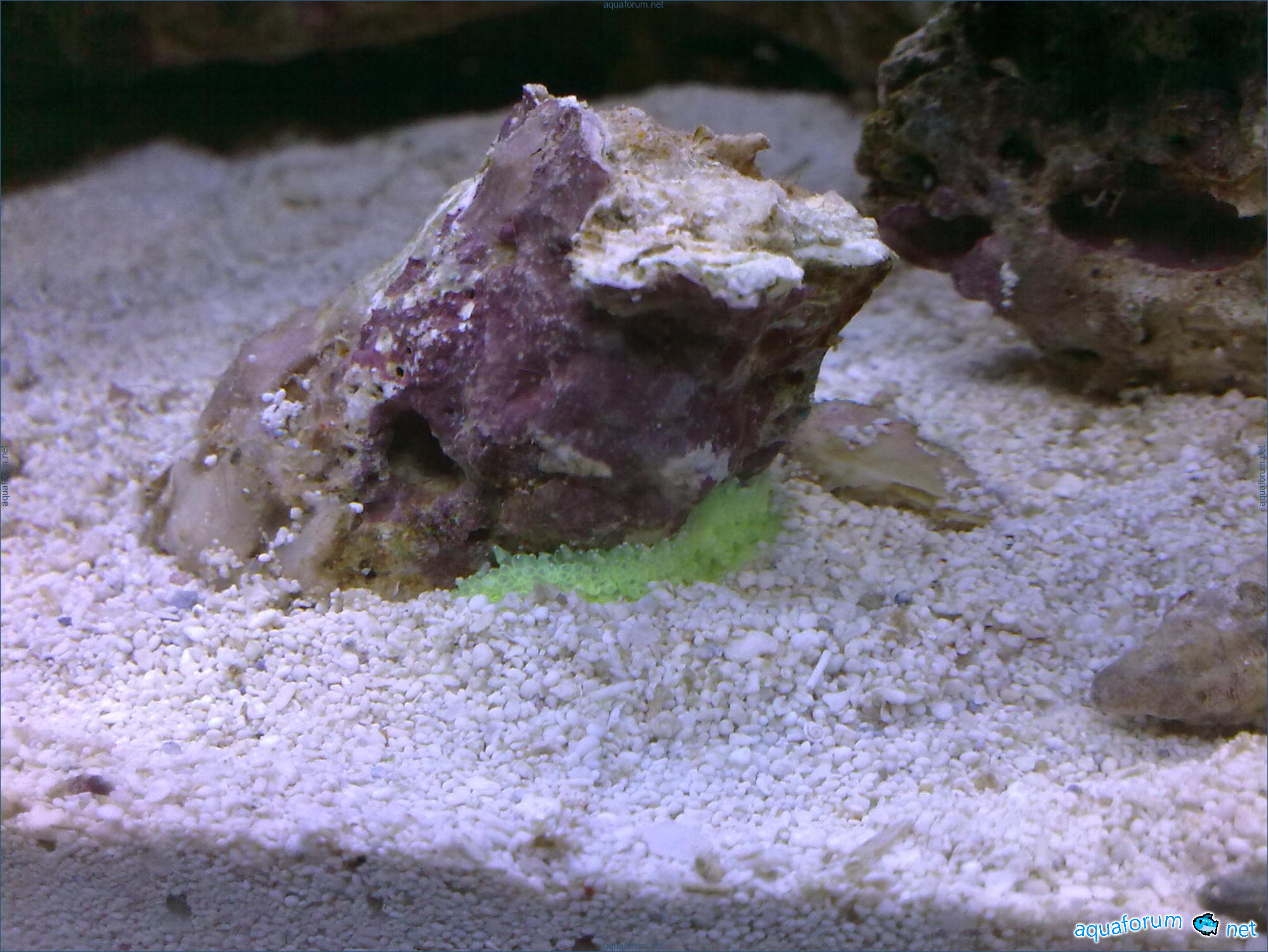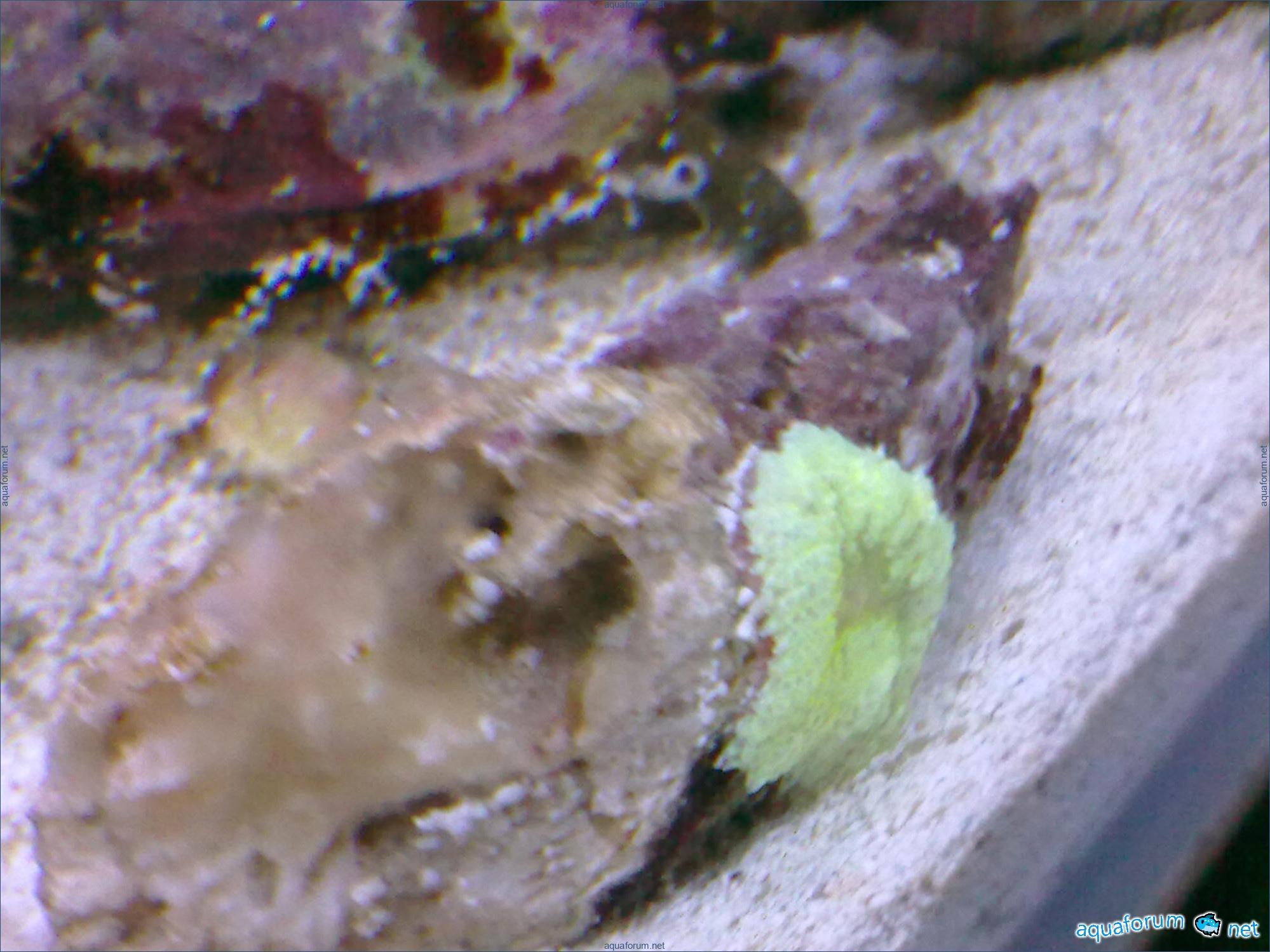 Have a good day, everyone. I received 2 actiniae the size of 25 kopecks on the Marchenkov stones. One is snow-white with a red foot, the other is a dirty brownish-green color. As soon as I placed the stones, they stayed in one spot, but after a couple of hours, they had already scurried into the nearest crevices about 5 centimeters away from them. They are quick. When the main light is turned off, they crawl into the crevice, with only the edge visible. The light turns on, and they open up again in a couple of minutes. The polyps are small and numerous. But they are not round like bubbles, but sharp. One can be photographed somehow, but the other is impossible. What are your thoughts on this? The thing is, the worker said in the store that this time many such actiniae came on the stones, but he is not aware of the genus, let alone the species. This means that some of those sailors who took stones from the last shipment also received these creatures.