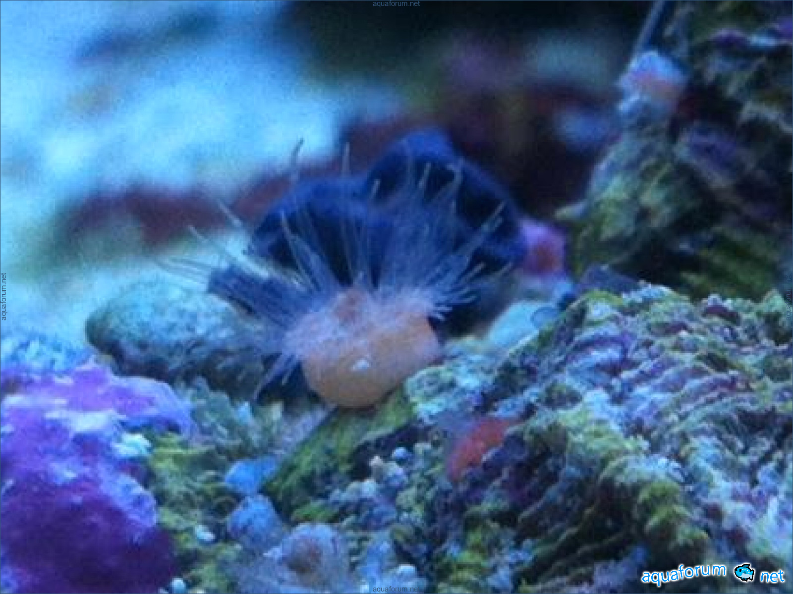 The resident ended up in the aquarium in December as a tiny creature (less than 5 mm), but now it has grown to almost 1 cm. It has a pink body with long tentacles of varying sizes. It prefers moderate lighting and hides in a hole in the rock during the day. Today, I decided to feed it shrimp, and it ate with pleasure. What kind of creature is this?