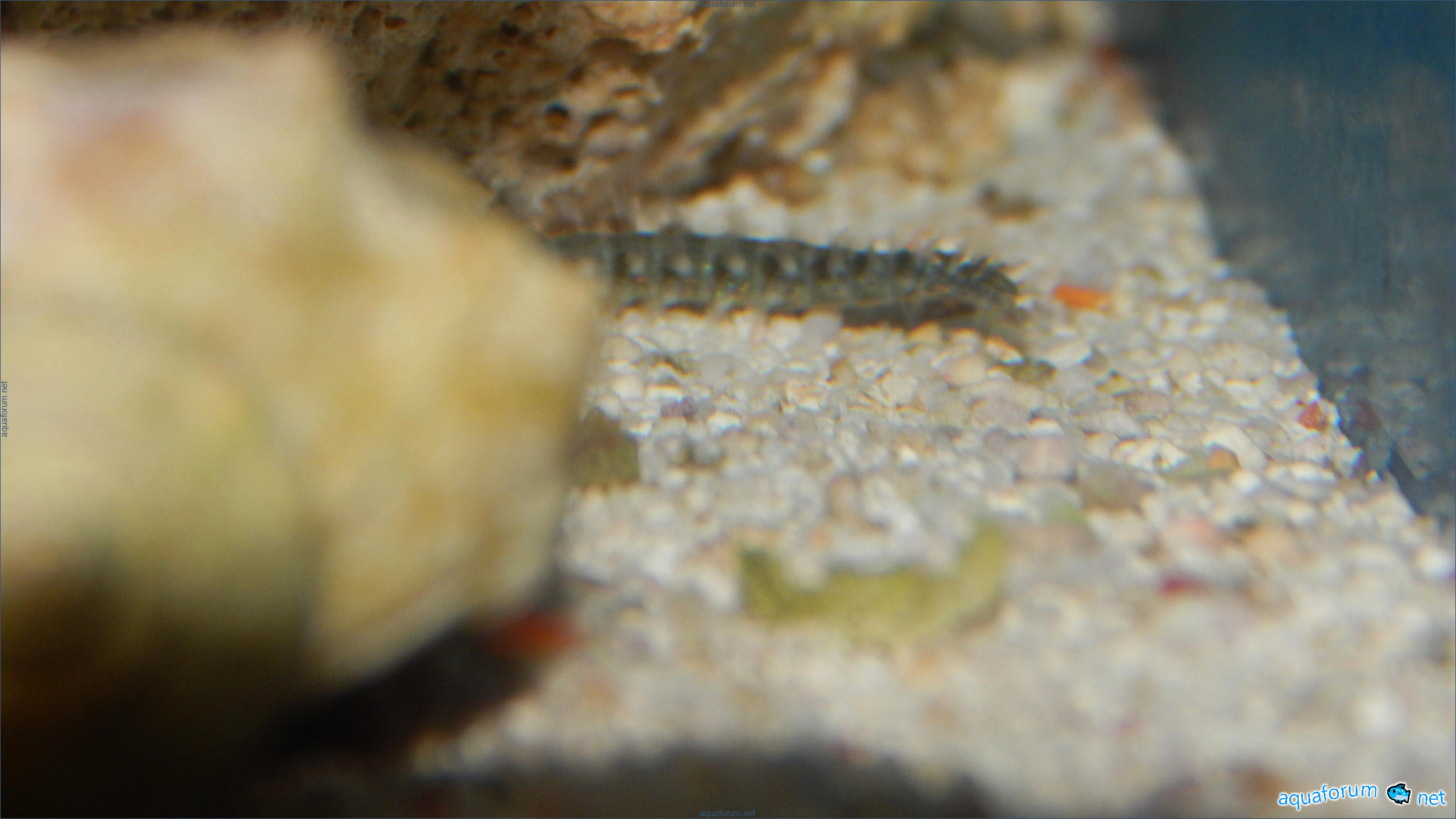 Hello! The aquarium is 2 months old, and this worm didn't show any signs of existence before, but this morning, right after feeding the fish flakes and before turning on the light, it appeared. It was rummaging around the bottom, and I was even worried about the hermit crab; when the light came on, it quickly darted back into its burrow, and as soon as the light was off, it started rummaging around the bottom again. Unfortunately, I couldn't take a better photo. The zoanthids and the xenia are untouched. If anyone can identify it from this photo, please respond. Thank you.