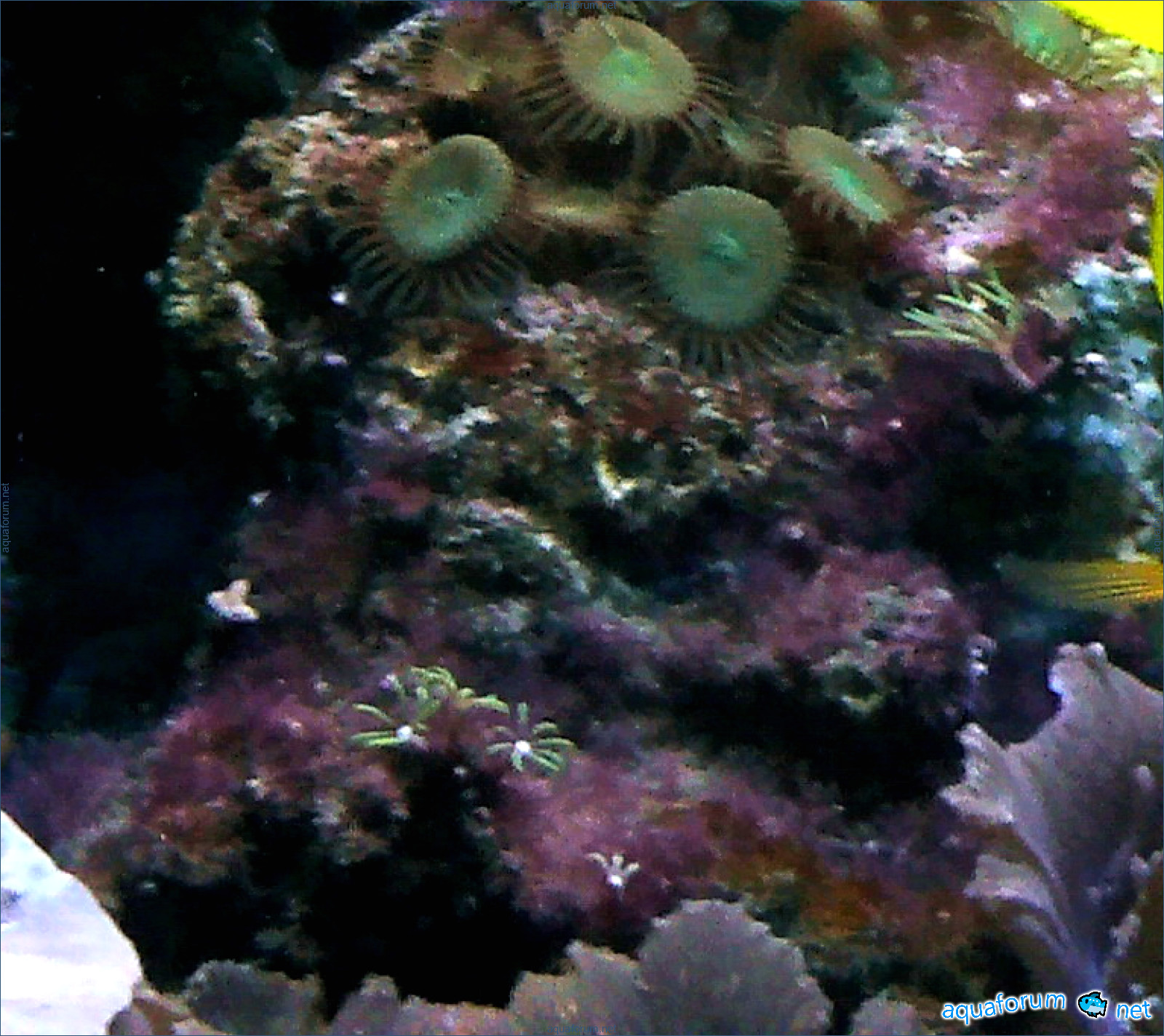 It's a pity, but this is not the first time. The Cavularia (Binarum) has outgrown itself; the colony grew over itself, and the lower layers began to die off. As a result, it all peeled off the glass in one large carpet, and I have no more place to put it. At the moment, only the colony on the rocks and the pump in the upper left corner remain... maybe it will grow again.