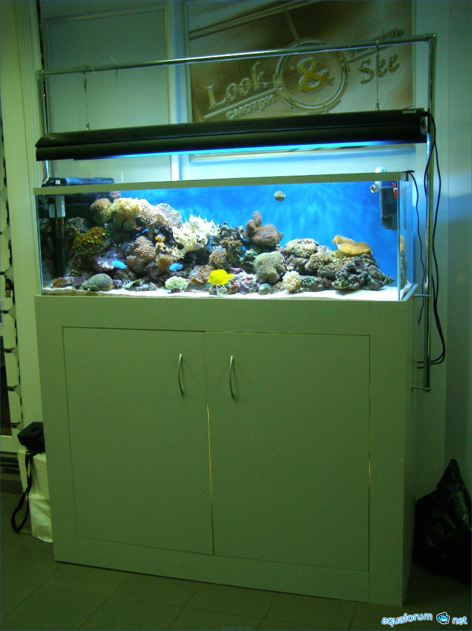 The sea originally stood in my parents' three-room apartment, where I lived... But then I moved with my family to a new apartment, and I transferred the aquarium to the "Modilnaya Svyaz" store (in the city center, where people come and go, and since I make a living from creating and maintaining aquasystems, there's no better advertising). Then came the crisis, the store closed, and the aquarium moved again... to a notary office. Also in the center, also with many people...