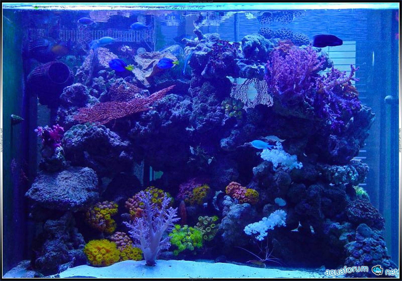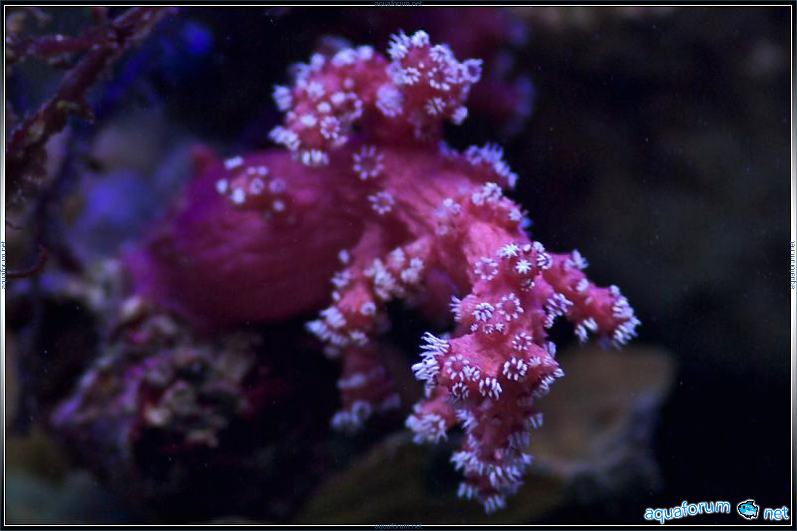My old aquarium has been completely refurbished to accommodate non-photosynthetic corals: 3 species of Dendronephthya, several species of sponges, Gorgonarians, 5 species of Dendrophyllia, Tubastrea, and more, plus around 20 fish. The lighting consists of 10 actinic lamps, each 39 watts. Examples of some species are