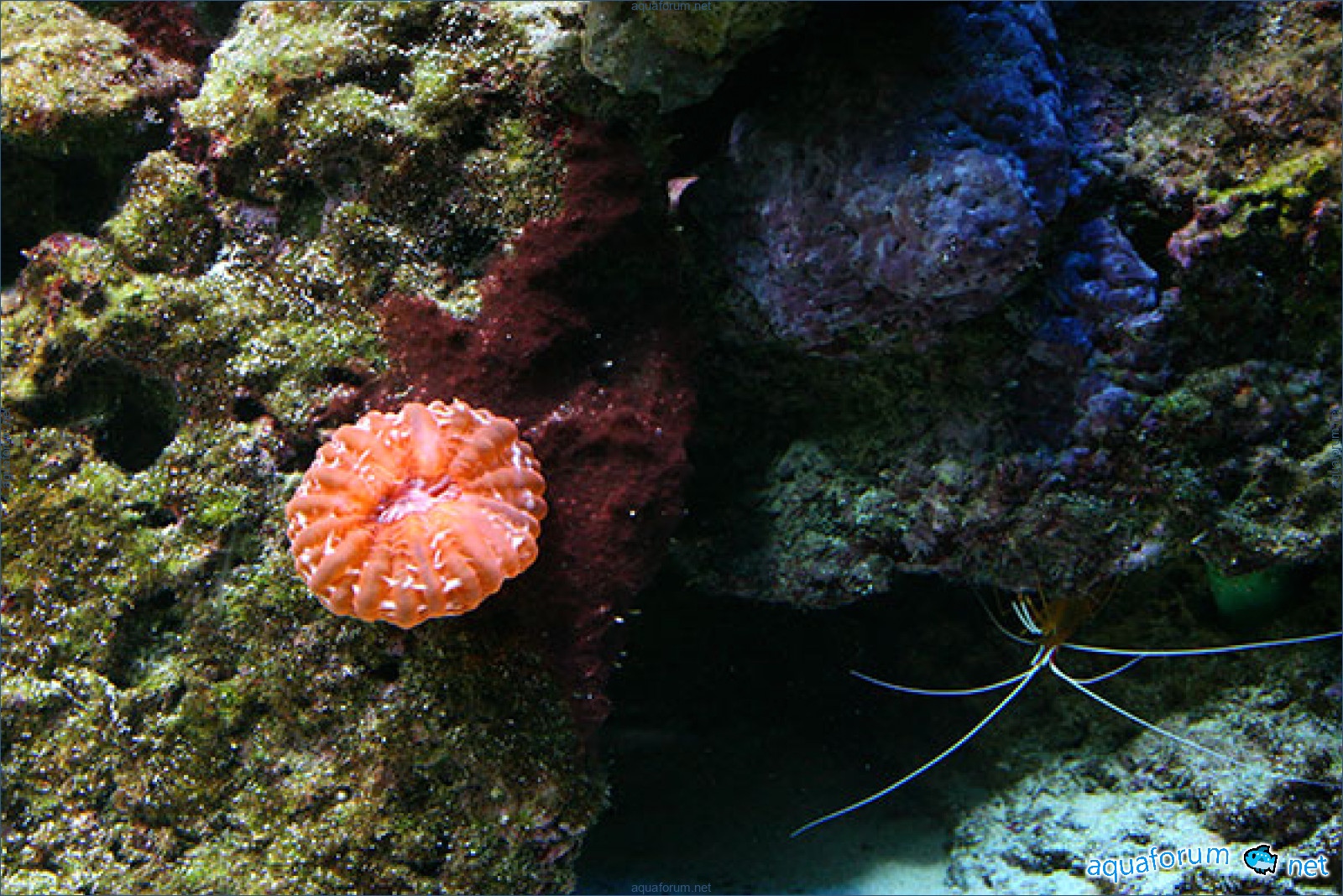 Earlier in another aquarium, I noticed that behind my carpet anemone Stichodactyla haddoni, there is a red trail of cyanobacteria extending downstream. I thought it was a feature of the anemone's metabolism. Perhaps it releases some substances that promote the growth of cyanobacteria.