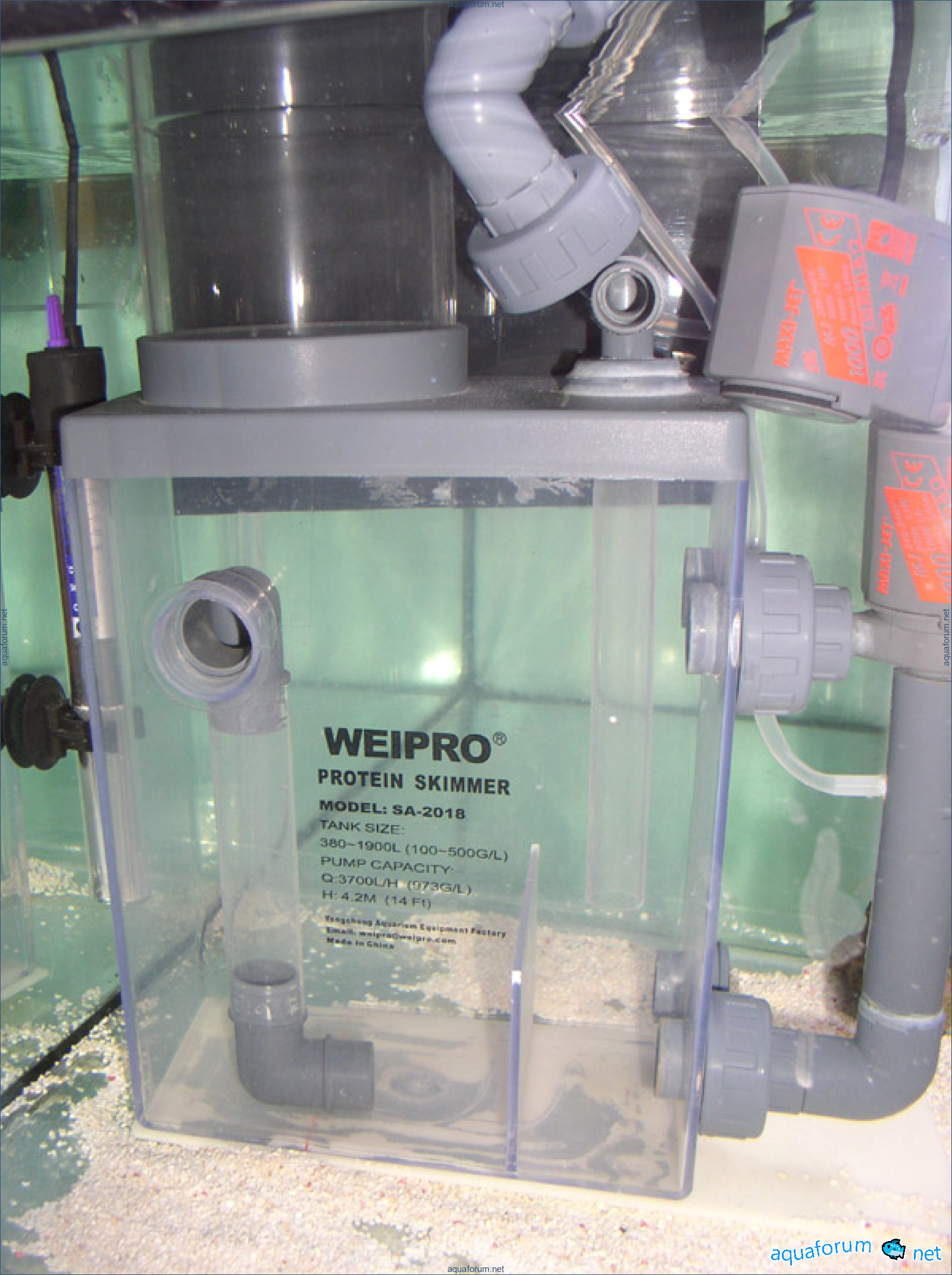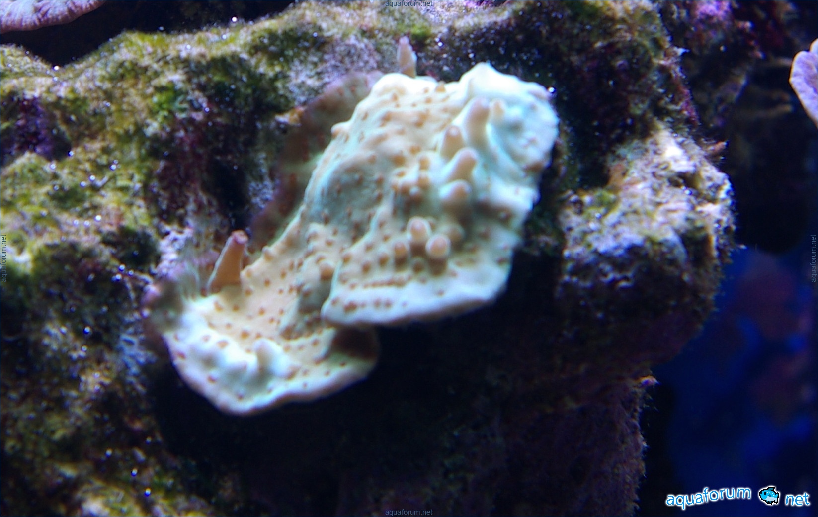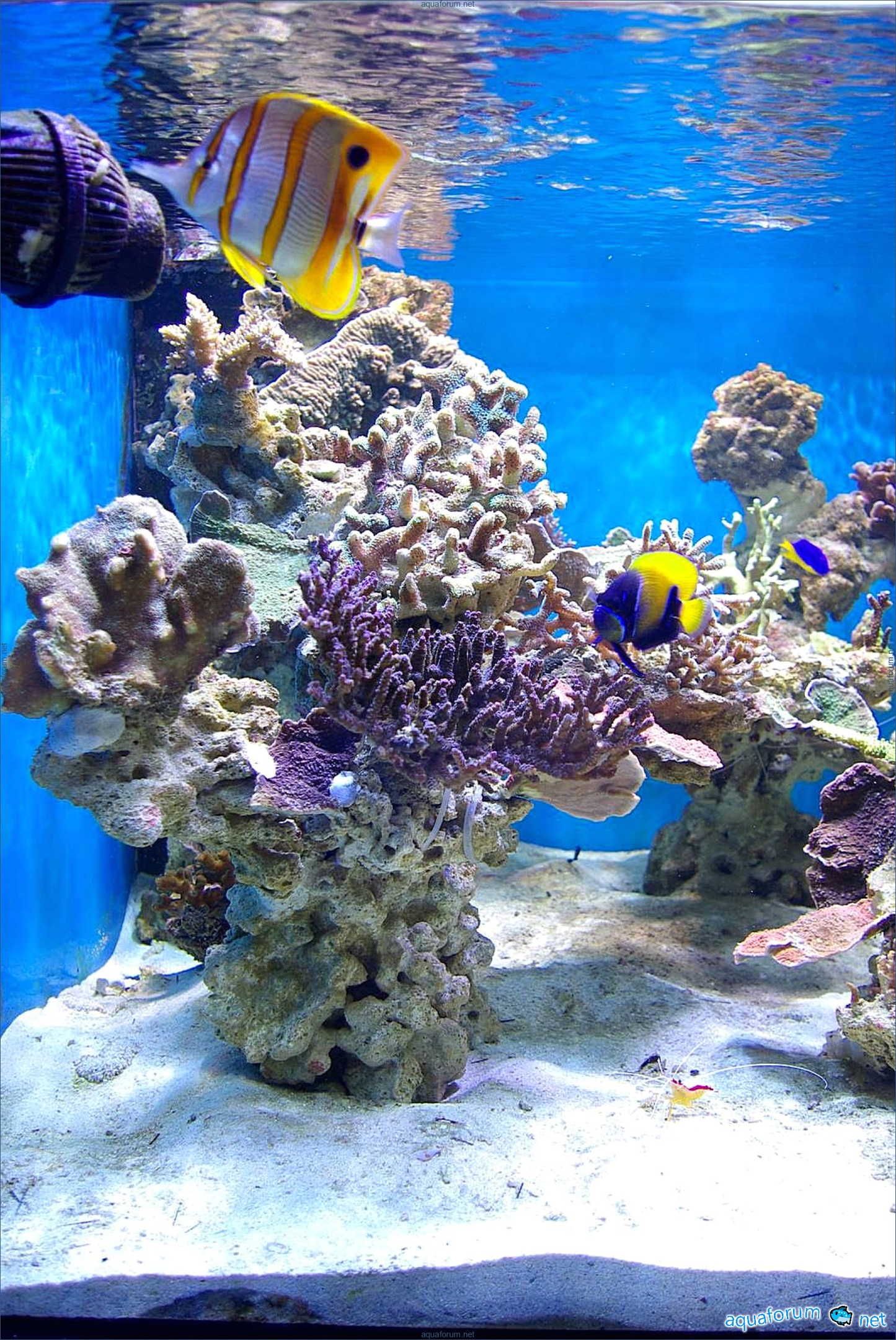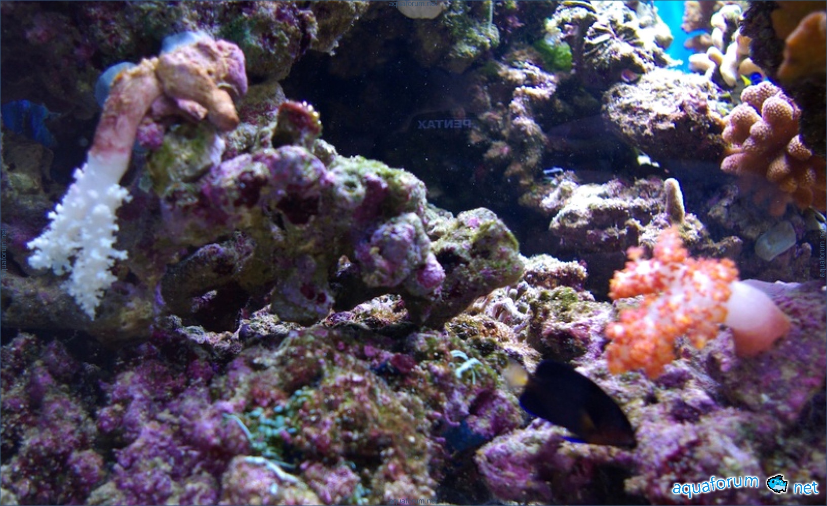 She is no longer sitting at the top; she has already gone to a nice person. Before that, she was crawling around the aquarium, nibbled on a few corals, and sat on the glass for quite a while; she likes it there. She got into the stream twice, but it had no consequences for her, and the other inhabitants were not affected. The water is murky, and the foam maker was acting crazy.