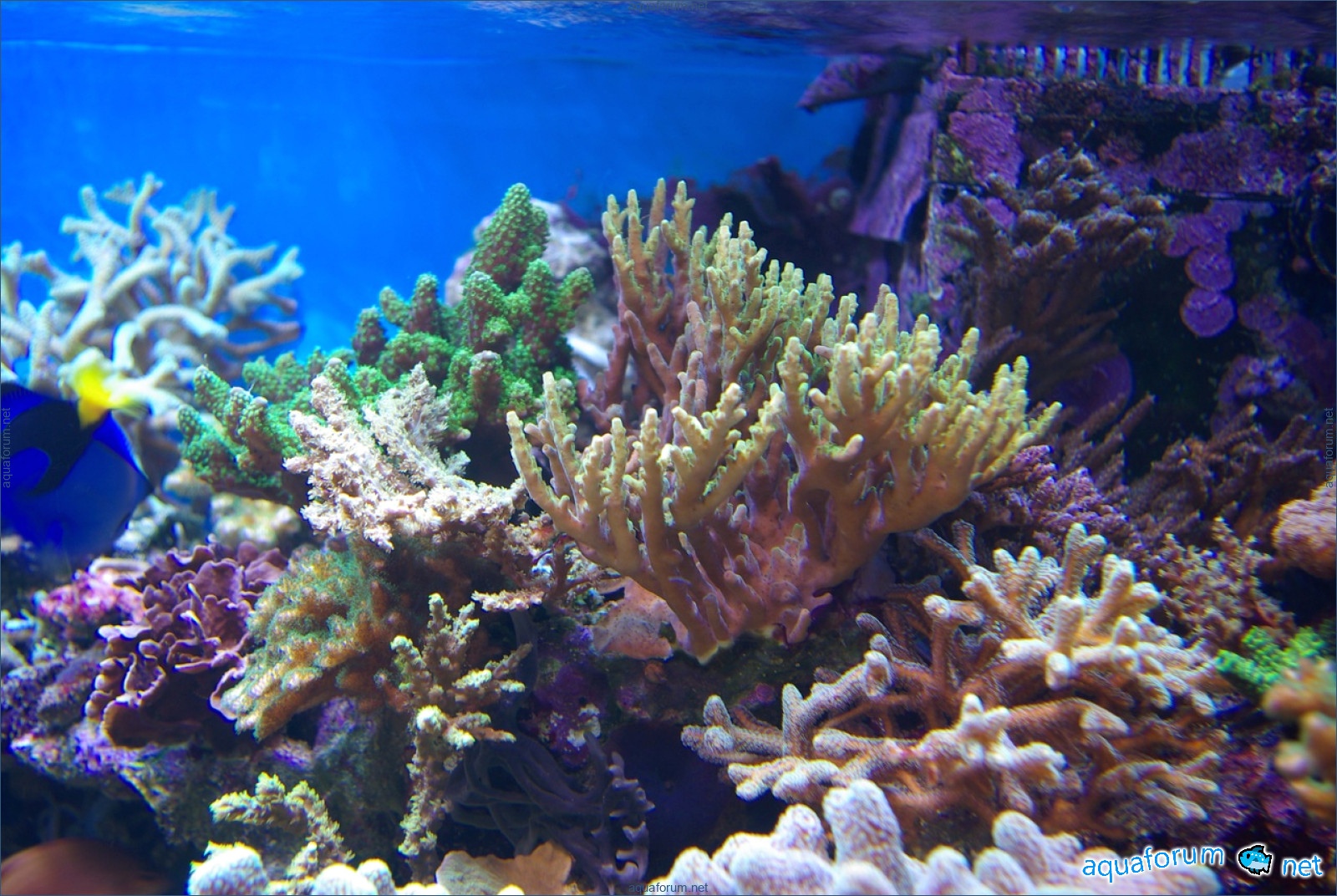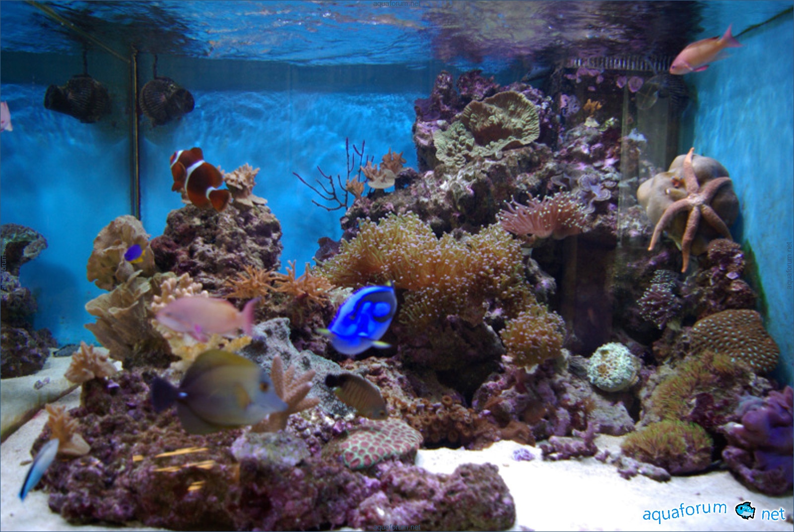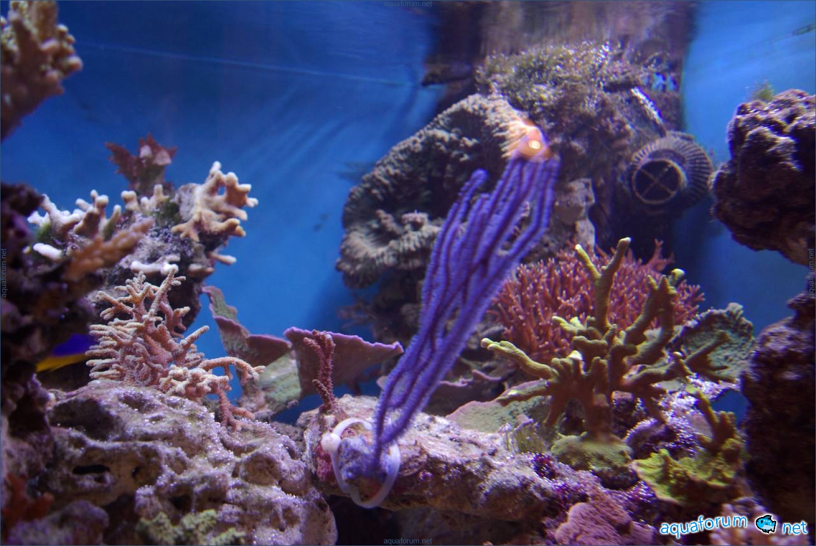A week ago, a new light fixture arrived from a, for which I give huge respect. 3 MH at 250W 12K Reeflux and 1 MH 250W Chinese 20K + 4 LL 24W from Fauna Marin Duo. What can I say, the light is just AMAZING. The temperature dropped by 2 degrees; I placed fans under the fixture, and they fit in quite nicely. The inexpensive Chinese bulb shines very well, I liked it. I gradually increased the light day, and the inhabitants reacted very positively. The SPS corals developed bright shades, and the aquarium looks light and nice.