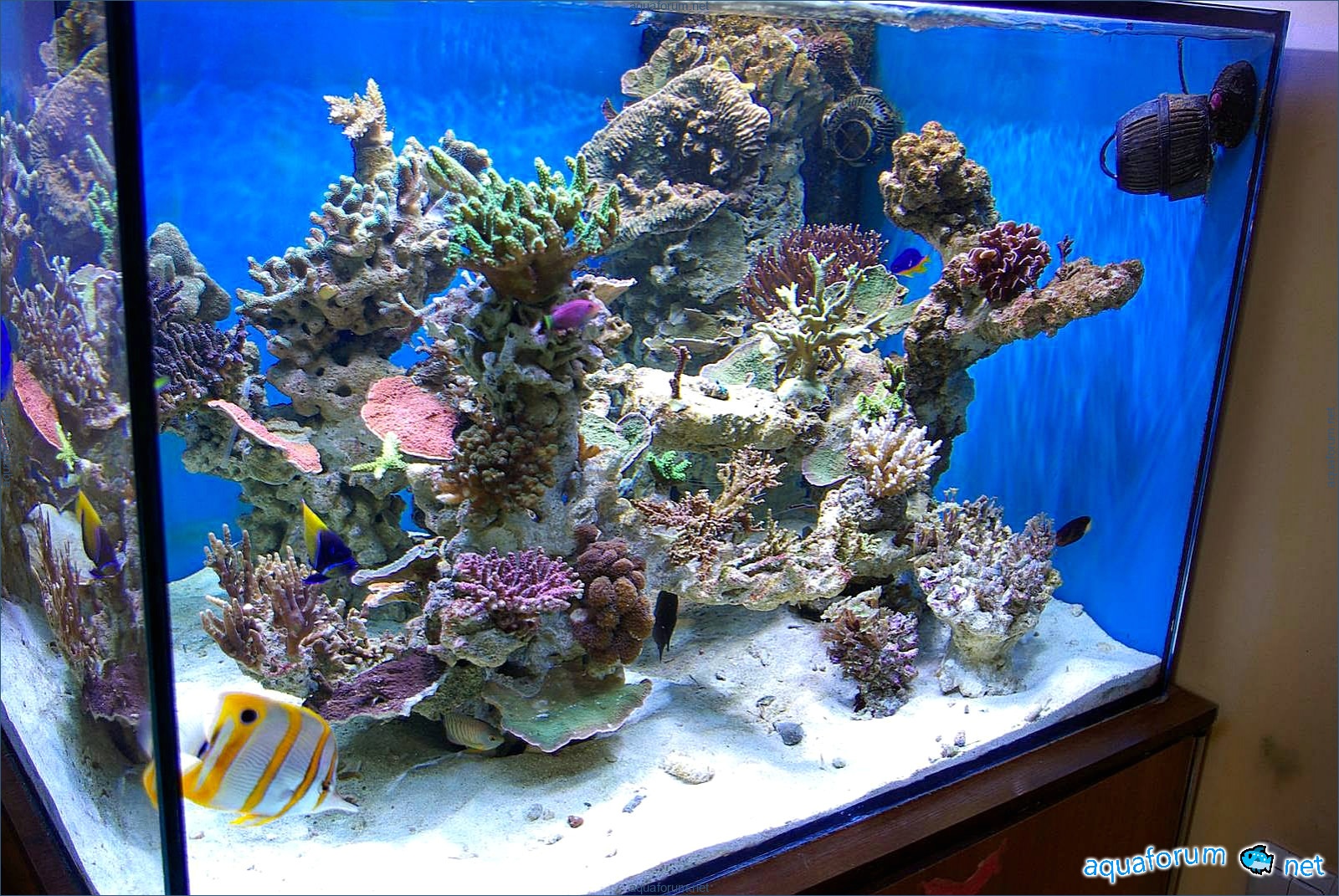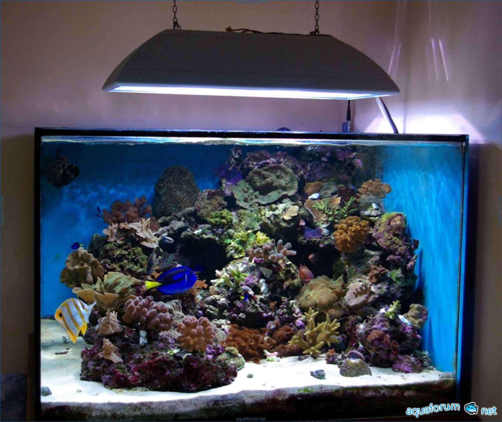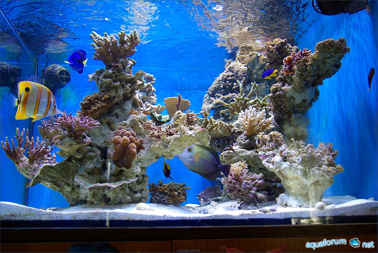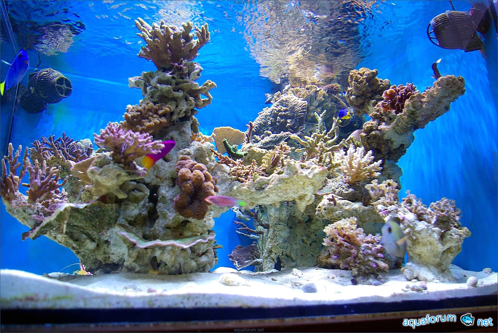 A week ago, a new light fixture arrived from a, for which I give huge respect. 3 MH at 250W 12K Reeflux and 1 MH 250W Chinese 20K + 4 LL 24W from Fauna Marin Duo. What can I say, the light is just AMAZING. The temperature dropped by 2 degrees; I placed fans under the fixture, and they fit in quite nicely. The inexpensive Chinese bulb shines very well, I liked it. I gradually increased the light day, and the inhabitants reacted very positively. The SPS corals developed bright shades, and the aquarium looks light and nice.