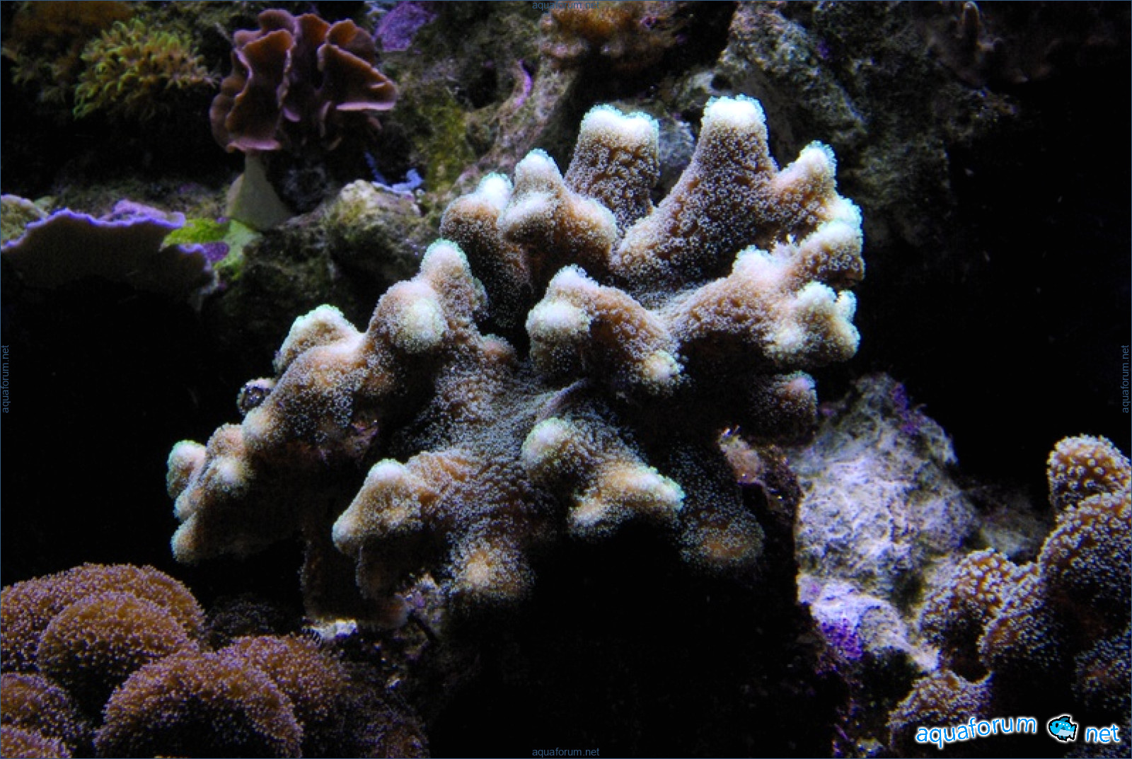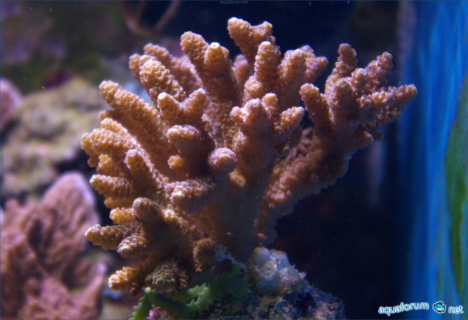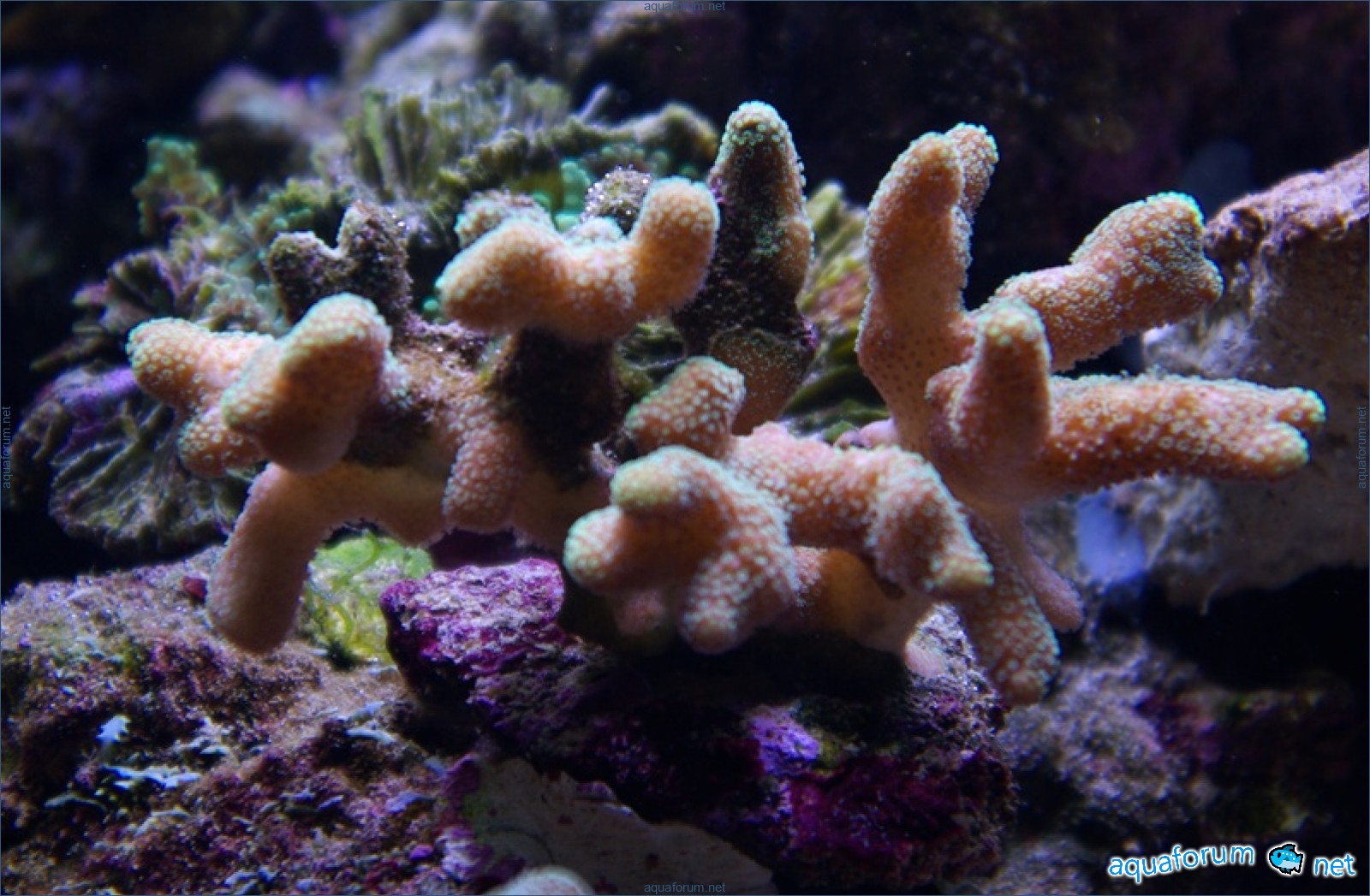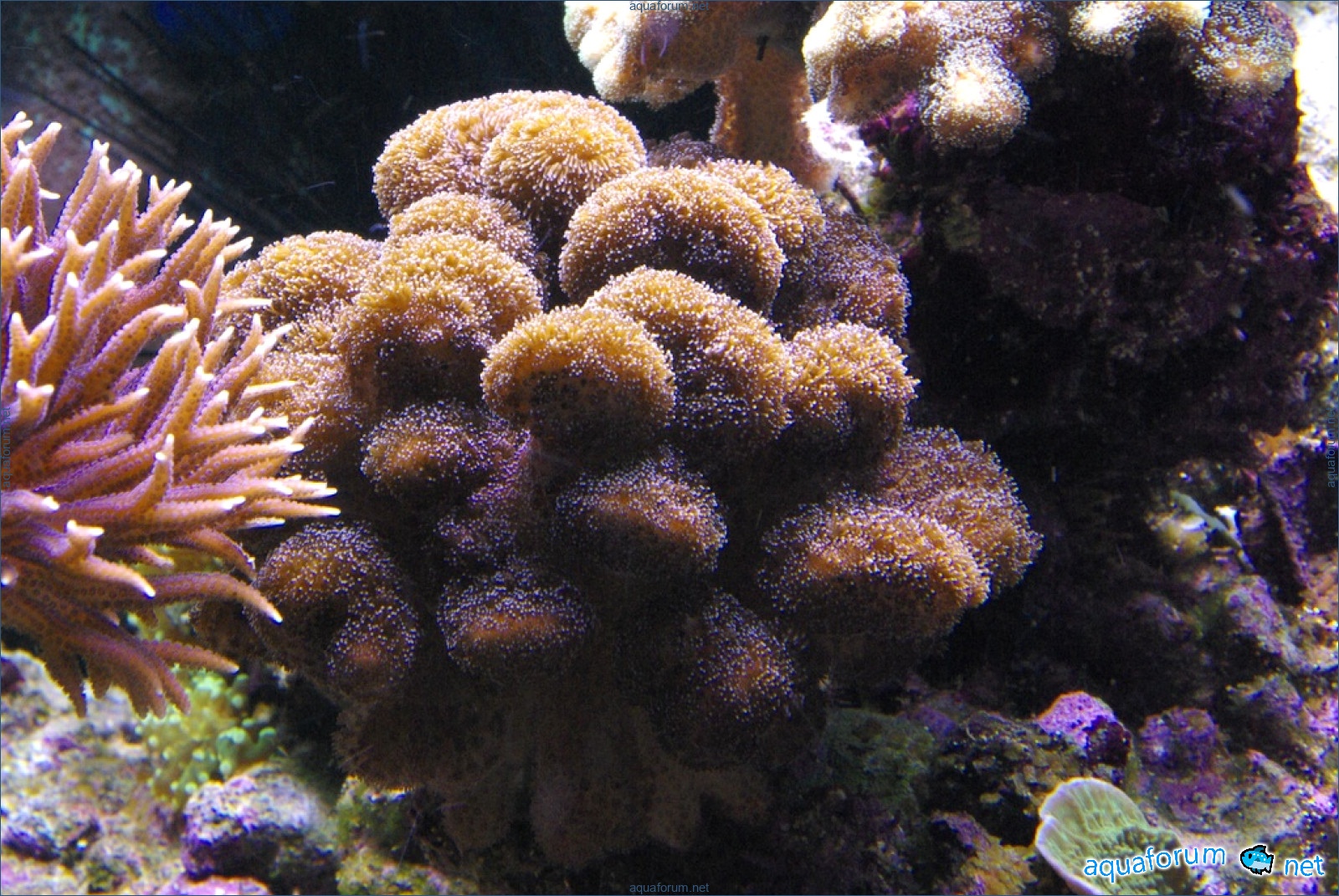There is definitely a difference, and it's for the better. In the center of the aquarium, where there is a lot of light, the corals have started to color interestingly. In the photo, there is a coral with green polyps and dark red tissue - the tissue and polyps have started to lighten. It feels like the dark color is "washing out," leaving only a light, delicate color.