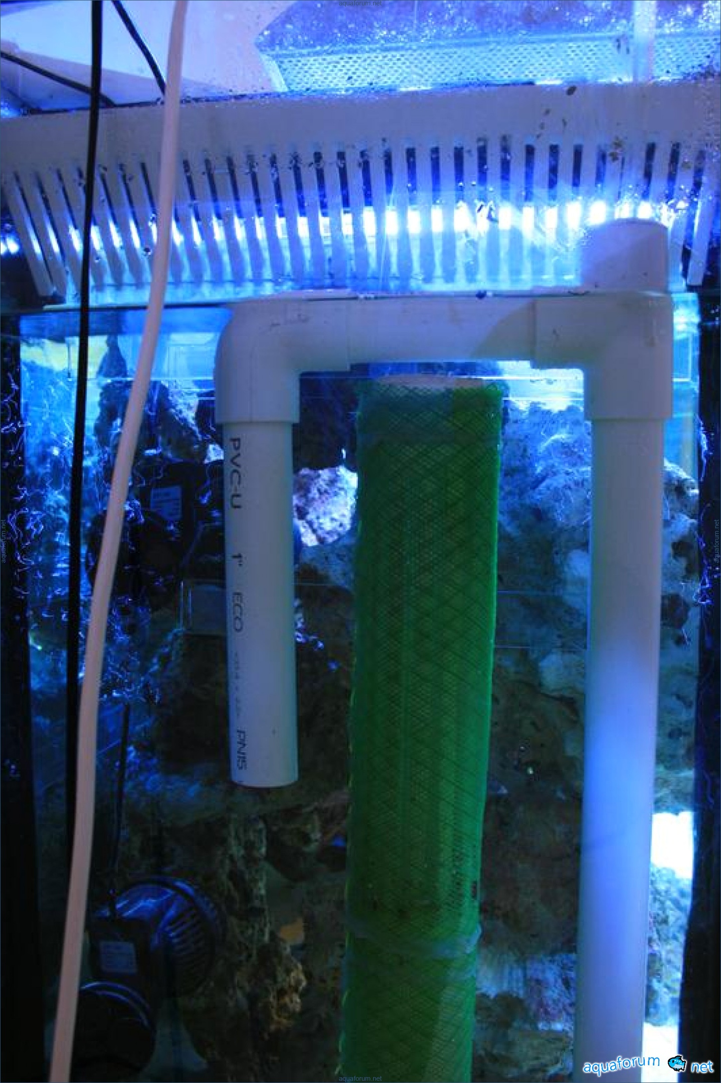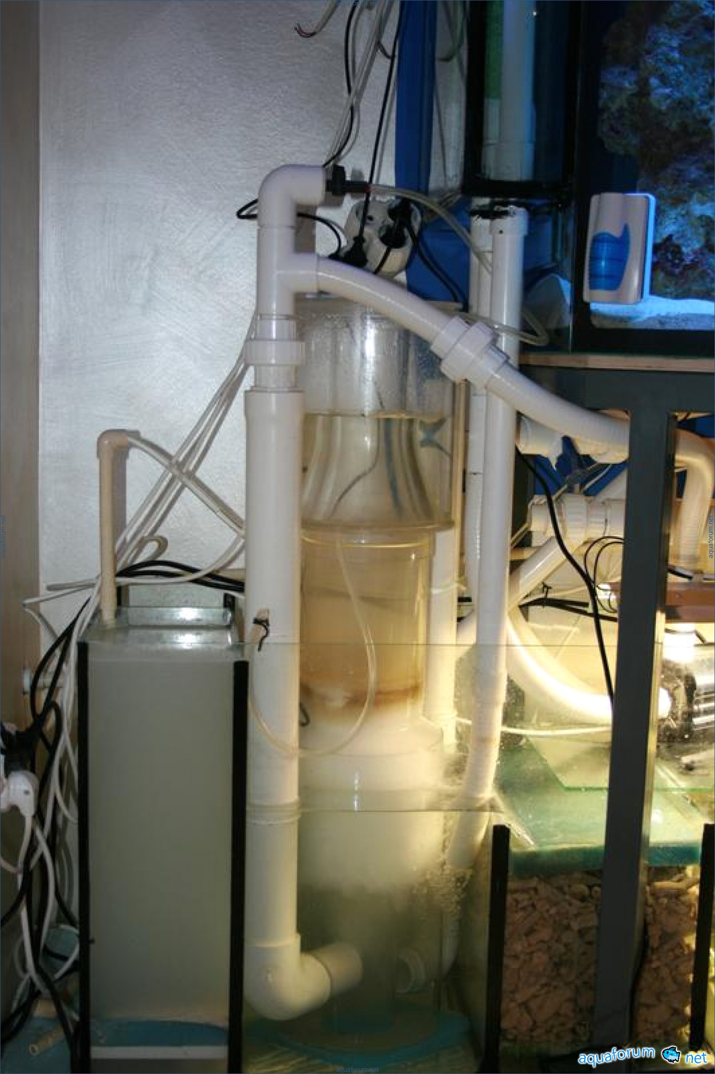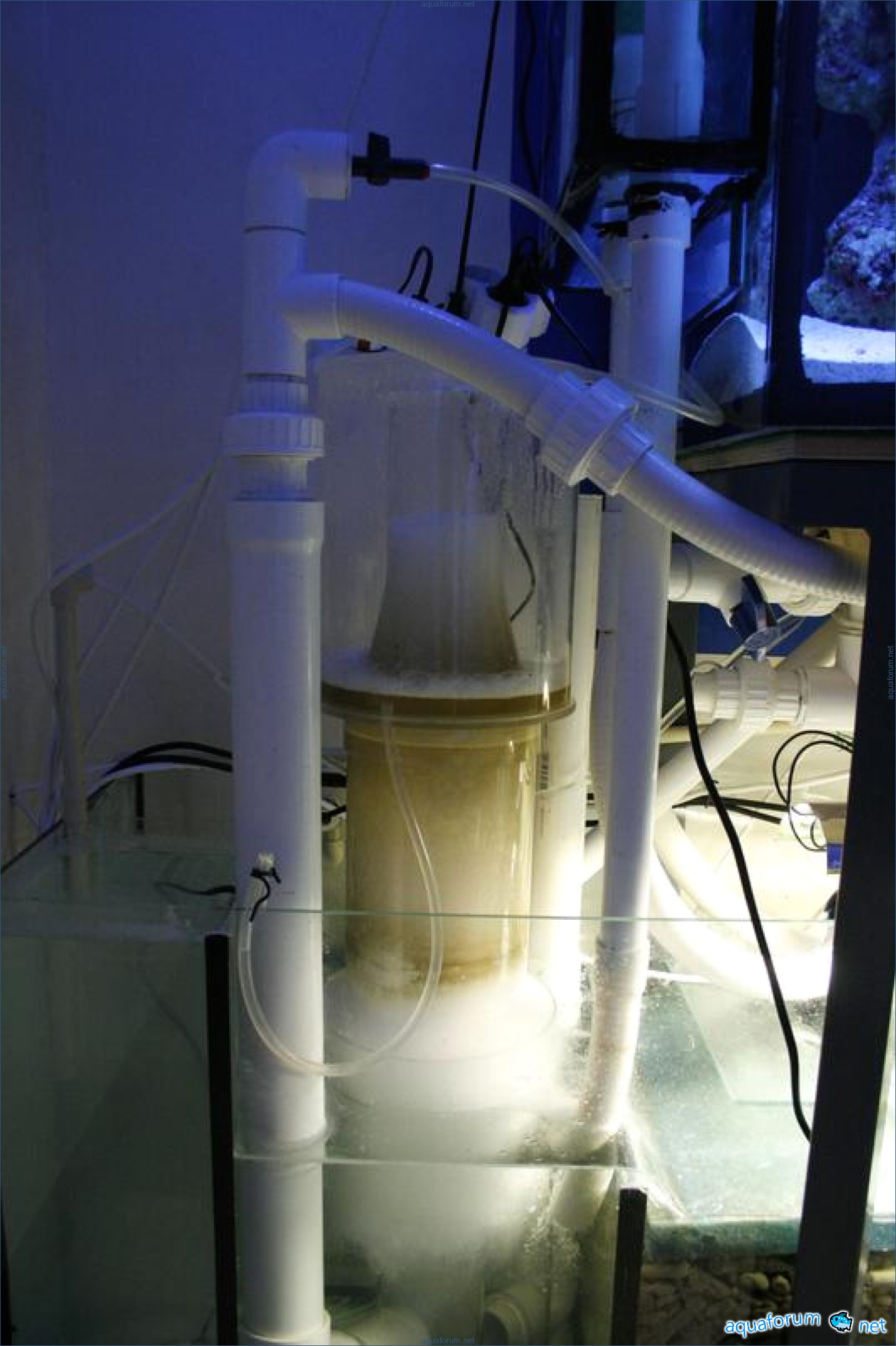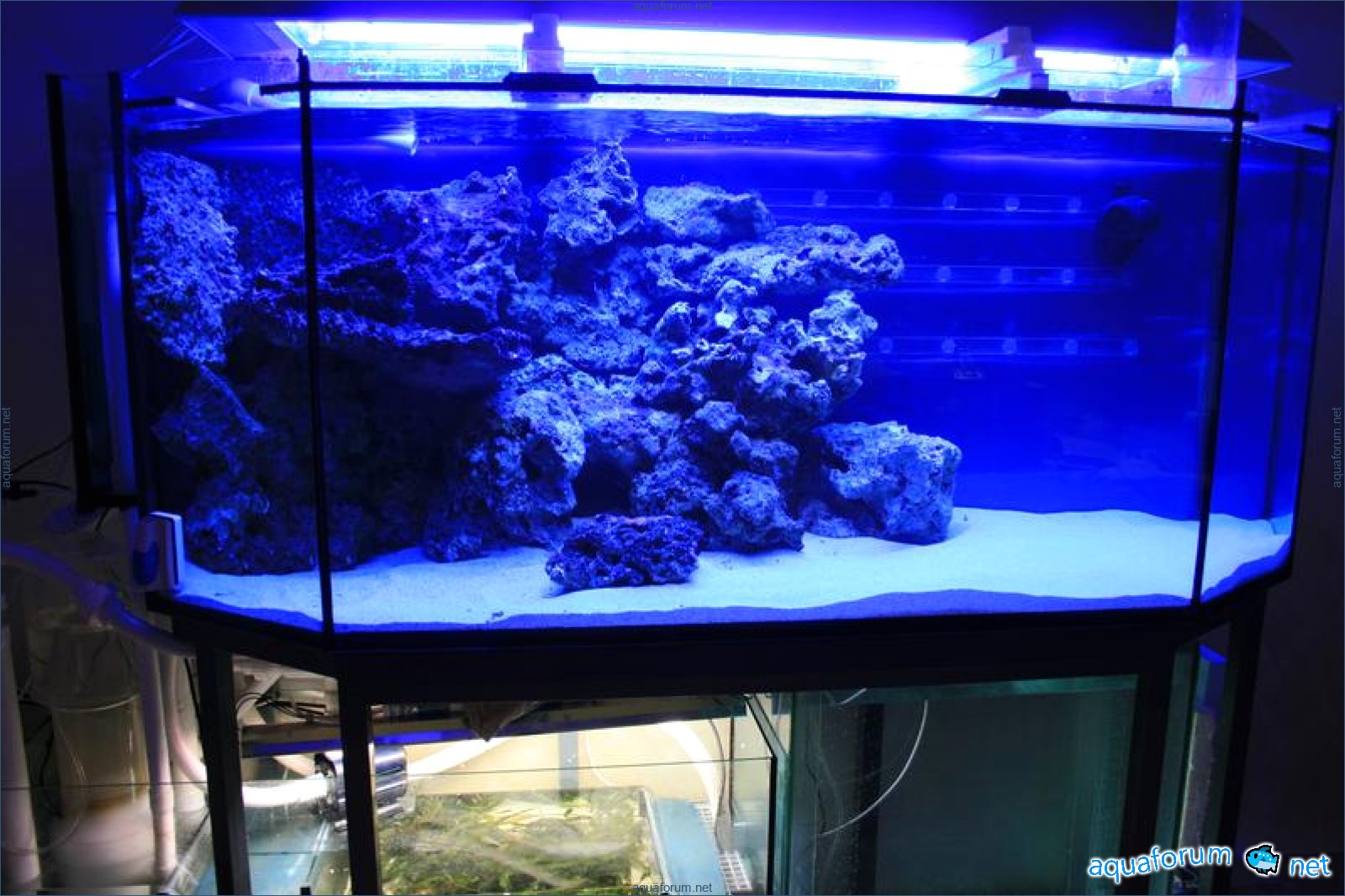 Hello everyone! Welcome to the community. I'm a newcomer, but I've been working towards this for a long time. And finally, Sasha's experts have launched the maturation process. The first photo is a general view, taken without a flash - only the T5 lamps are lit (I'm waiting for the ballasts for the MH). The second photo is a foam maker (homemade). It's not producing foam yet. The third photo is of live rocks with a flash. There's almost no vegetation with them, only a lot of aiptasia, which will have to be dealt with. Worms in the sand are visible. And that's it. It's a bit sparse for good live rocks. The4th photo is the sump: from left to right - the coralite compartment, the refugium with caulerpa (I wanted to have a chaetomorpha, but it wasn't available), and the compartment with the Atman MP-5500 return pump. The auto-top-off float is also visible there. In the last photo - the overflow - it's a bit noisy, but I think something can be done about it over time. I'm planning on soft corals and fish. I'm patiently waiting for the