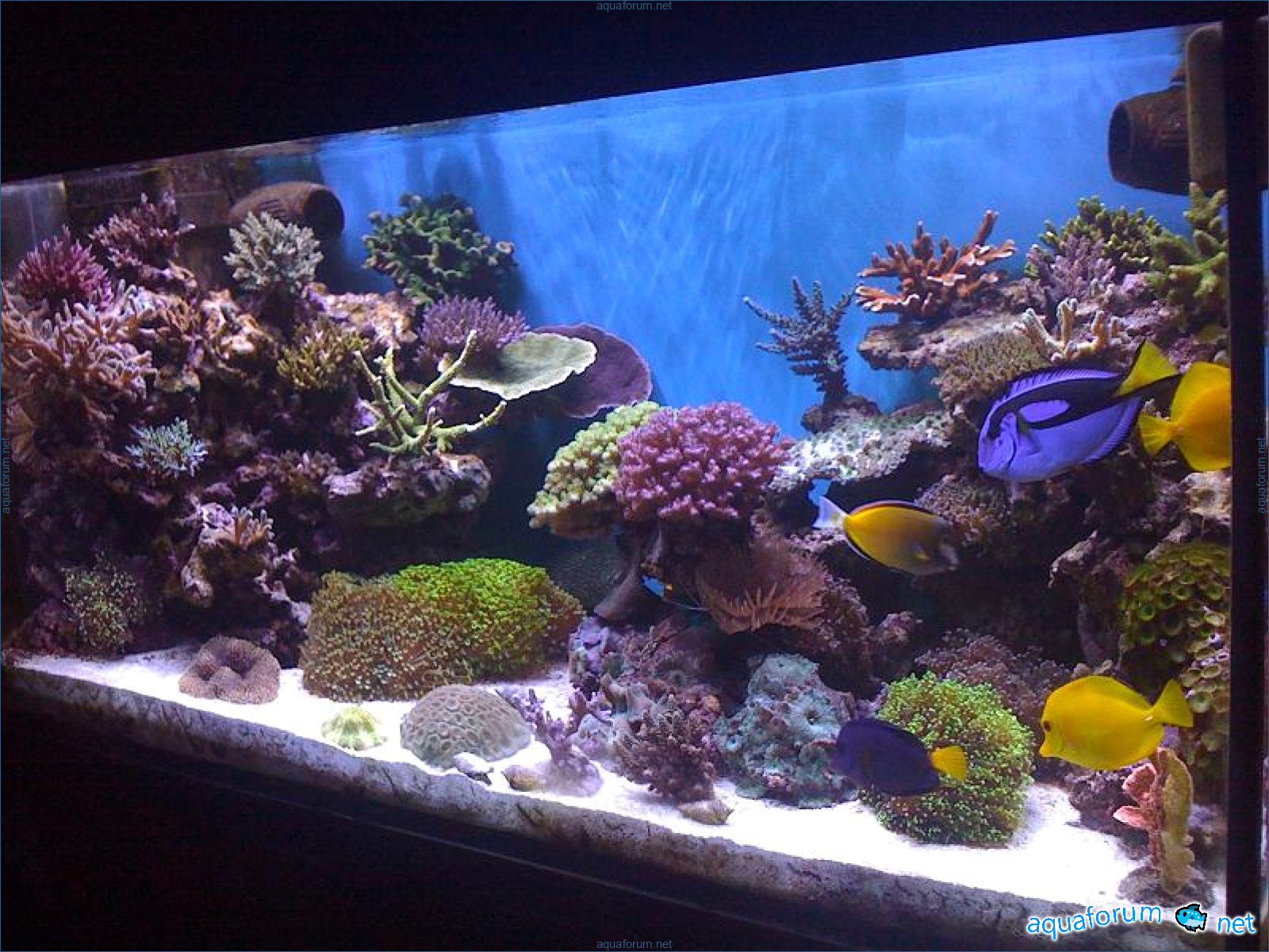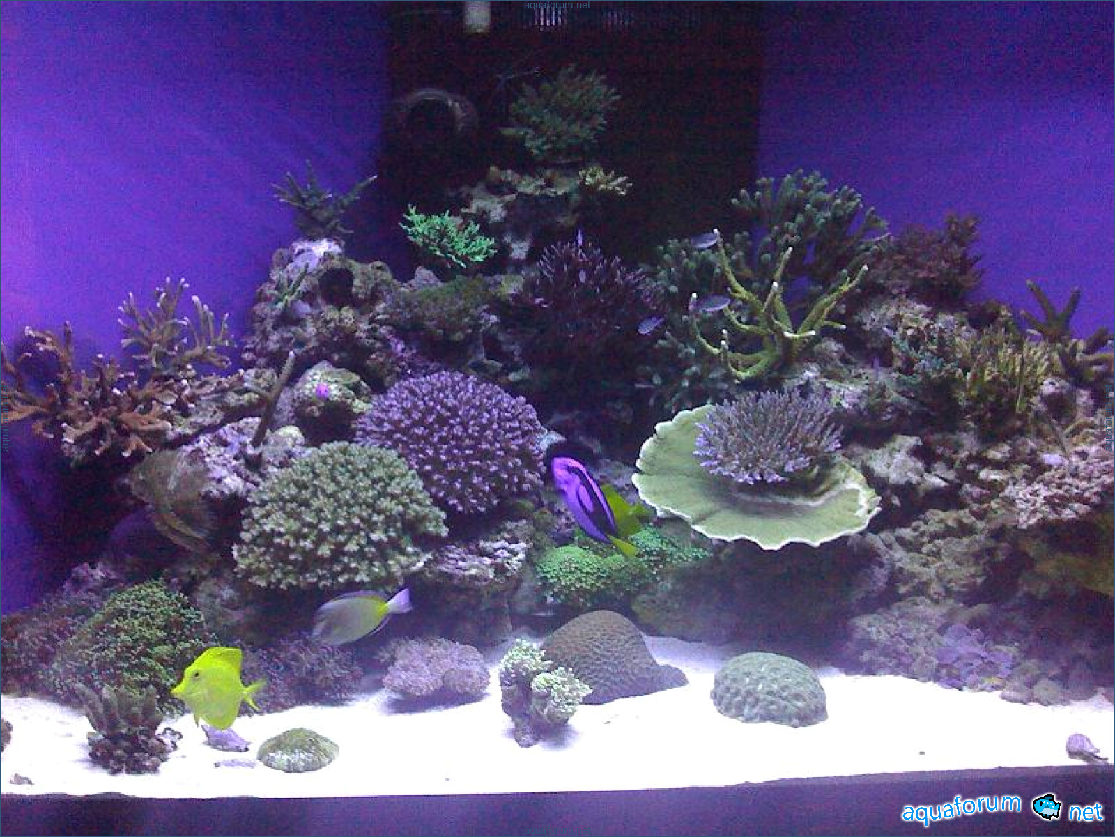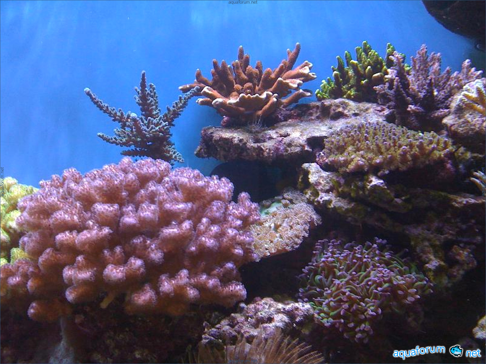 Hello! I decided to post a description of my aquarium and the entire system. The aquarium is 130*60*60 460 liters. Lighting 2MG*400W +2T5*54W Flow 2 Resun 15000 Protein skimmer homemade on injector. Calcium reactor Octopus two-section. Calcium stirrer AquaMedic (used as needed) Lift pump AquaMedic 3500. Live rock around 100kg Aragonite sand 70kg Chemical use: Balling from Fauna Marin Rowa carbon (very rarely) Recently installed zeolites. Water parameters: Ca-440 Mg-1400 Kh-7-9 Ph-7.8-8.0 Temperature 26-27 Salinity 1.026 Water changes 30 liters every two months. I think I didn't forget anything. A few photos of the aquarium, though the photos are taken with a phone as I don't have enough