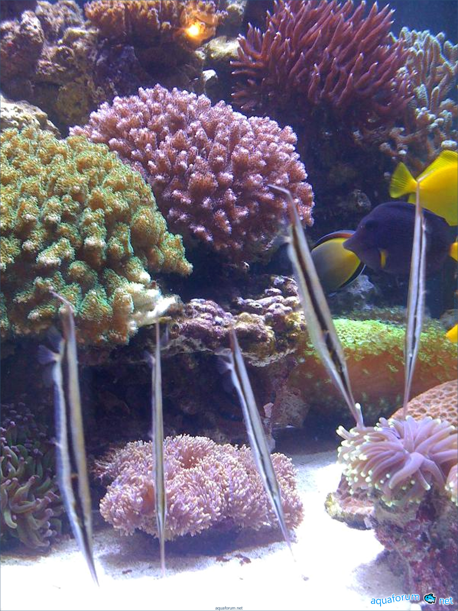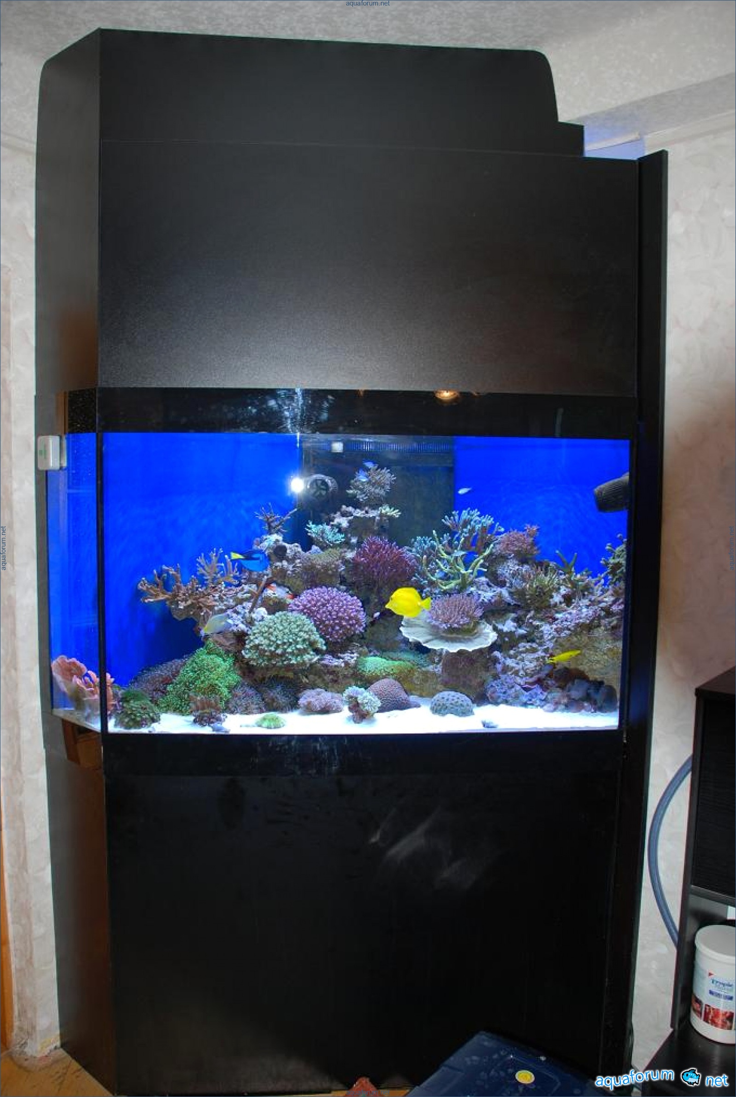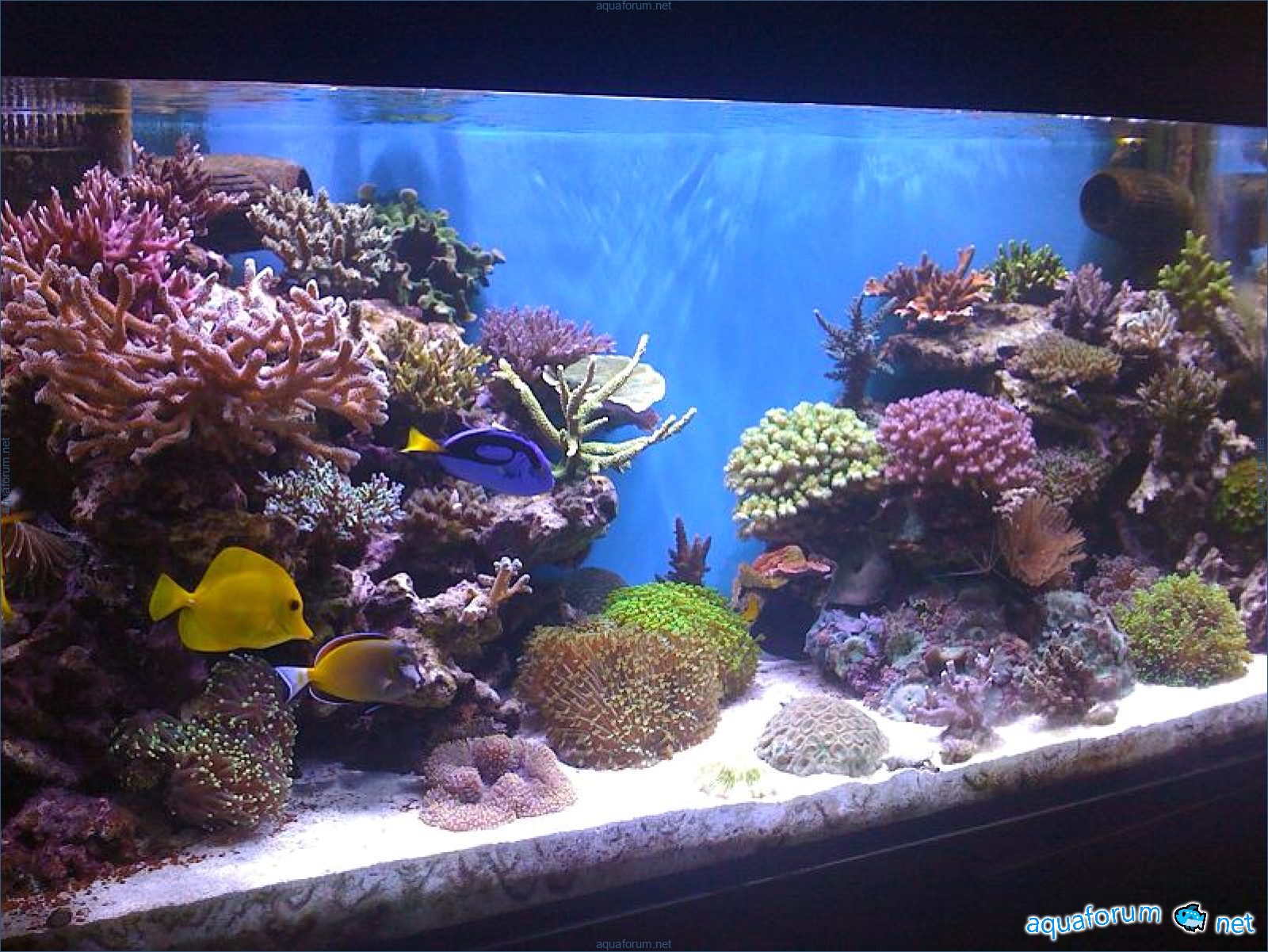 Hello! I decided to post a description of my aquarium and the entire system. The aquarium is 130*60*60 460 liters. Lighting 2MG*400W +2T5*54W Flow 2 Resun 15000 Protein skimmer homemade on injector. Calcium reactor Octopus two-section. Calcium stirrer AquaMedic (used as needed) Lift pump AquaMedic 3500. Live rock around 100kg Aragonite sand 70kg Chemical use: Balling from Fauna Marin Rowa carbon (very rarely) Recently installed zeolites. Water parameters: Ca-440 Mg-1400 Kh-7-9 Ph-7.8-8.0 Temperature 26-27 Salinity 1.026 Water changes 30 liters every two months. I think I didn't forget anything. A few photos of the aquarium, though the photos are taken with a phone as I don't have enough