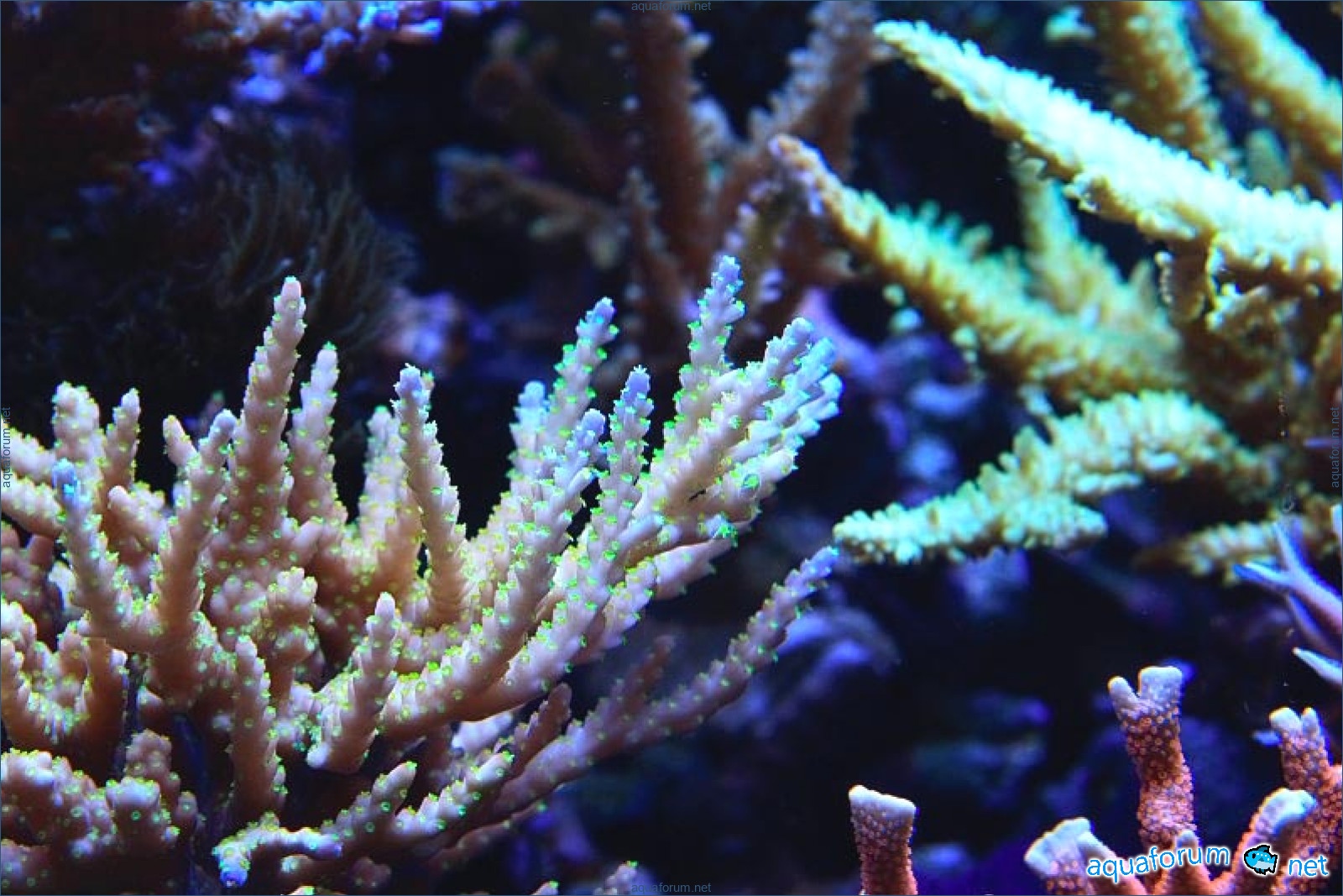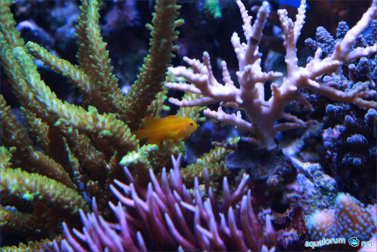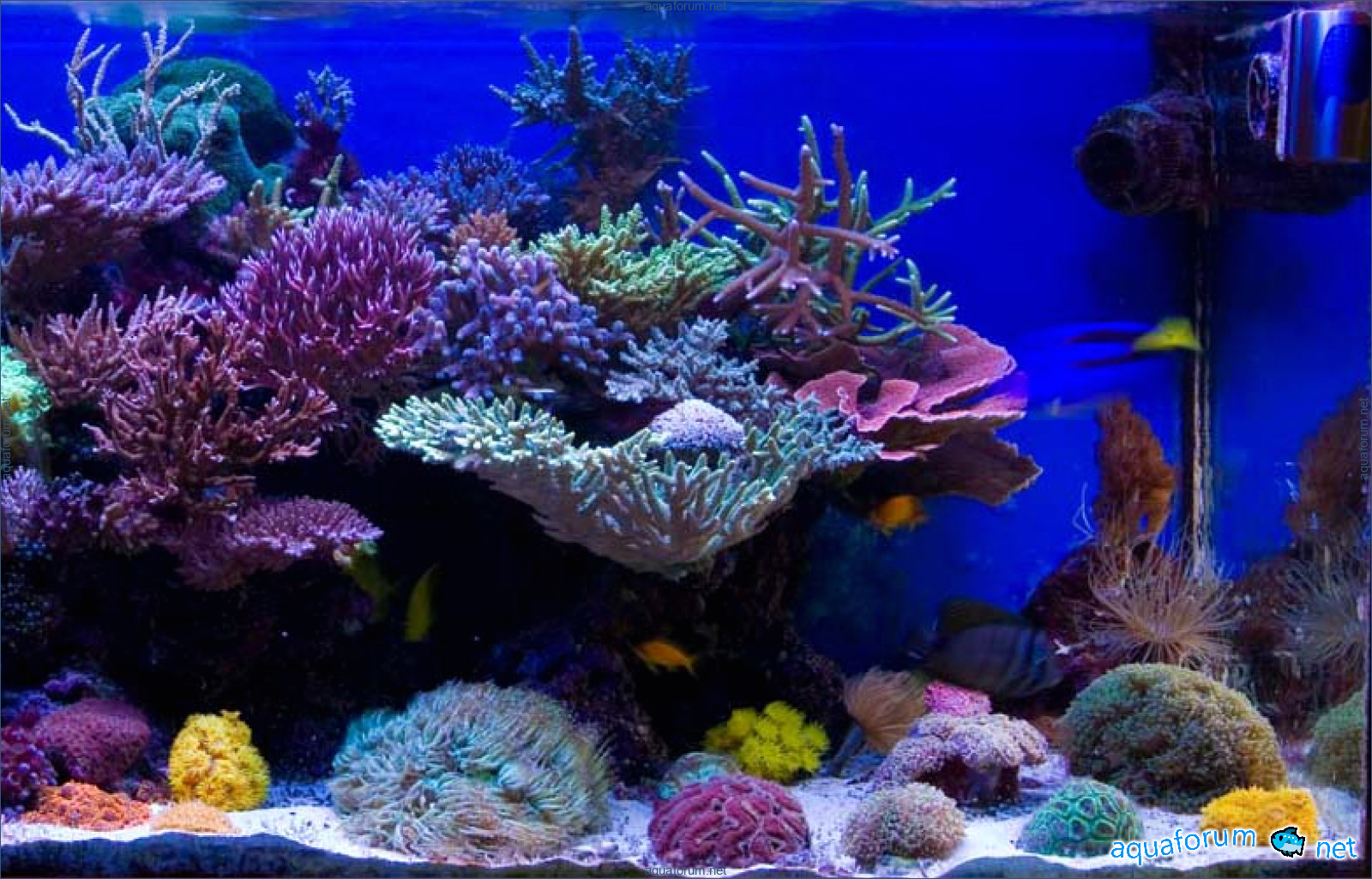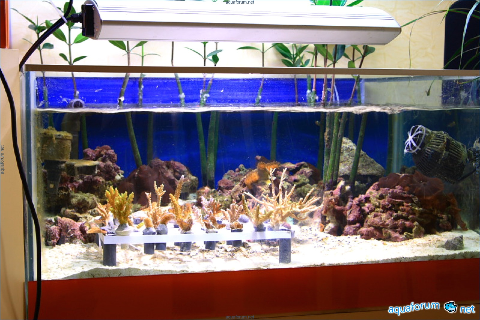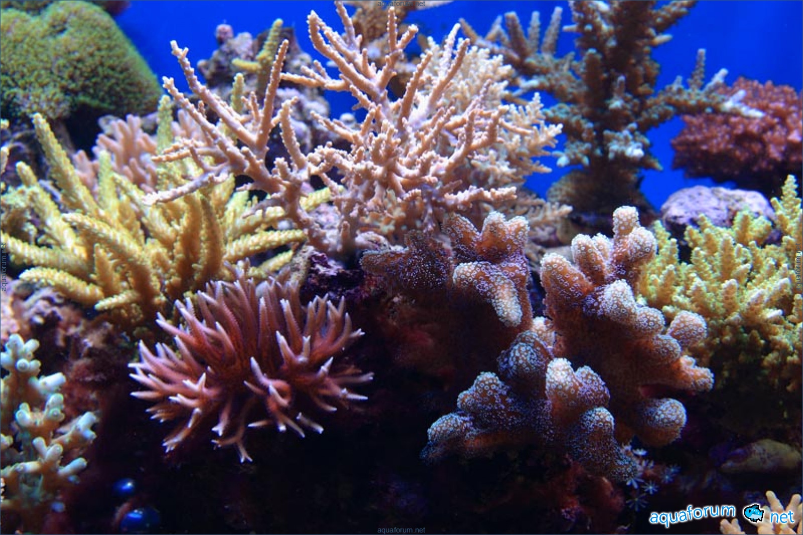 Good evening. I also decided to contribute to this forum. It seems unpatriotic not to. I immediately want to express my gratitude to everyone who helped launch this system, which will be a year old in a couple of months. Special thanks to Ray Tkach, who provided invaluable assistance in creating the reef in the initial stage (and not only in the initial stage), and to Sergey's team, who set up an excellent living environment. The description is provided here: Brief system description: size - 1600x650x700 (height) + sump + mangrove tank (but more on that later) lighting - 3 MG 250 watt reef-crest 12000K + 2 actinic T5 from Fauna Marin flow - 2 Tunze on a controller + Sicce 5000 (for rock movement) Protein skimmer - on a Beckett injector, manufactured by Ray Tkach. After replacing the pump with a Resun PG-10000, it became simply "on fire." The system contains approximately 100 kg of live rock + 20 kg of live rock in the mangrove tank. The aquarium has a 5 cm deep live aragonite sand, the sump has 9 cm, and the mangrove tank has Mineral Mud and aragonite sand. The canister filter in the system contains 4 oz. of ChemiPure Elite + Purigen. The Reef Octopus calcium reactor is not keeping up with the system's appetite, so I'm adding Fauna Marin. An