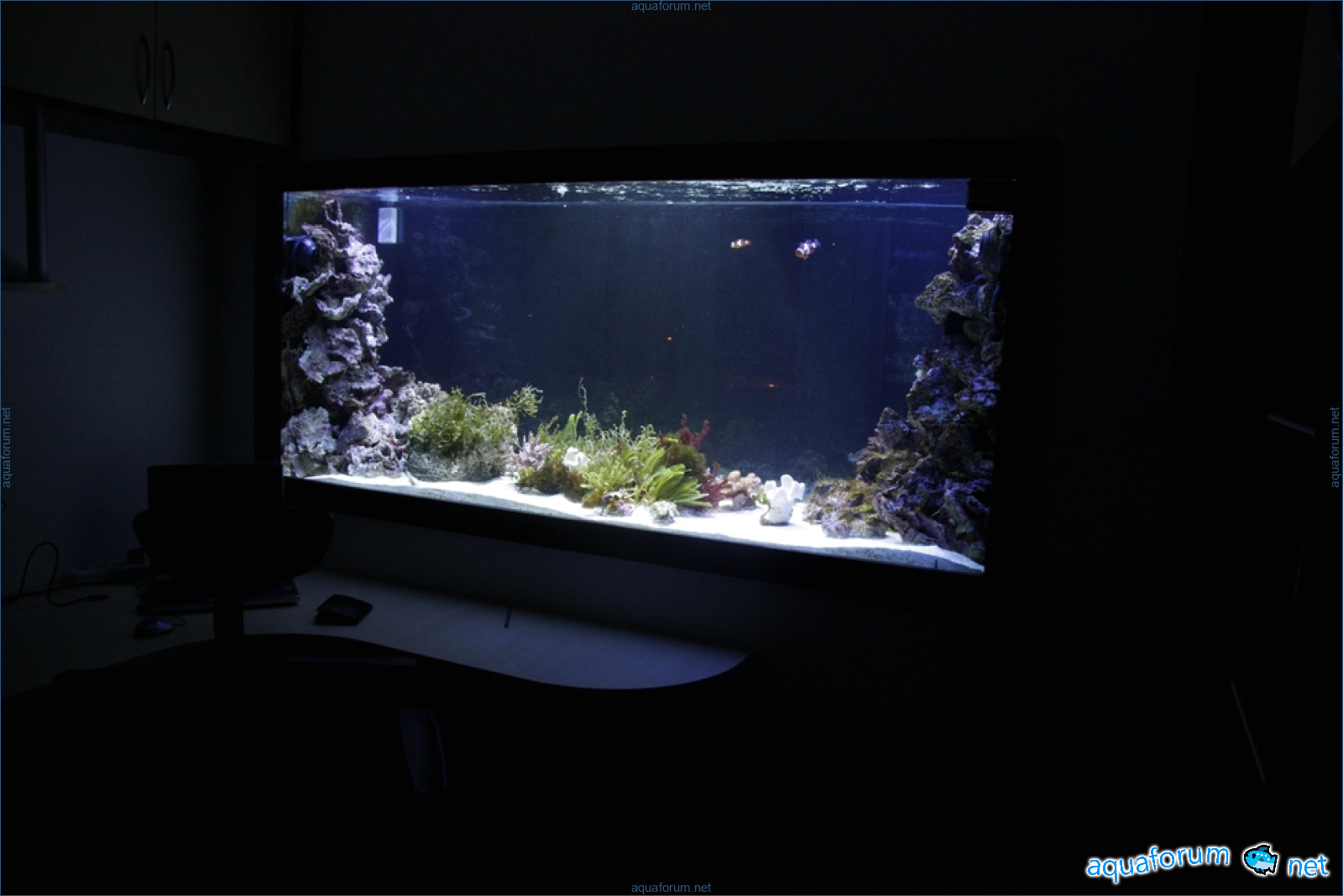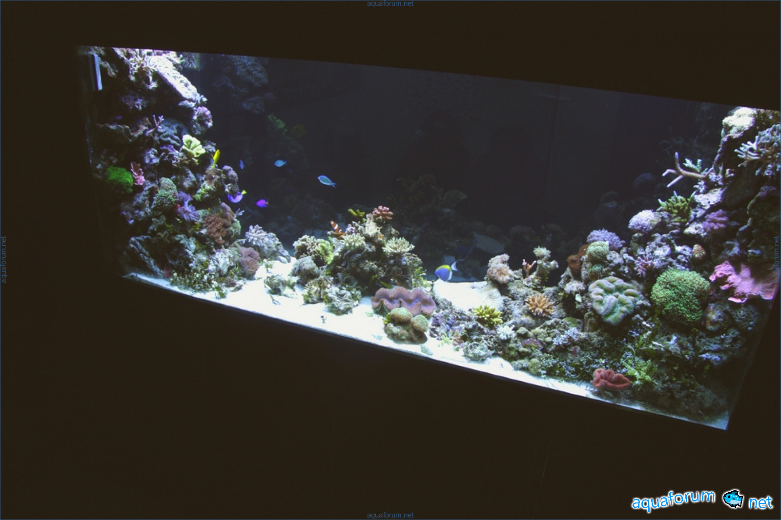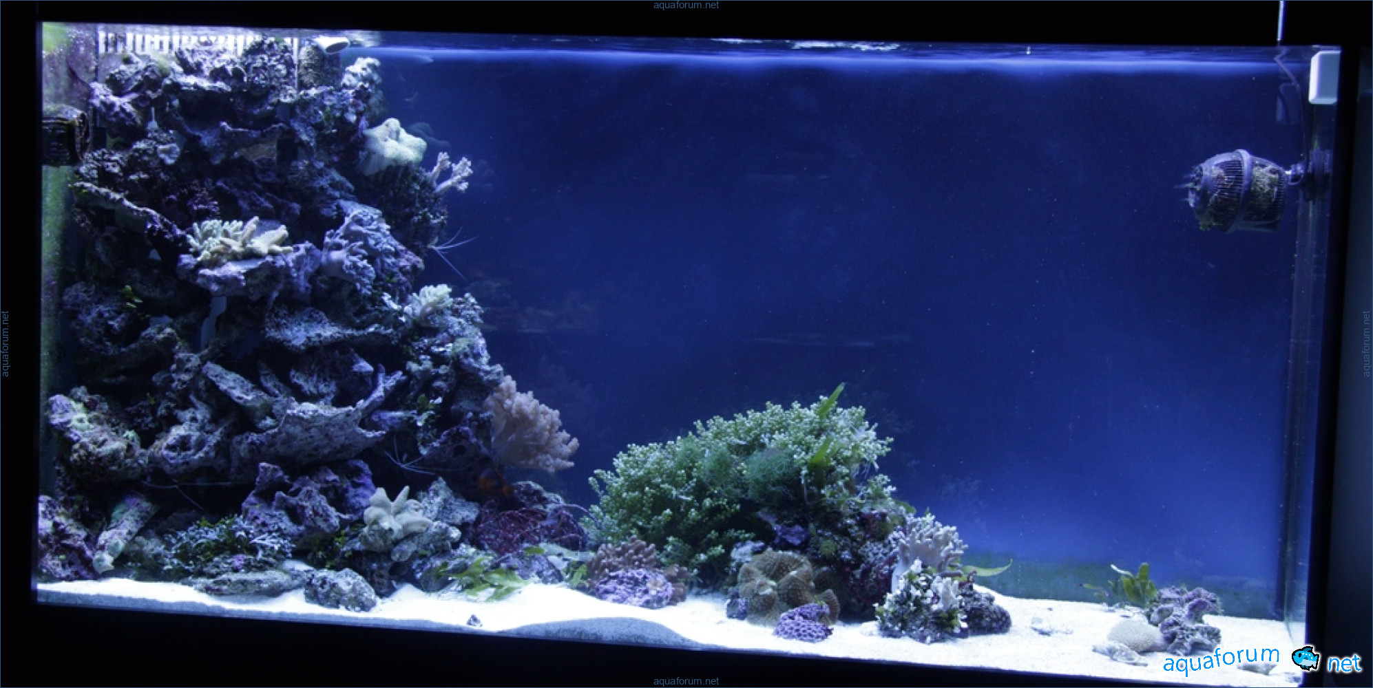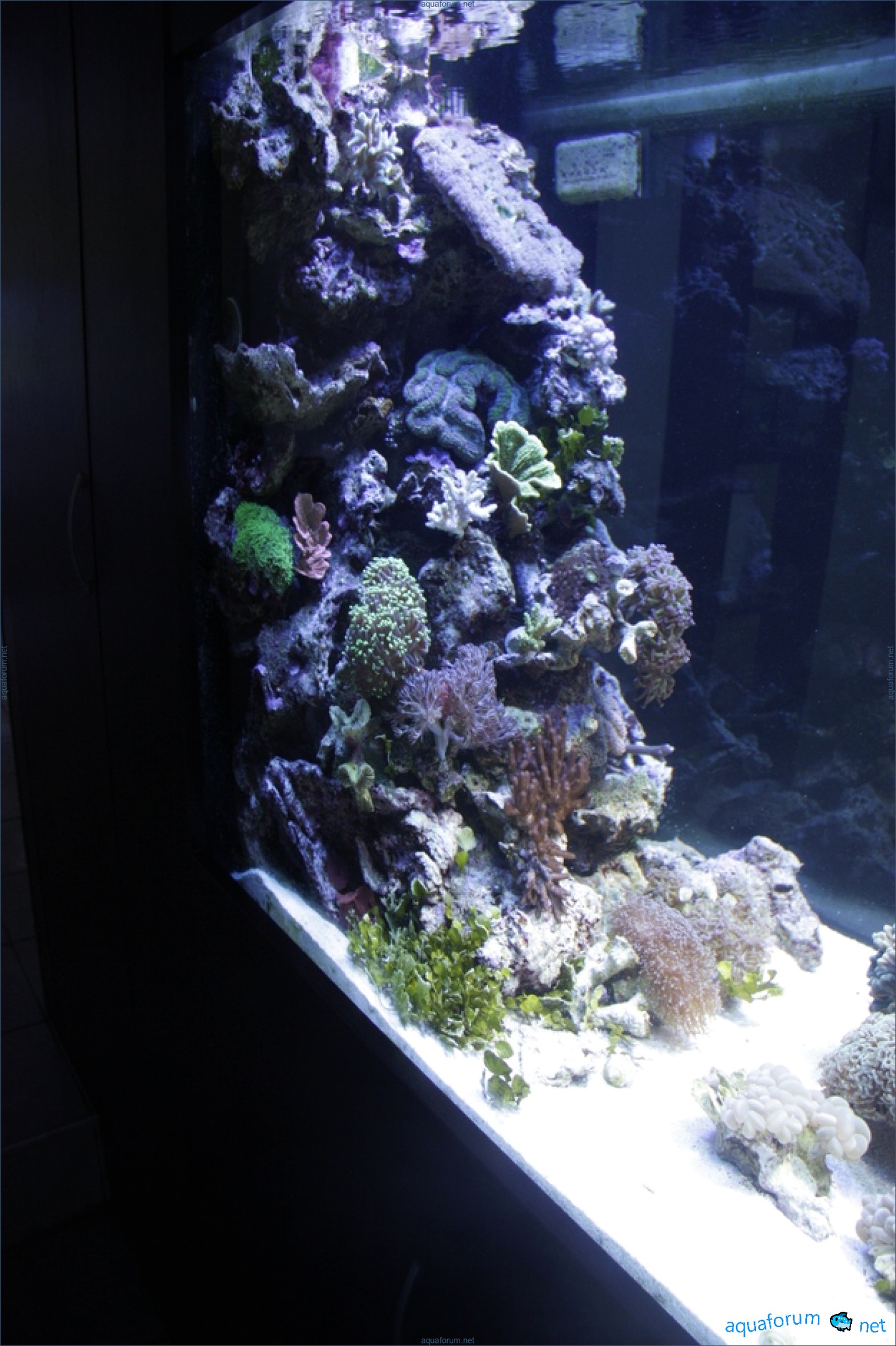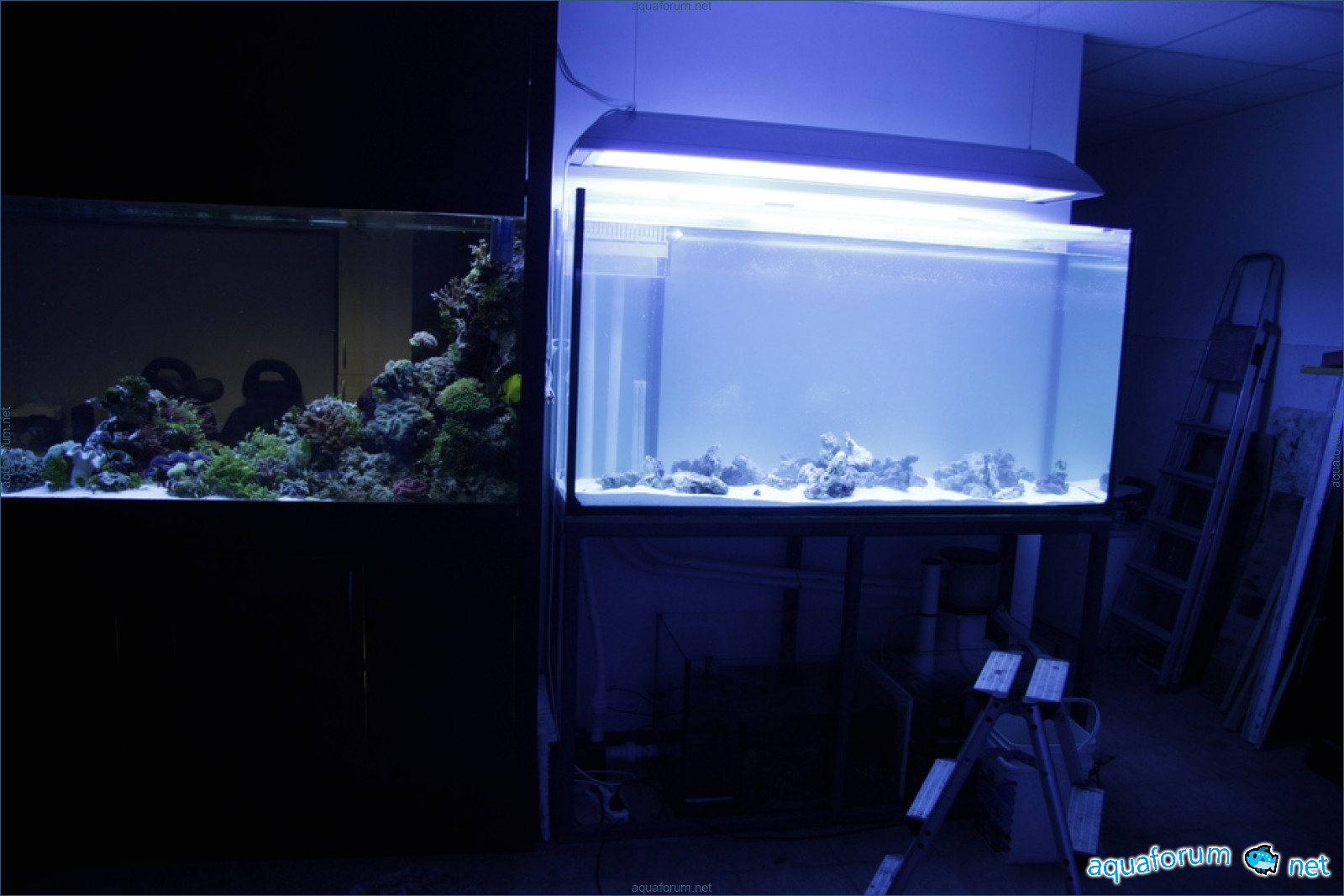 A space and opportunity have emerged to create something of my own. The aquarium size is 2000x700x800, with a viewing window. A skimmer is present. The current lighting setup consists of 2x250W 2000K lamps and 1x250W 1400K lamp, all of Chinese manufacture, as well as 6 T5 Aquamedic Actinic+ and 2 JBL 9000K lamps. The circulation pump is a Grundfos, and a wavebox with a Hydor 7.8 is used for water flow. An additional Tunze pump will be installed. The sand substrate weighs 100kg. Only a part of the reef has been set up so far, with