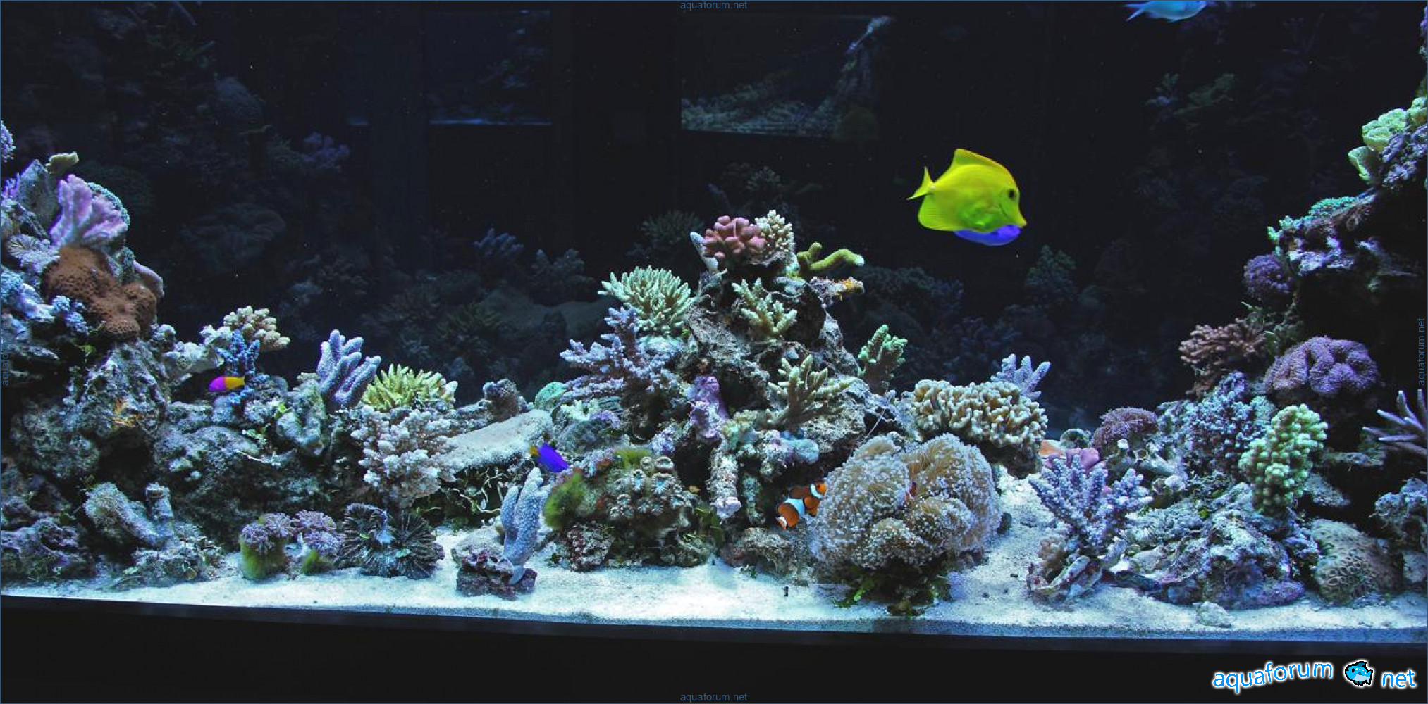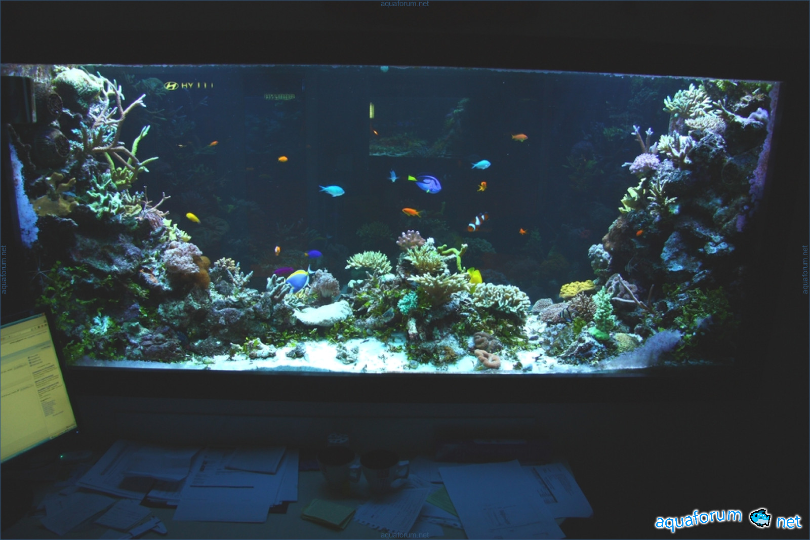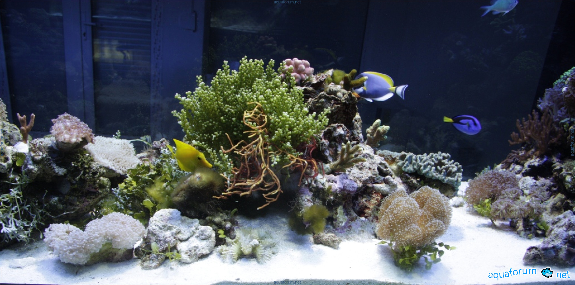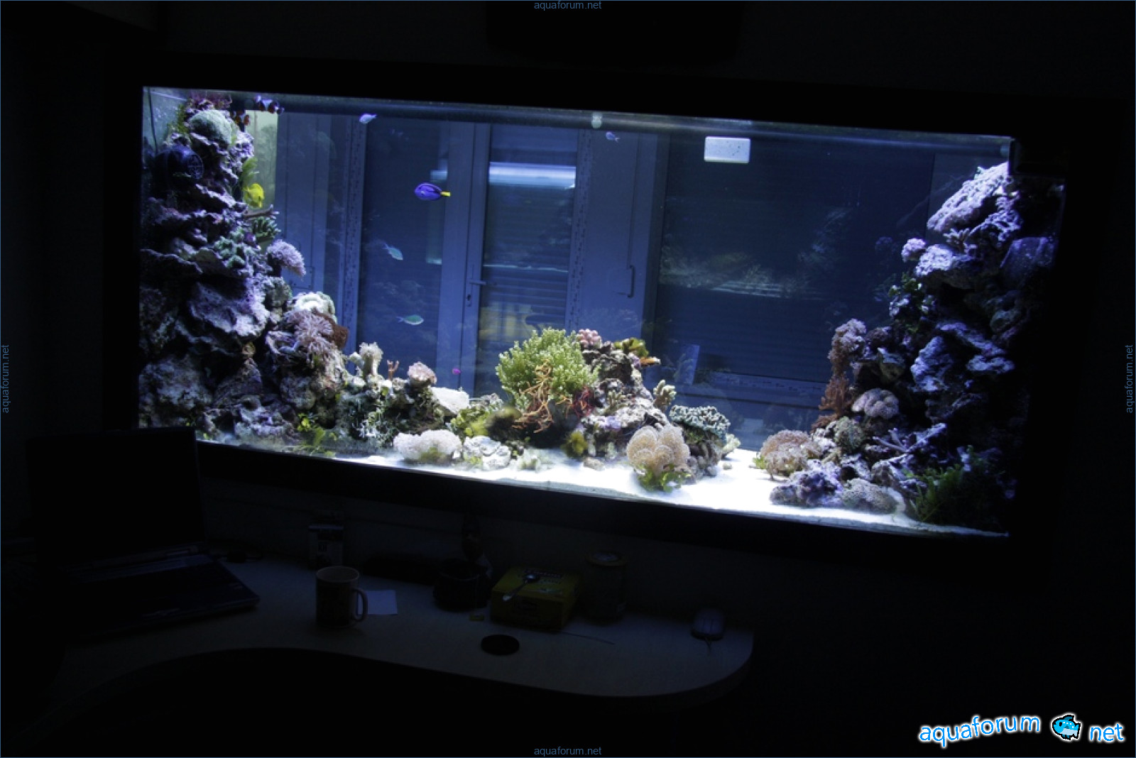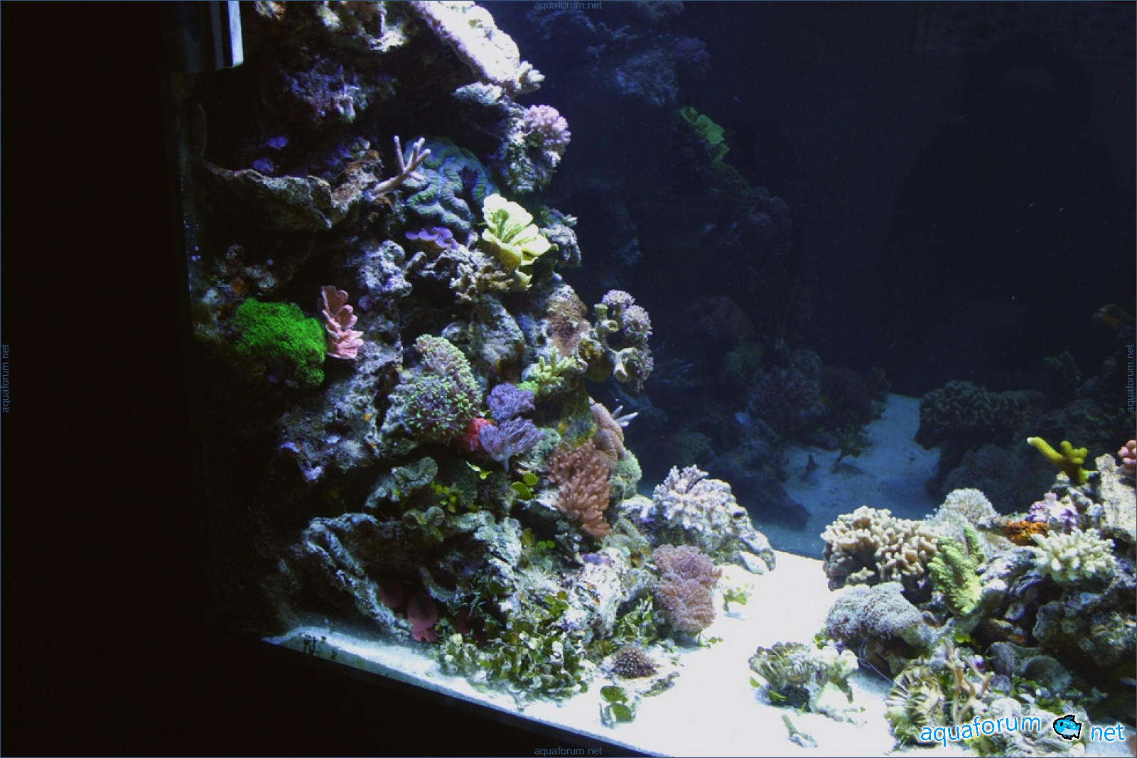 A space and opportunity have emerged to create something of my own. The aquarium size is 2000x700x800, with a viewing window. A skimmer is present. The current lighting setup consists of 2x250W 2000K lamps and 1x250W 1400K lamp, all of Chinese manufacture, as well as 6 T5 Aquamedic Actinic+ and 2 JBL 9000K lamps. The circulation pump is a Grundfos, and a wavebox with a Hydor 7.8 is used for water flow. An additional Tunze pump will be installed. The sand substrate weighs 100kg. Only a part of the reef has been set up so far, with