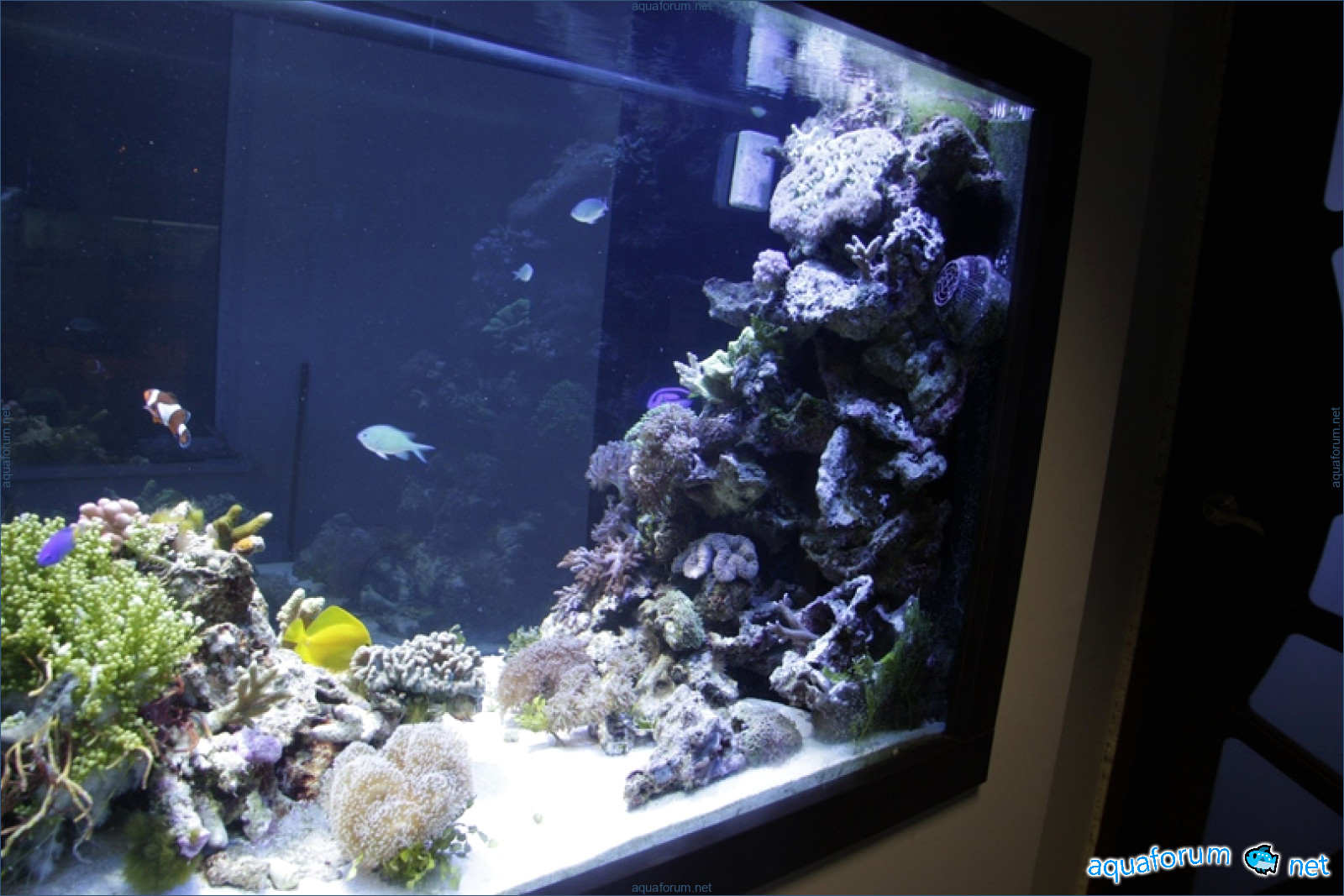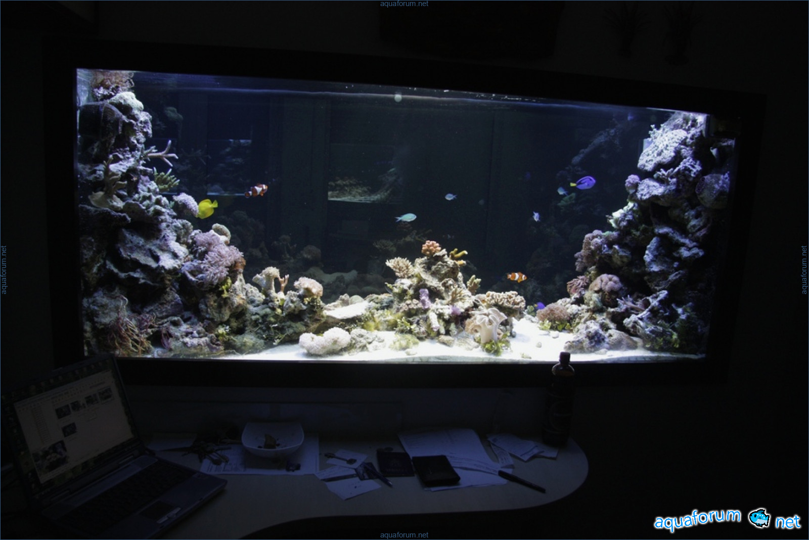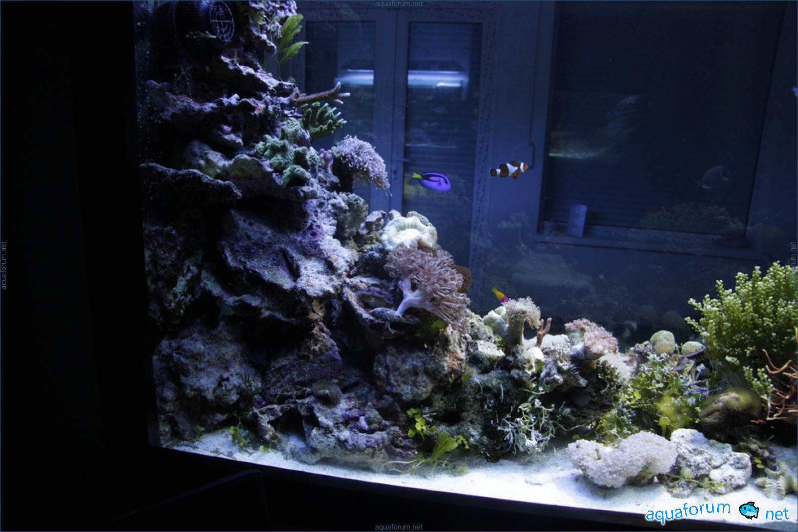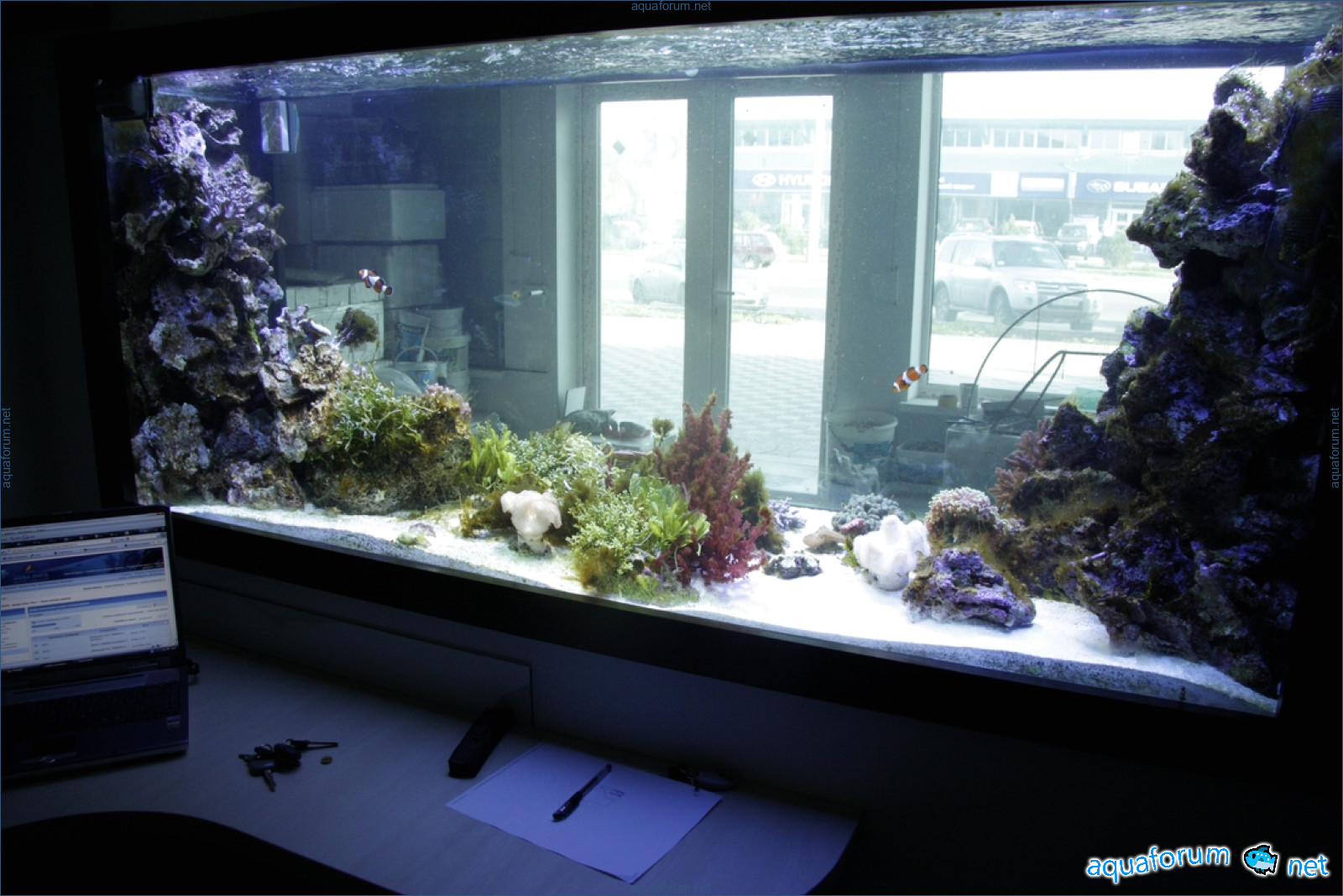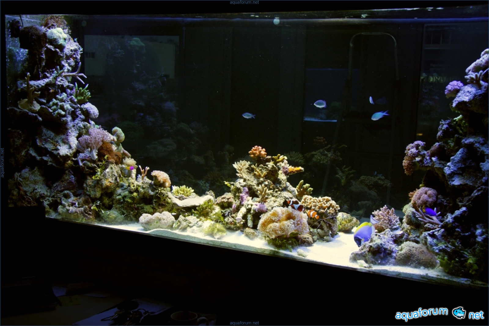 A space and opportunity have emerged to create something of my own. The aquarium size is 2000x700x800, with a viewing window. A skimmer is present. The current lighting setup consists of 2x250W 2000K lamps and 1x250W 1400K lamp, all of Chinese manufacture, as well as 6 T5 Aquamedic Actinic+ and 2 JBL 9000K lamps. The circulation pump is a Grundfos, and a wavebox with a Hydor 7.8 is used for water flow. An additional Tunze pump will be installed. The sand substrate weighs 100kg. Only a part of the reef has been set up so far, with