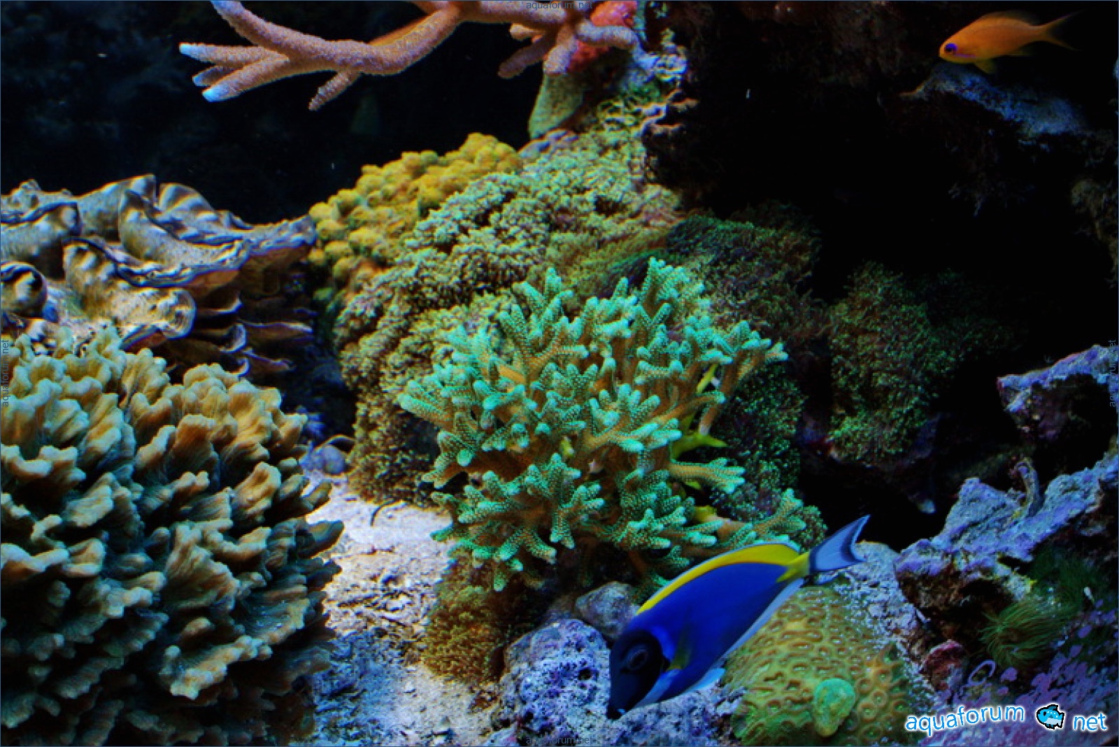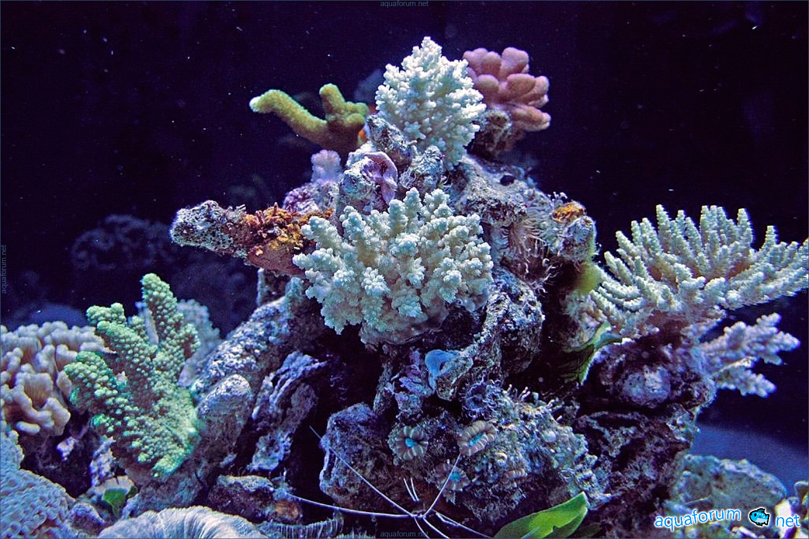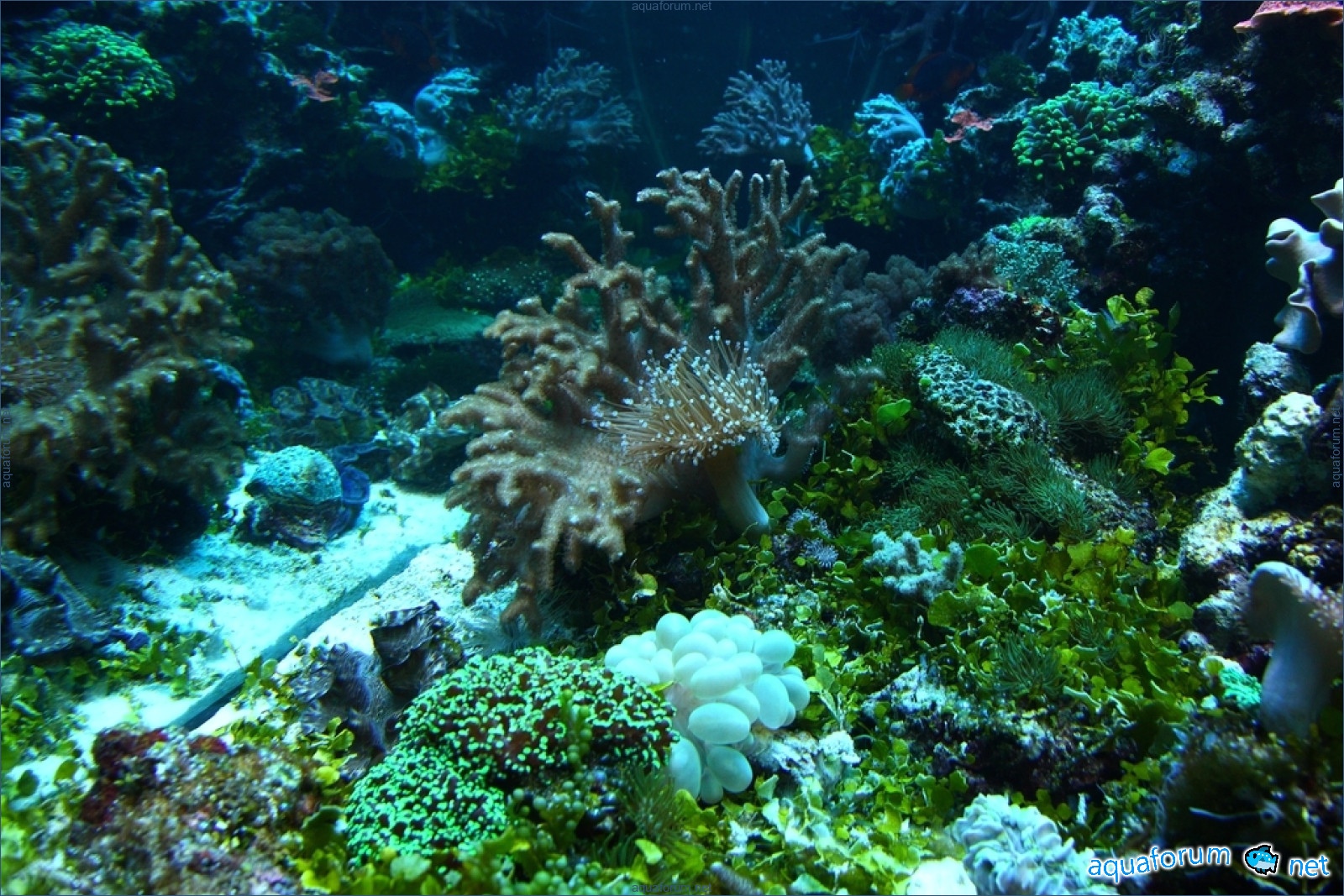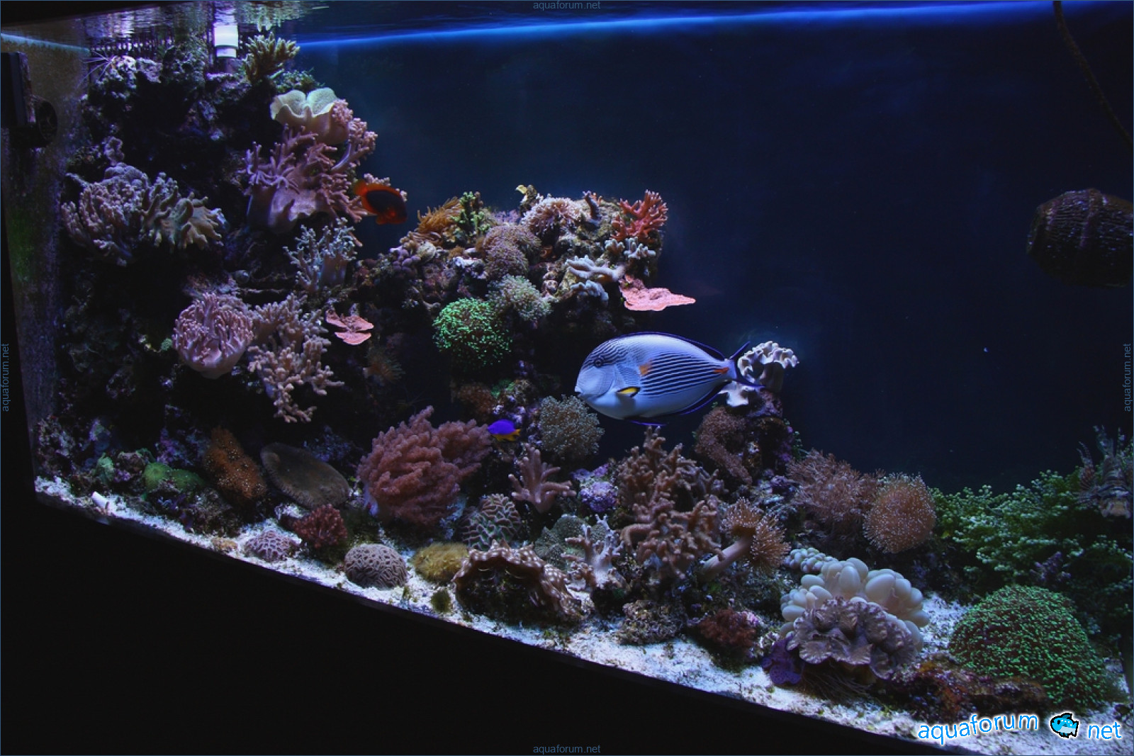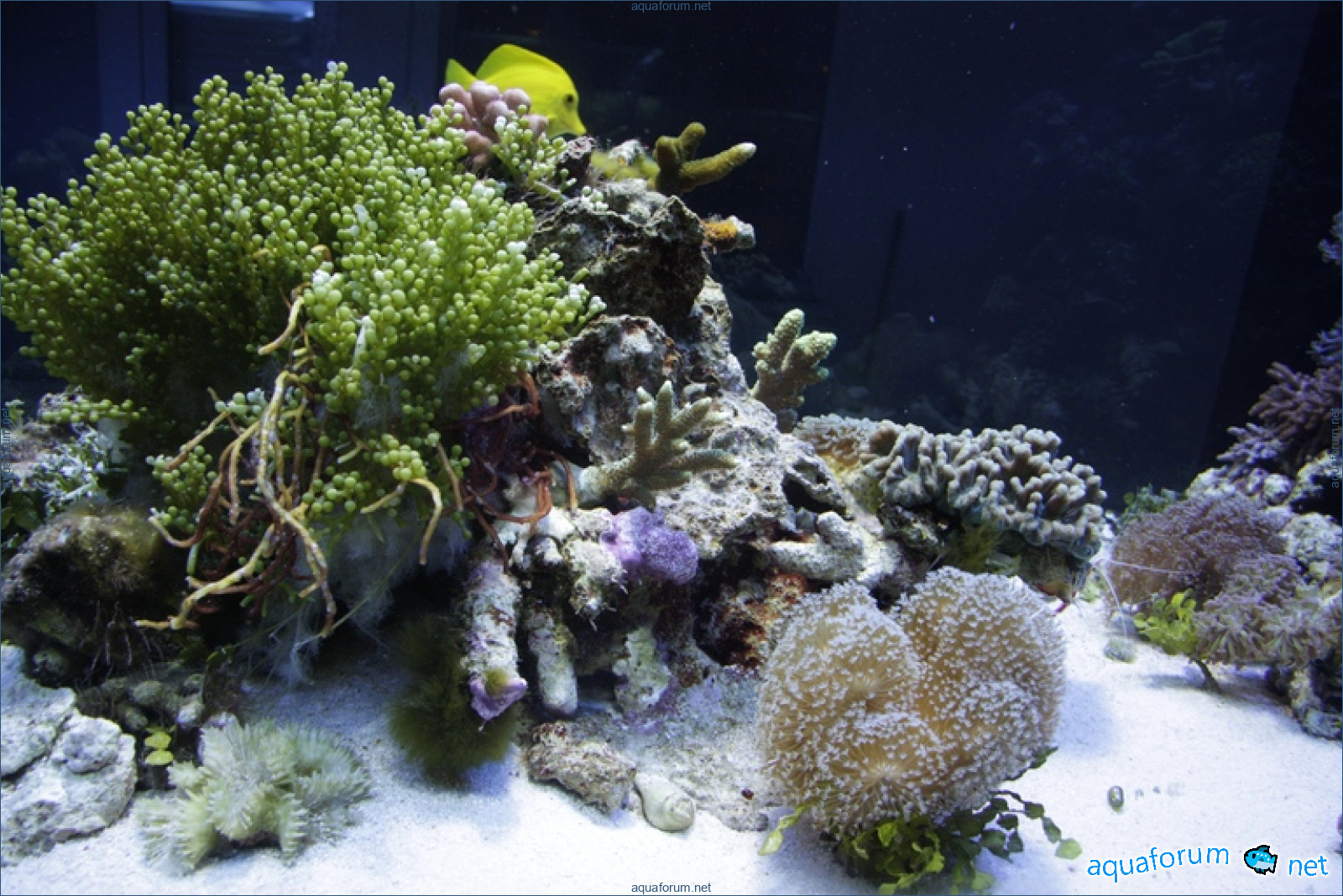 A space and opportunity have emerged to create something of my own. The aquarium size is 2000x700x800, with a viewing window. A skimmer is present. The current lighting setup consists of 2x250W 2000K lamps and 1x250W 1400K lamp, all of Chinese manufacture, as well as 6 T5 Aquamedic Actinic+ and 2 JBL 9000K lamps. The circulation pump is a Grundfos, and a wavebox with a Hydor 7.8 is used for water flow. An additional Tunze pump will be installed. The sand substrate weighs 100kg. Only a part of the reef has been set up so far, with