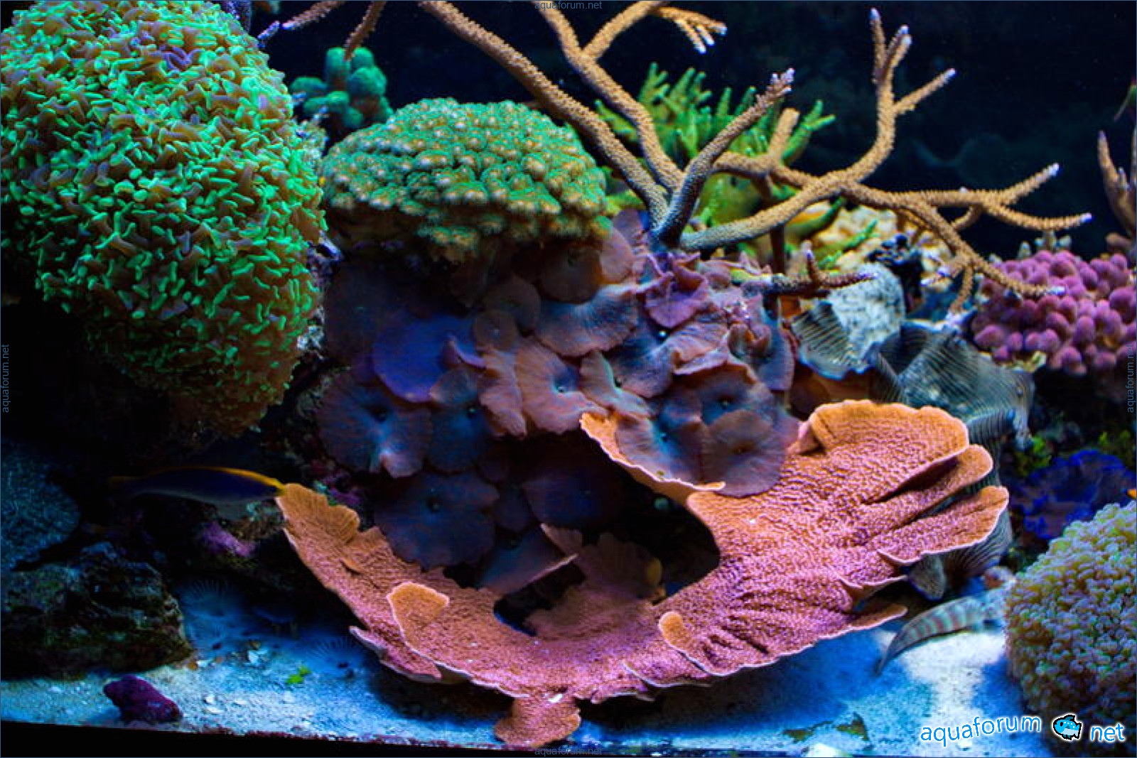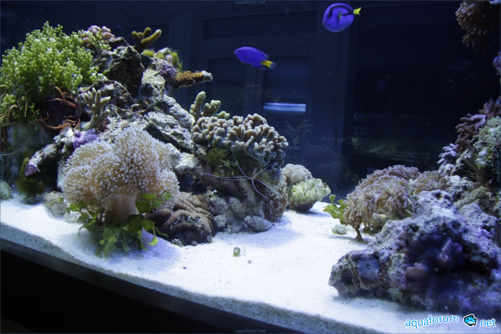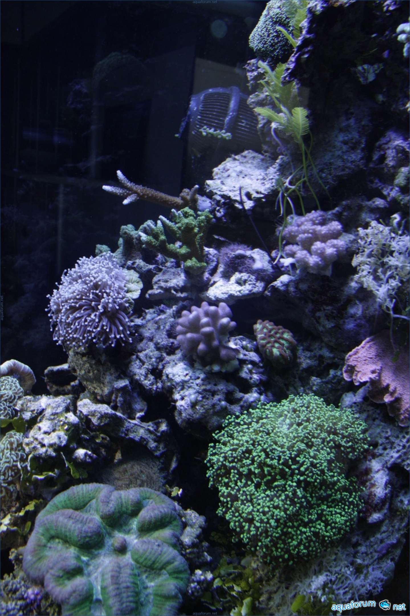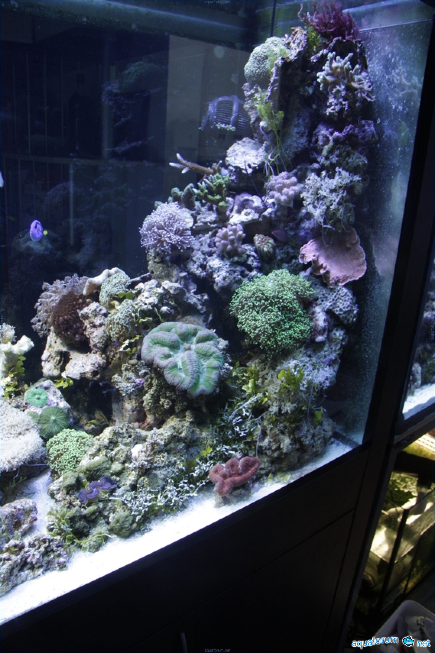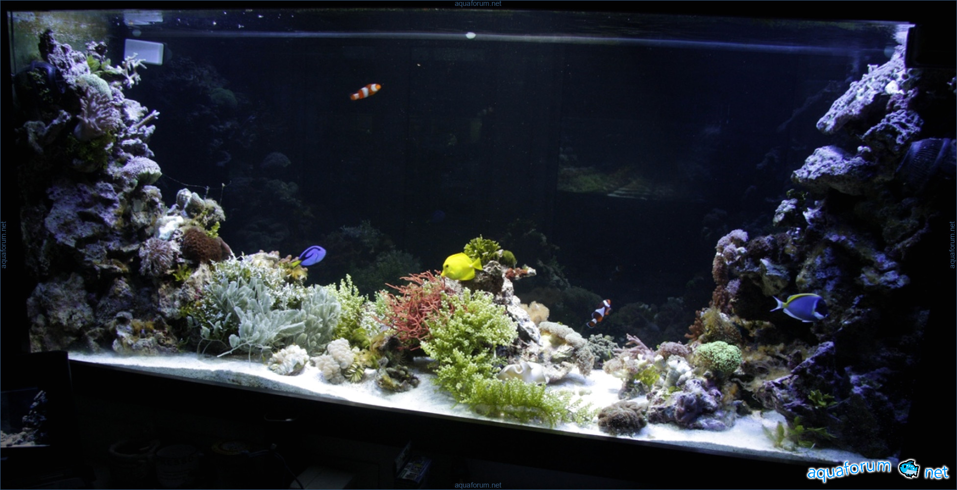 A space and opportunity have emerged to create something of my own. The aquarium size is 2000x700x800, with a viewing window. A skimmer is present. The current lighting setup consists of 2x250W 2000K lamps and 1x250W 1400K lamp, all of Chinese manufacture, as well as 6 T5 Aquamedic Actinic+ and 2 JBL 9000K lamps. The circulation pump is a Grundfos, and a wavebox with a Hydor 7.8 is used for water flow. An additional Tunze pump will be installed. The sand substrate weighs 100kg. Only a part of the reef has been set up so far, with
