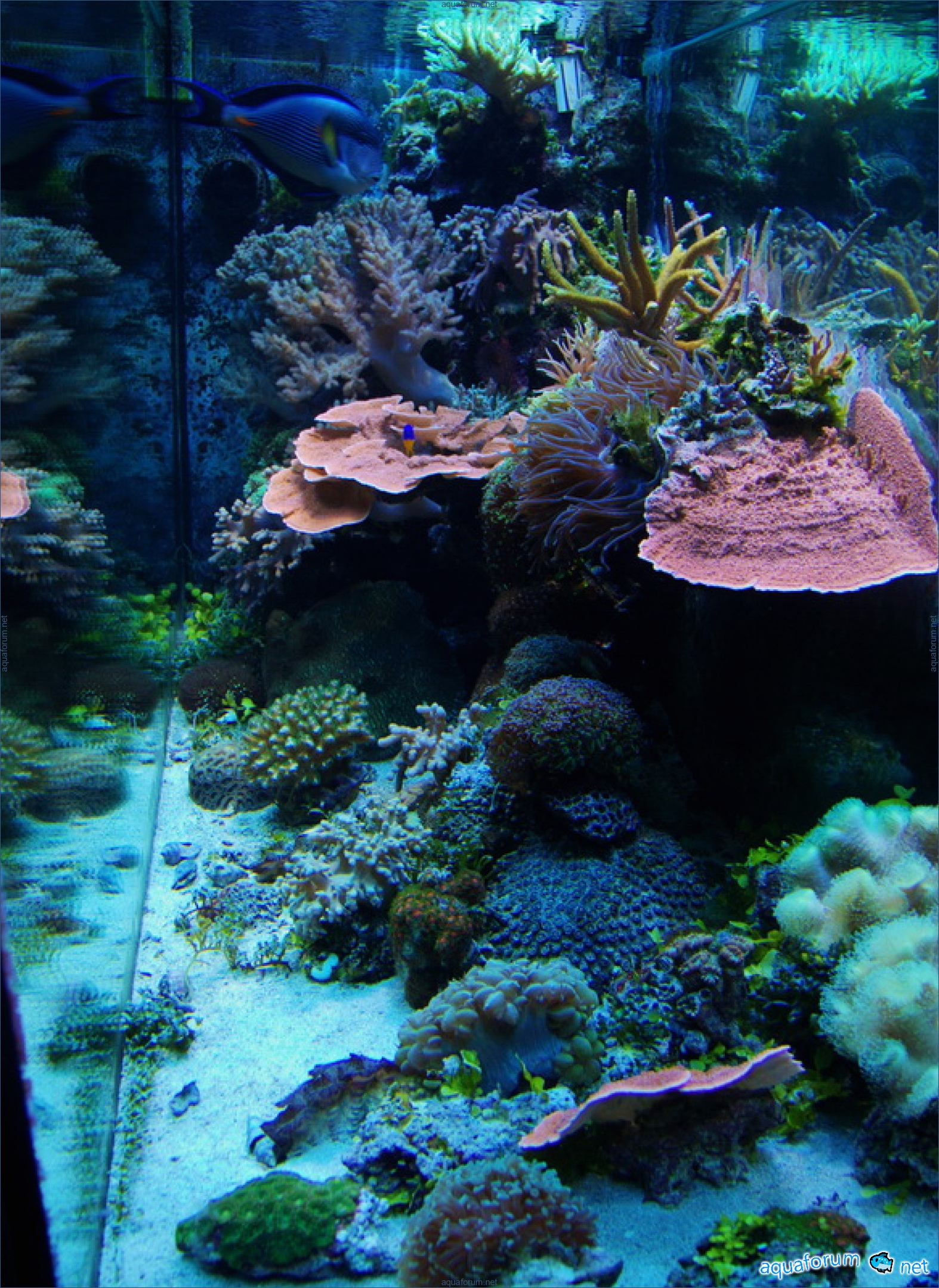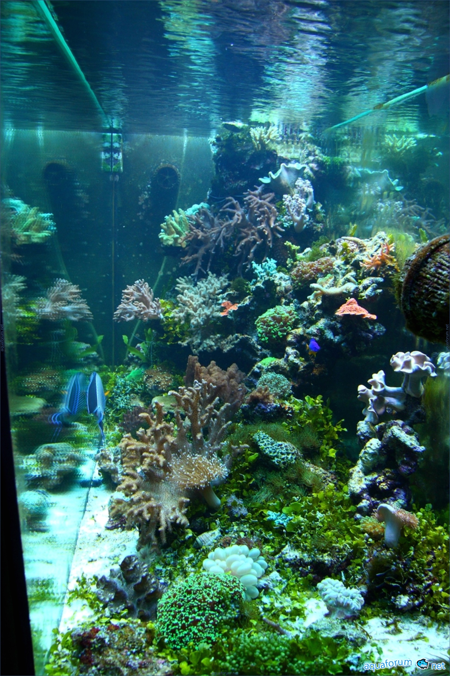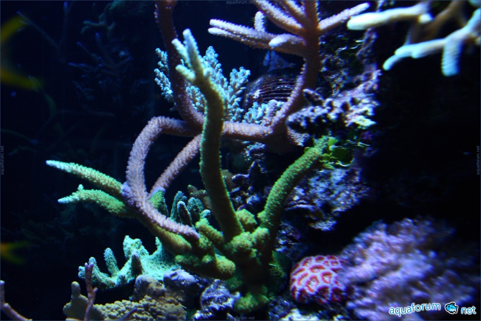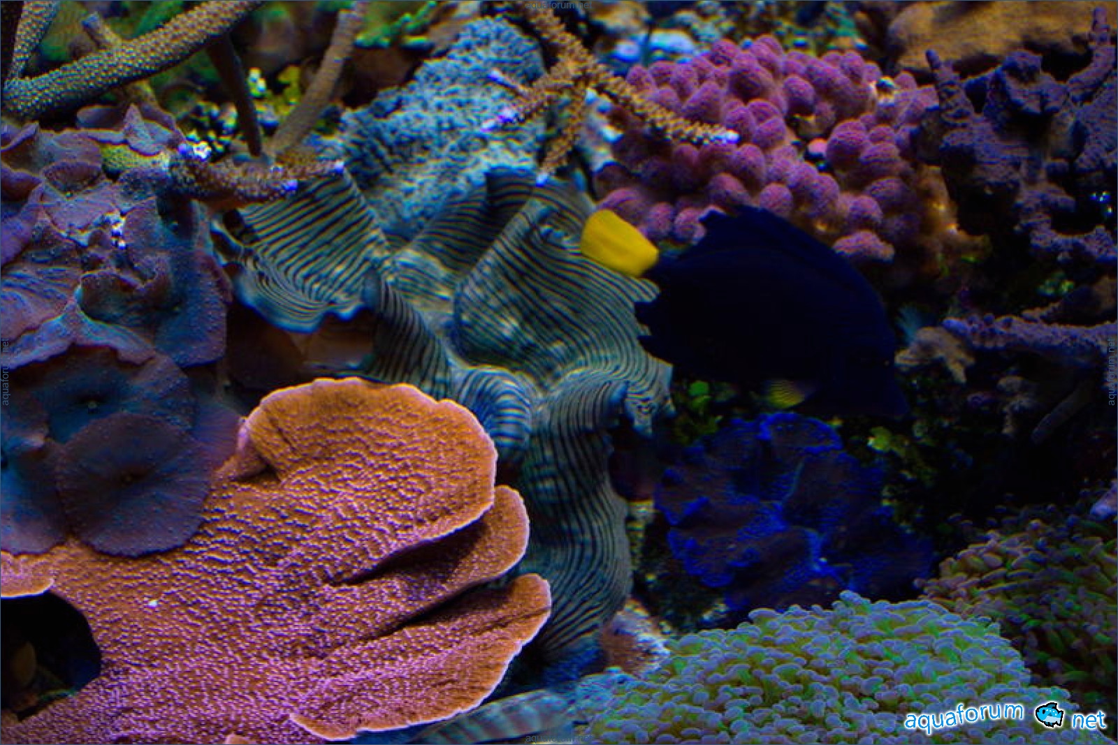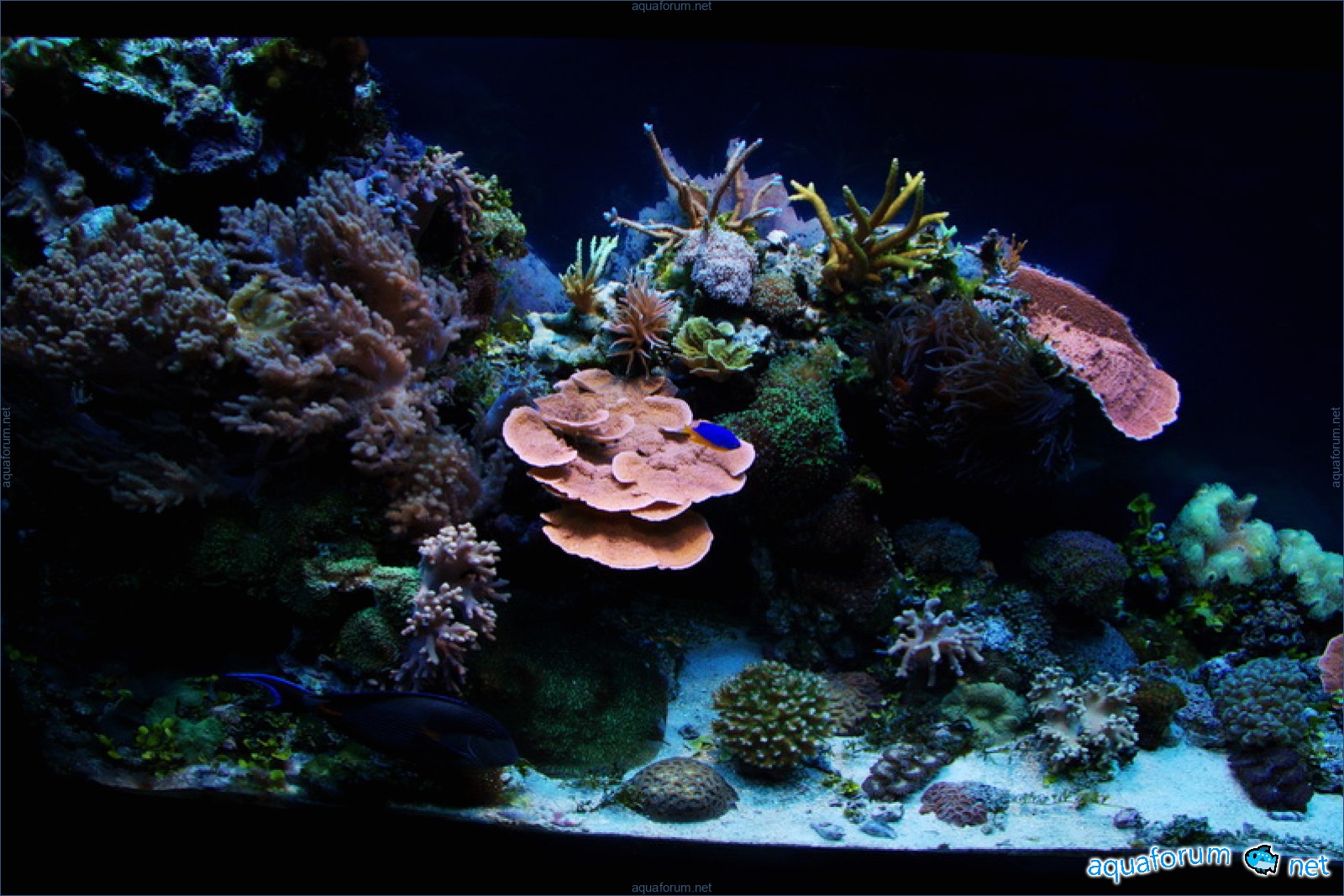 A space and opportunity have emerged to create something of my own. The aquarium size is 2000x700x800, with a viewing window. A skimmer is present. The current lighting setup consists of 2x250W 2000K lamps and 1x250W 1400K lamp, all of Chinese manufacture, as well as 6 T5 Aquamedic Actinic+ and 2 JBL 9000K lamps. The circulation pump is a Grundfos, and a wavebox with a Hydor 7.8 is used for water flow. An additional Tunze pump will be installed. The sand substrate weighs 100kg. Only a part of the reef has been set up so far, with