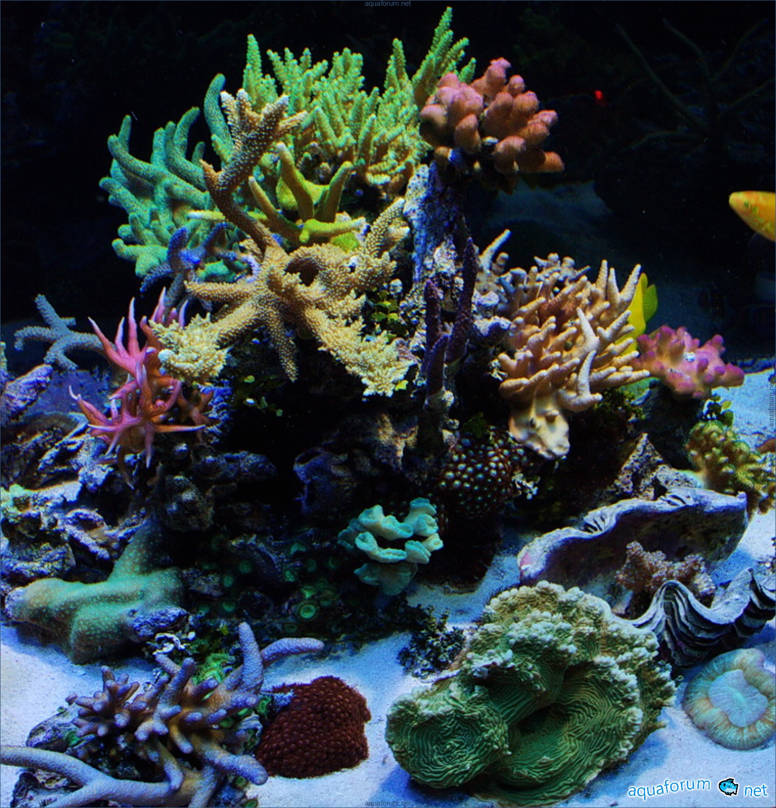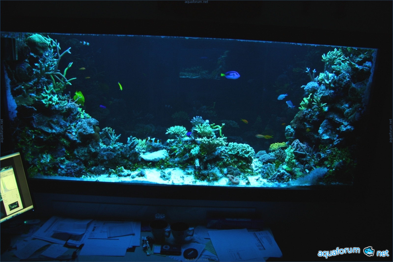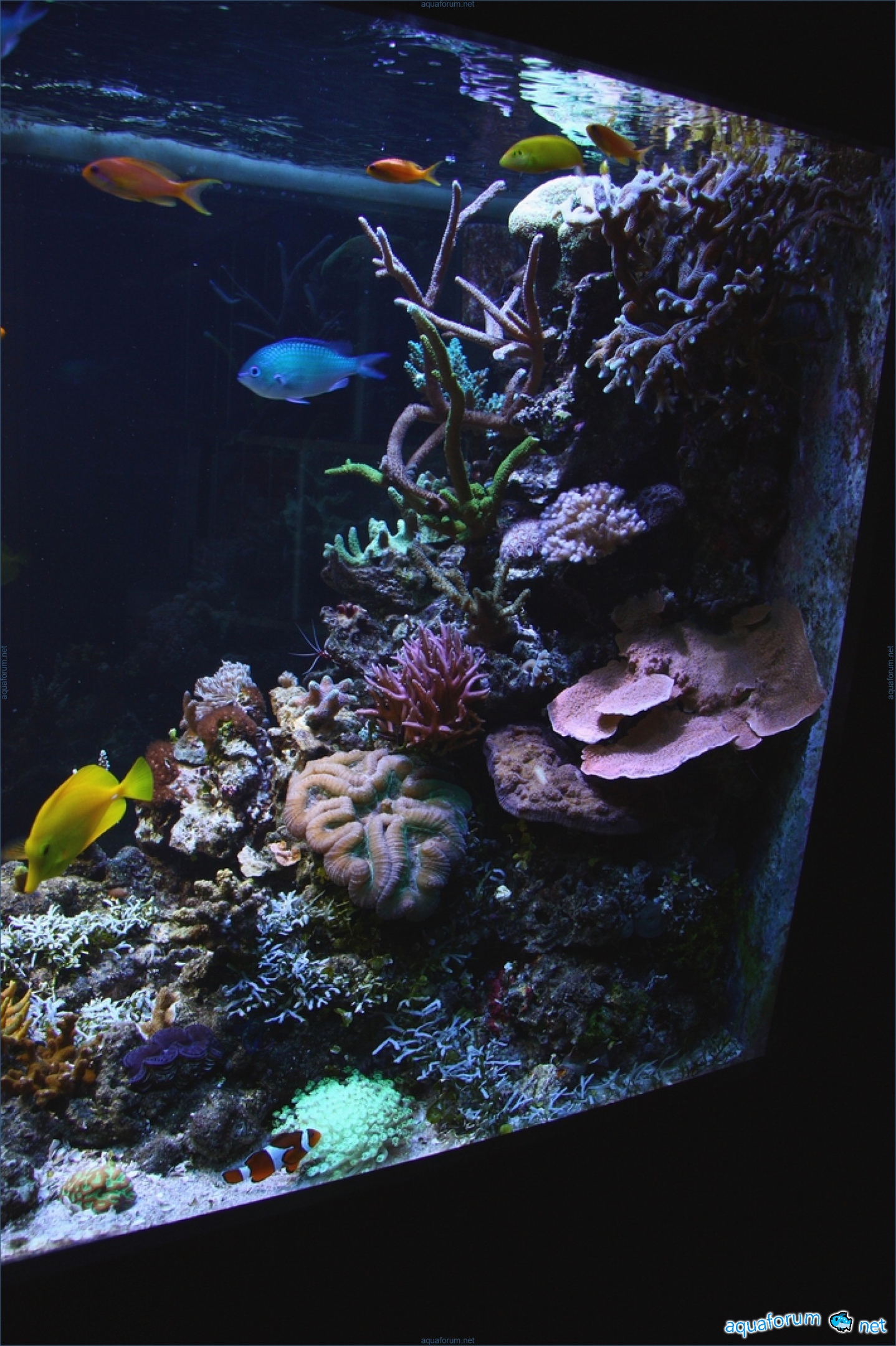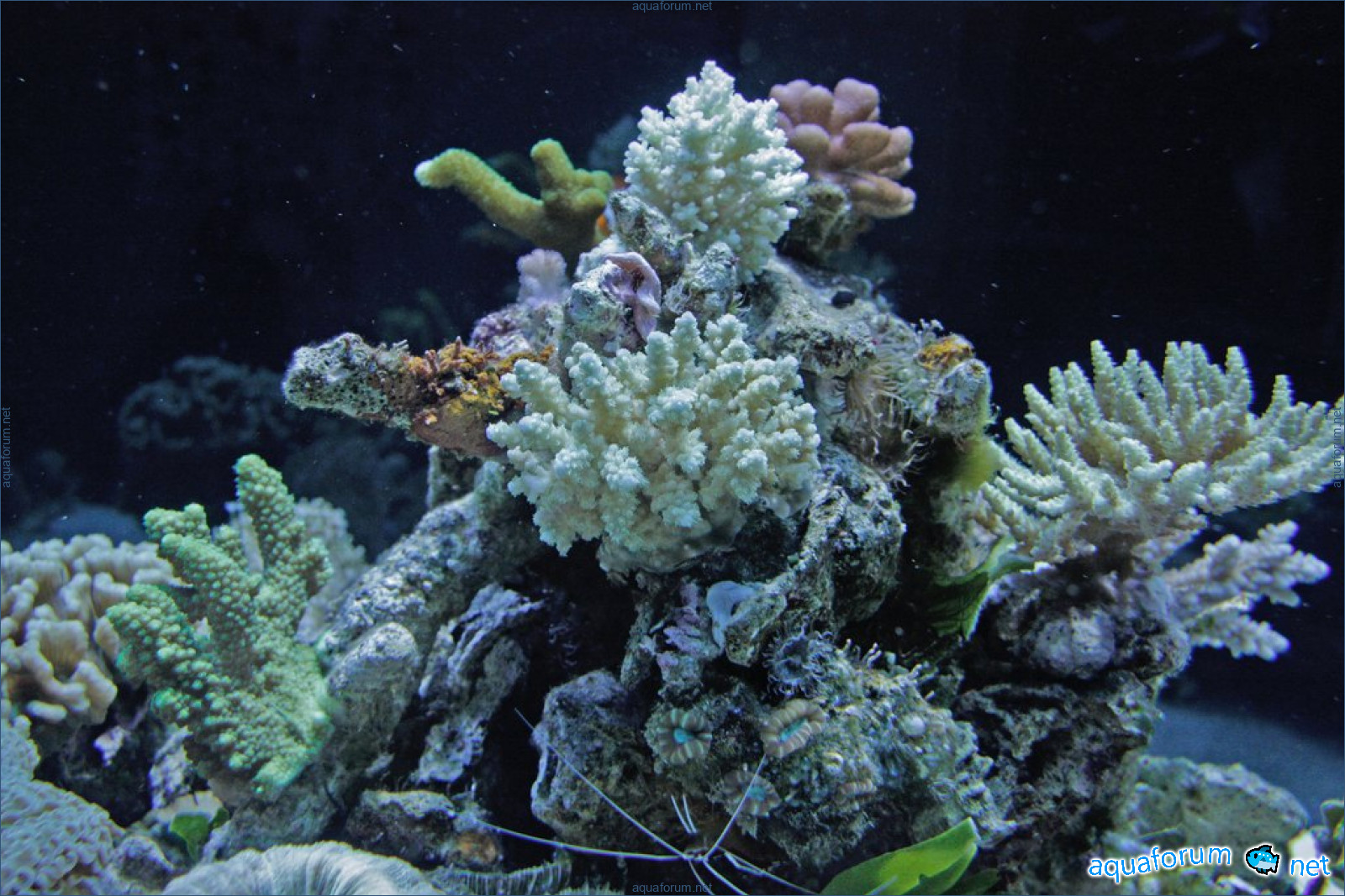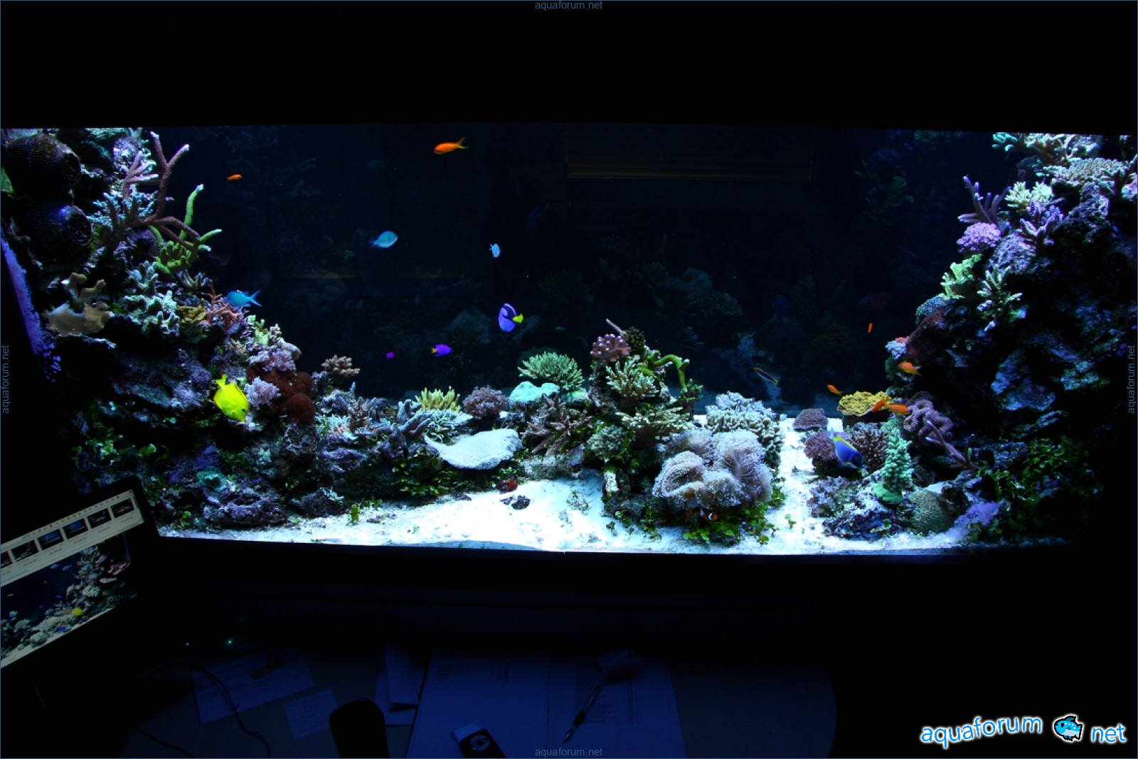 A space and opportunity have emerged to create something of my own. The aquarium size is 2000x700x800, with a viewing window. A skimmer is present. The current lighting setup consists of 2x250W 2000K lamps and 1x250W 1400K lamp, all of Chinese manufacture, as well as 6 T5 Aquamedic Actinic+ and 2 JBL 9000K lamps. The circulation pump is a Grundfos, and a wavebox with a Hydor 7.8 is used for water flow. An additional Tunze pump will be installed. The sand substrate weighs 100kg. Only a part of the reef has been set up so far, with