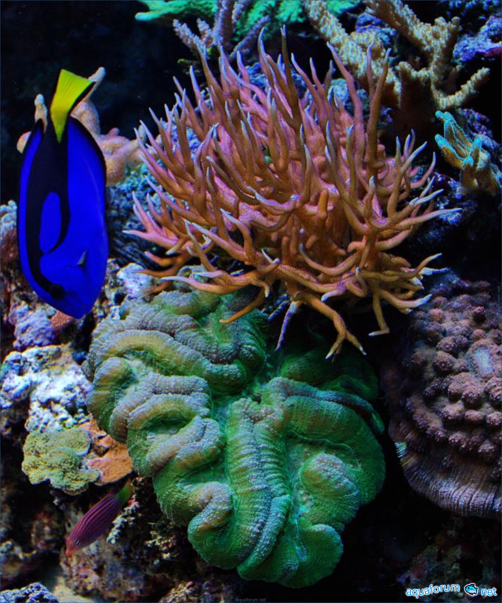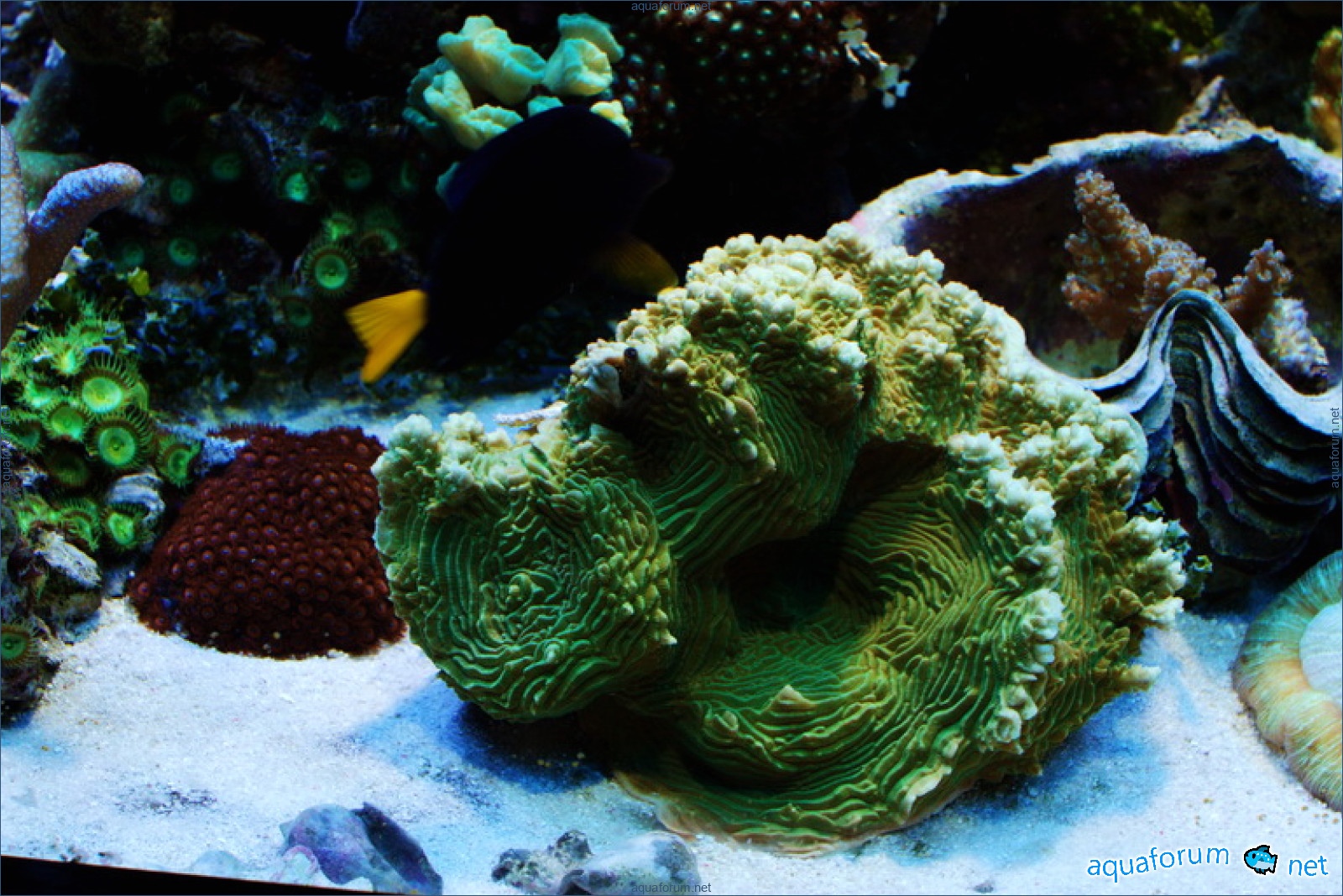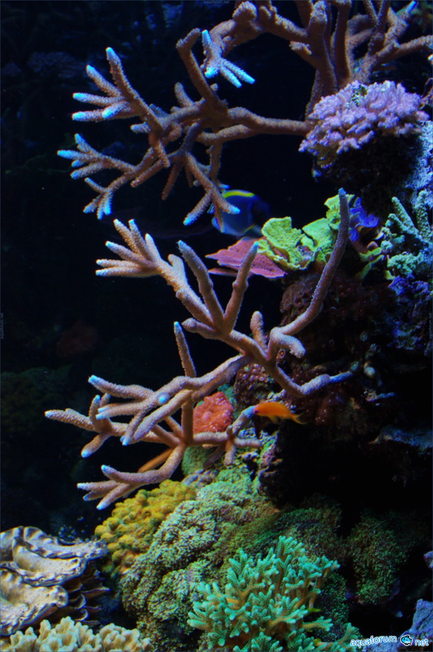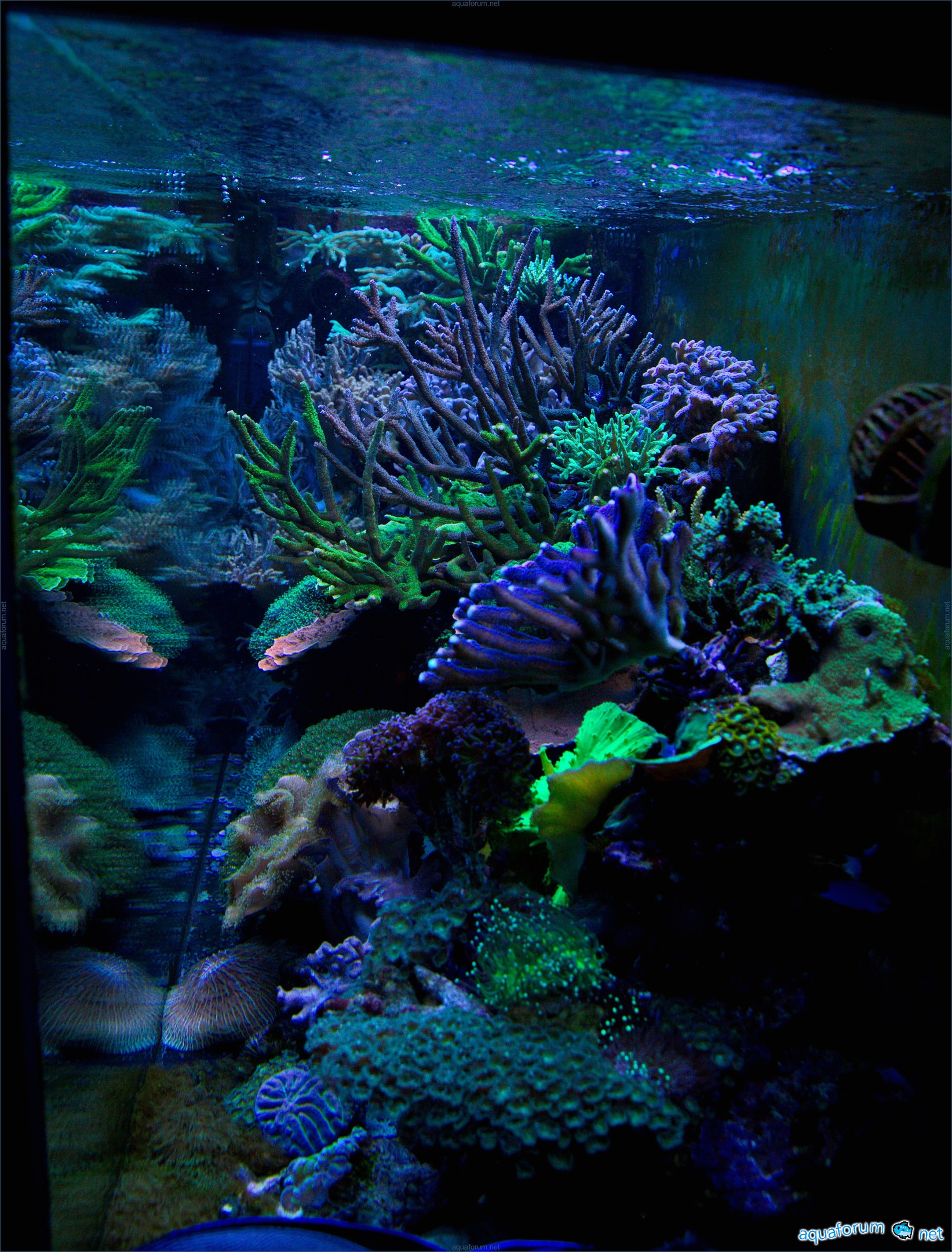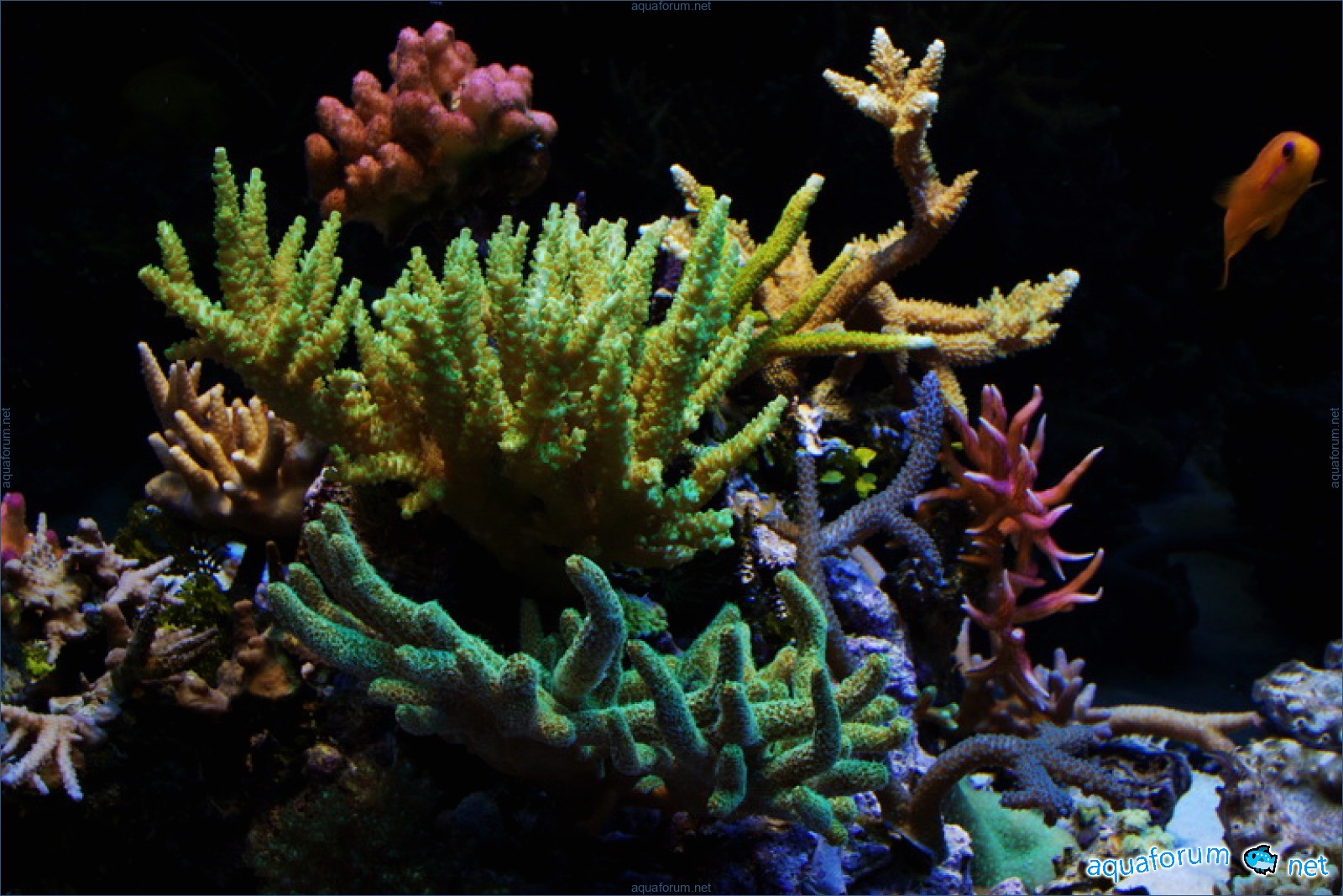 A space and opportunity have emerged to create something of my own. The aquarium size is 2000x700x800, with a viewing window. A skimmer is present. The current lighting setup consists of 2x250W 2000K lamps and 1x250W 1400K lamp, all of Chinese manufacture, as well as 6 T5 Aquamedic Actinic+ and 2 JBL 9000K lamps. The circulation pump is a Grundfos, and a wavebox with a Hydor 7.8 is used for water flow. An additional Tunze pump will be installed. The sand substrate weighs 100kg. Only a part of the reef has been set up so far, with