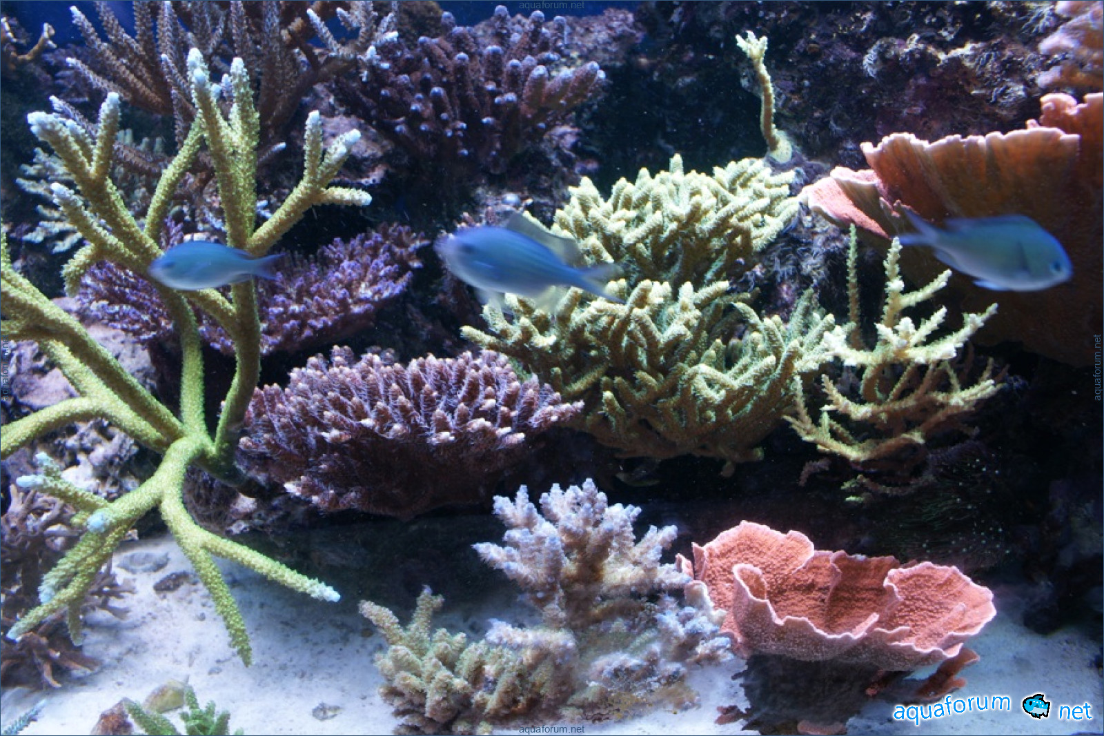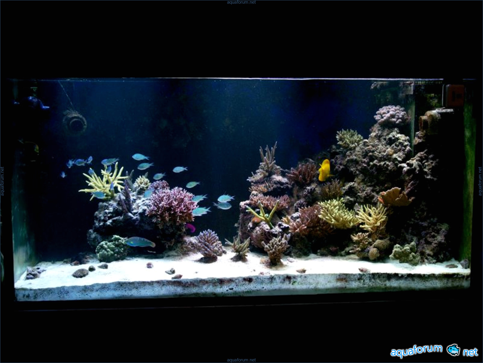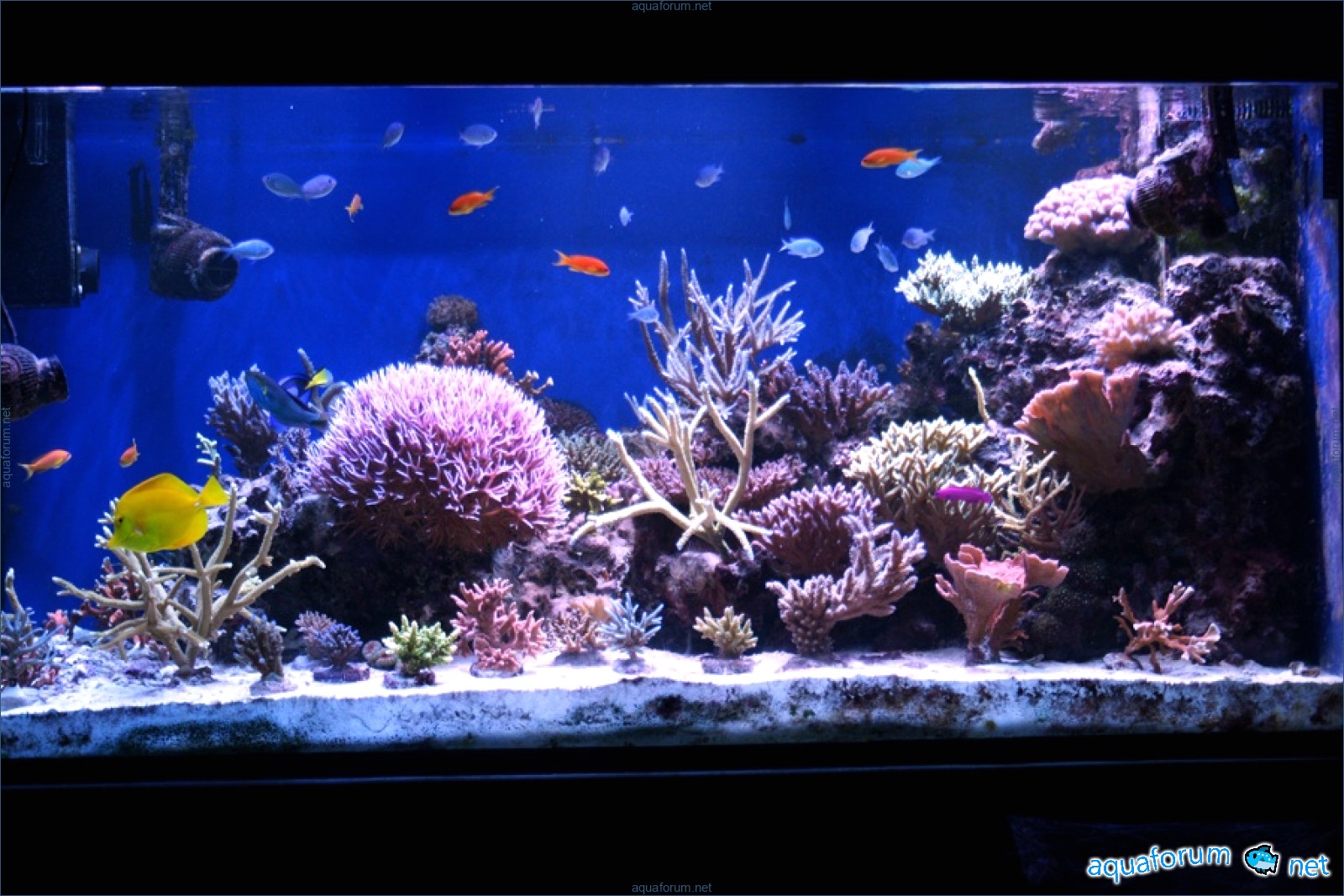 In August 2008, the launch took place... :-) Size 1700-820-850(height) 3 MG 400w and 2 T5 80w for 4 Tunze, 1 Deltec. Equipment: Skimmer - very poor, I don't even want to mention the brand. Reactor - Chinese... the brand is the same as the skimmer :-) but I can't really complain much. One breakdown in a year (pump). Refrigerator. And that's it :-) That
