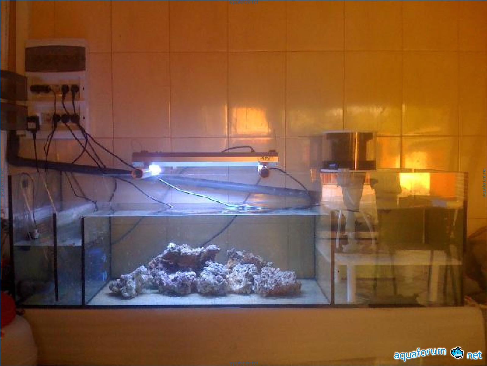 Good day! We would like to introduce you to the aquarium created by the company iReef. Brief description of the system: Display aquarium 150*65*80. Volume 780 liters. Made of19 mm (diamond) glass without cross-bars and stiffeners. Sump 170*60*60. Working volume 400 liters. Installed in the basement. Aquarium lighting: ATI Powermodule with 10 T-5 lamps of 80 watts each. Sump lighting: ATI Powermodule with 4 T-5 lamps of 24 watts each. Skimmer: ATI Bubble Master 250. Supply pump: Deltec HLP 8070. Flow pumps: 2 VorTech MP40w Proler Pumps. Tunze auto-top-up. The system contains 100 kg of live rock, 80 in the display aquarium and 20 in the sump. CaribSea sand 60 kg. Tropic in BIO-ACTIF salt. The aquarium was started using a 14-day startup from Korallen-Zucht. We will upload high-quality photos soon. The aquarium is in the process