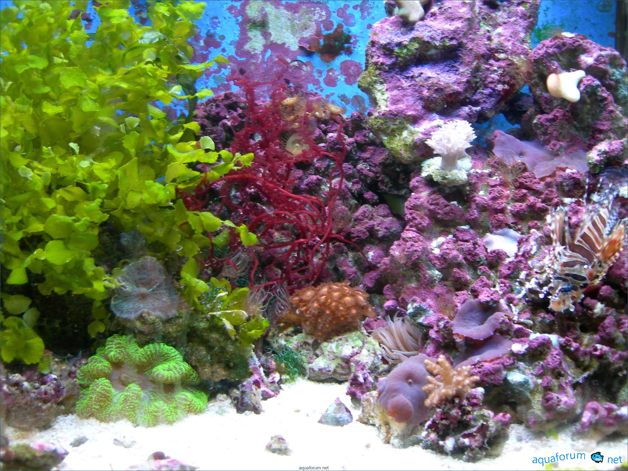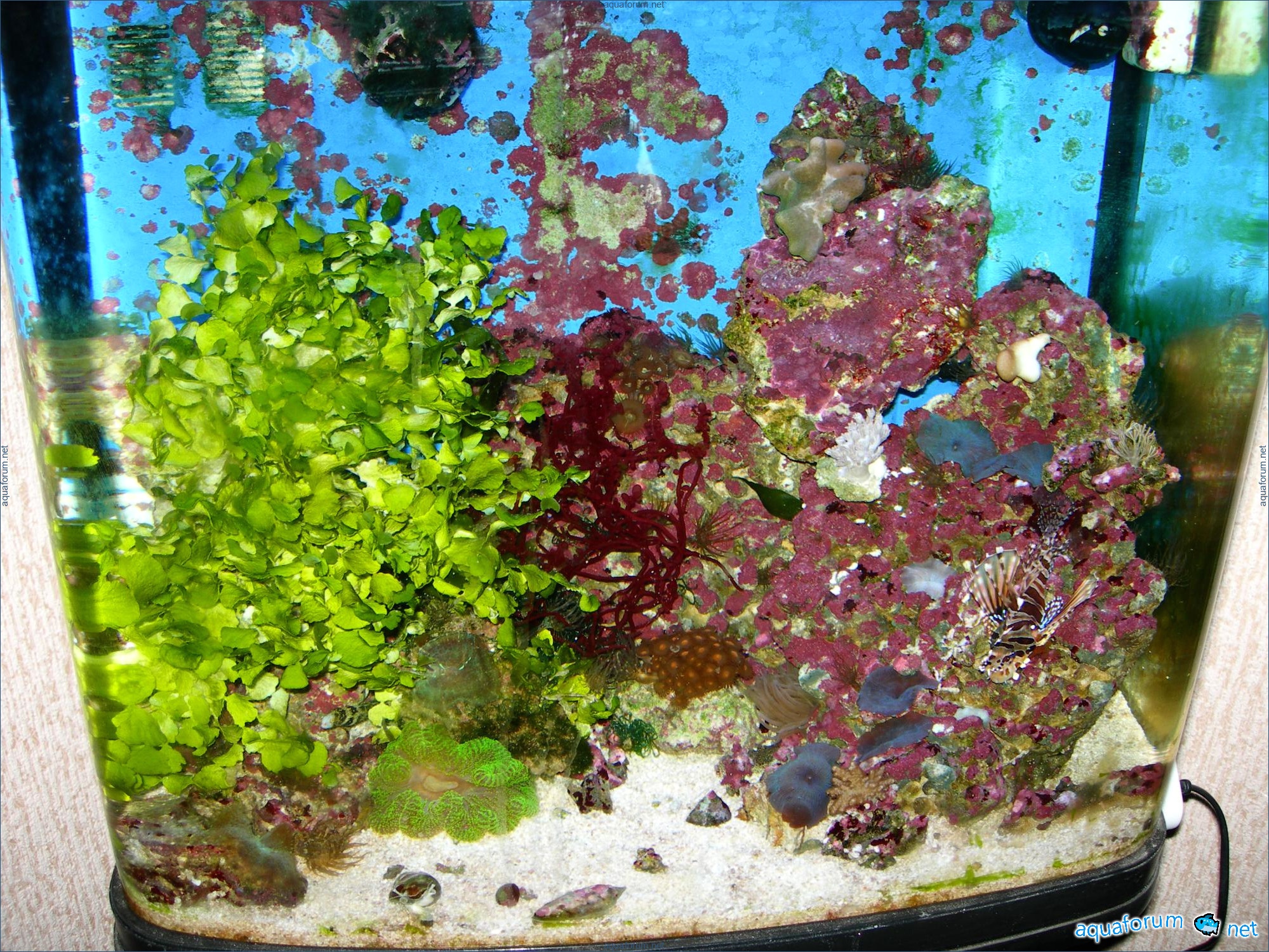 Actually, how it all started... So, in order, after I couldn't keep the temperature below 30°C this summer, I decided to remove all living creatures from the aquarium. Only the sand and L.R. (live rock) remained, along with whatever was crawling and scurrying around in them. In early September, after the heat began to subside, I started slowly reintroducing life, and here is the result... As of today: Halimeda is growing like crazy, Botryocladia leptopoda is trying to catch up. Weekly water changes of 25 liters (for the sake of the mat). I'm deliberately not touching the Aiptasia—I plan to introduce a Chelmon. PS. Both fish are very young, and comments like "not the right tank size for this fish" will not be considered. After all, I have a place to relocate it to a proper volume.