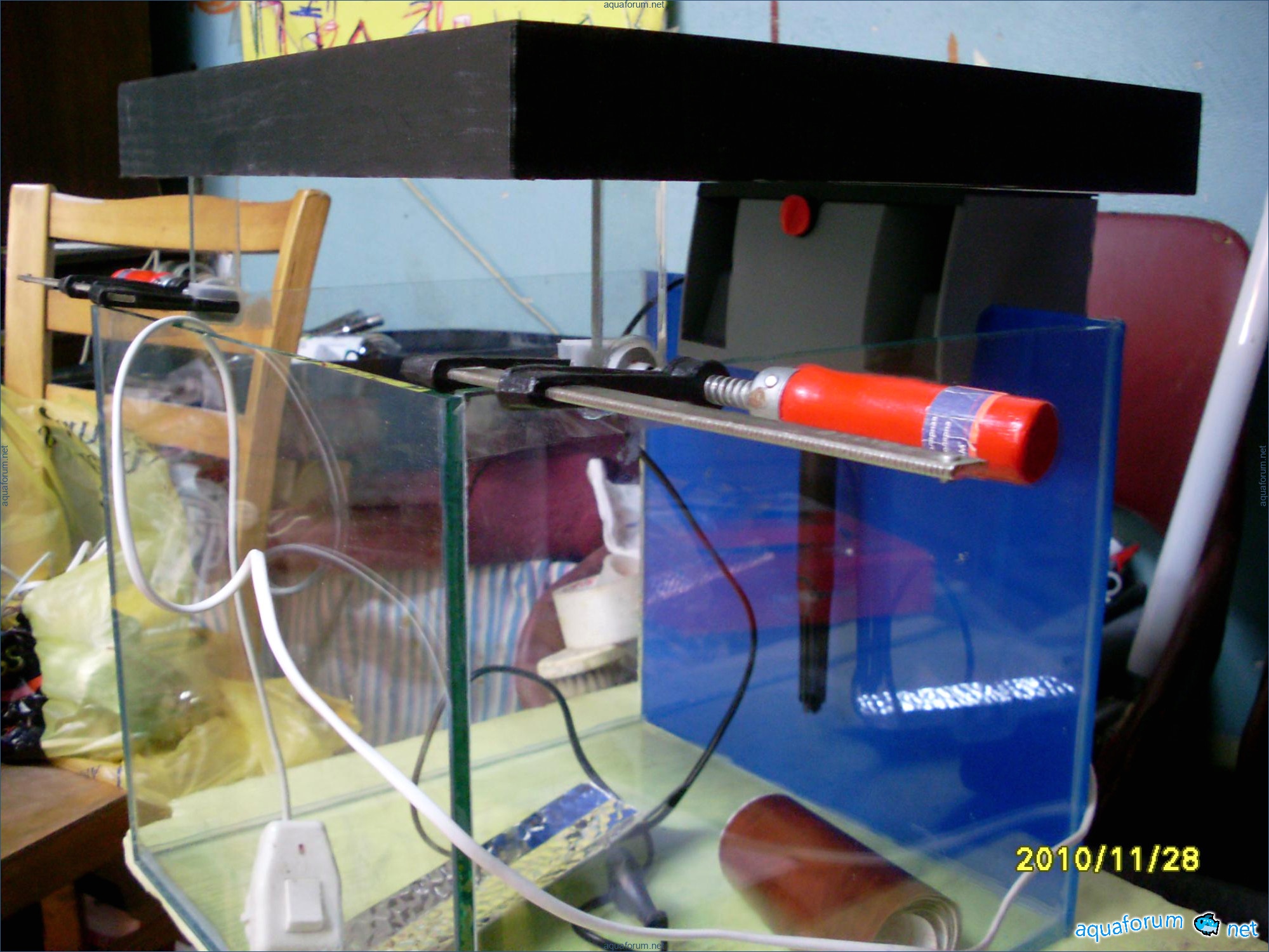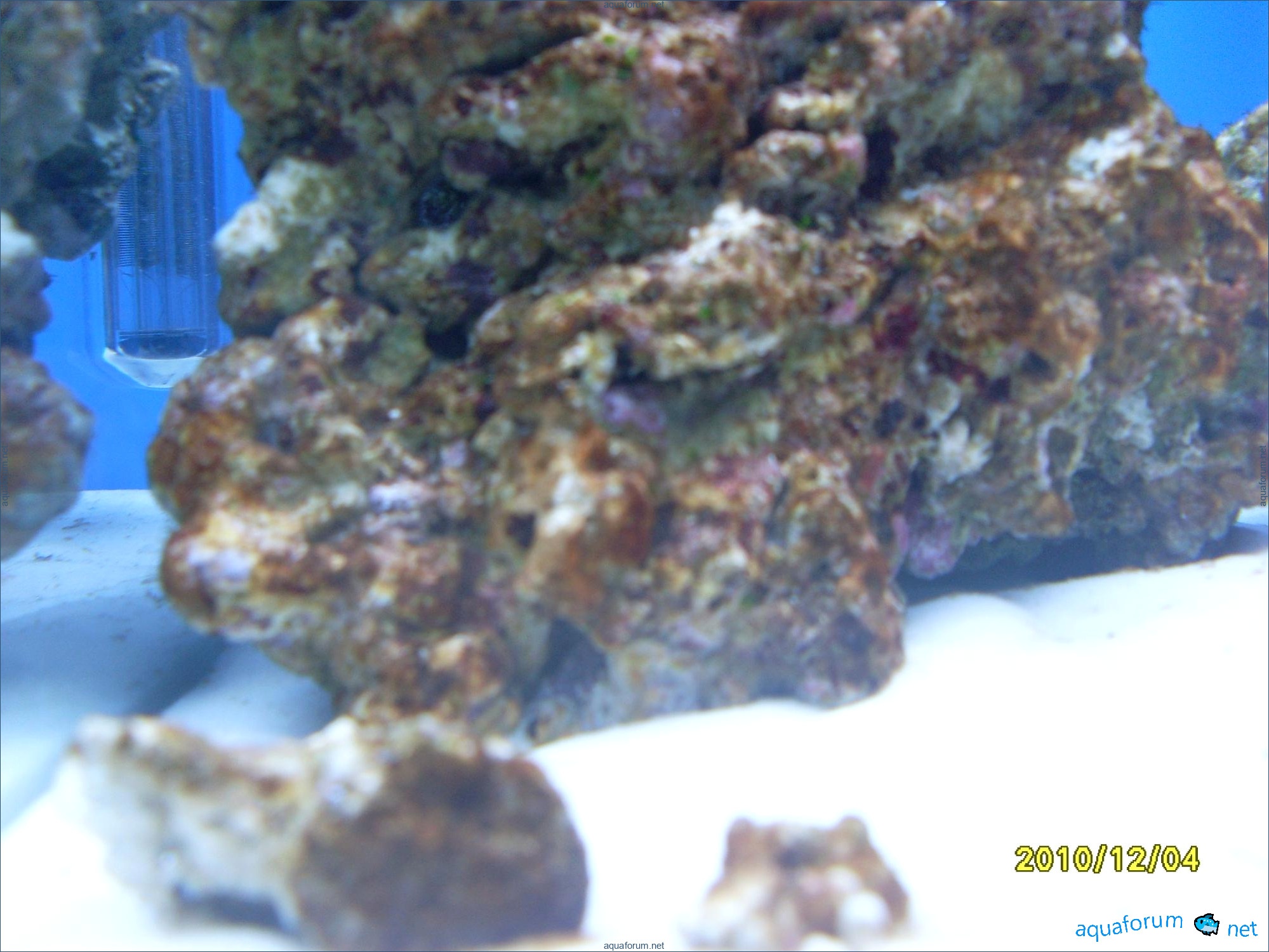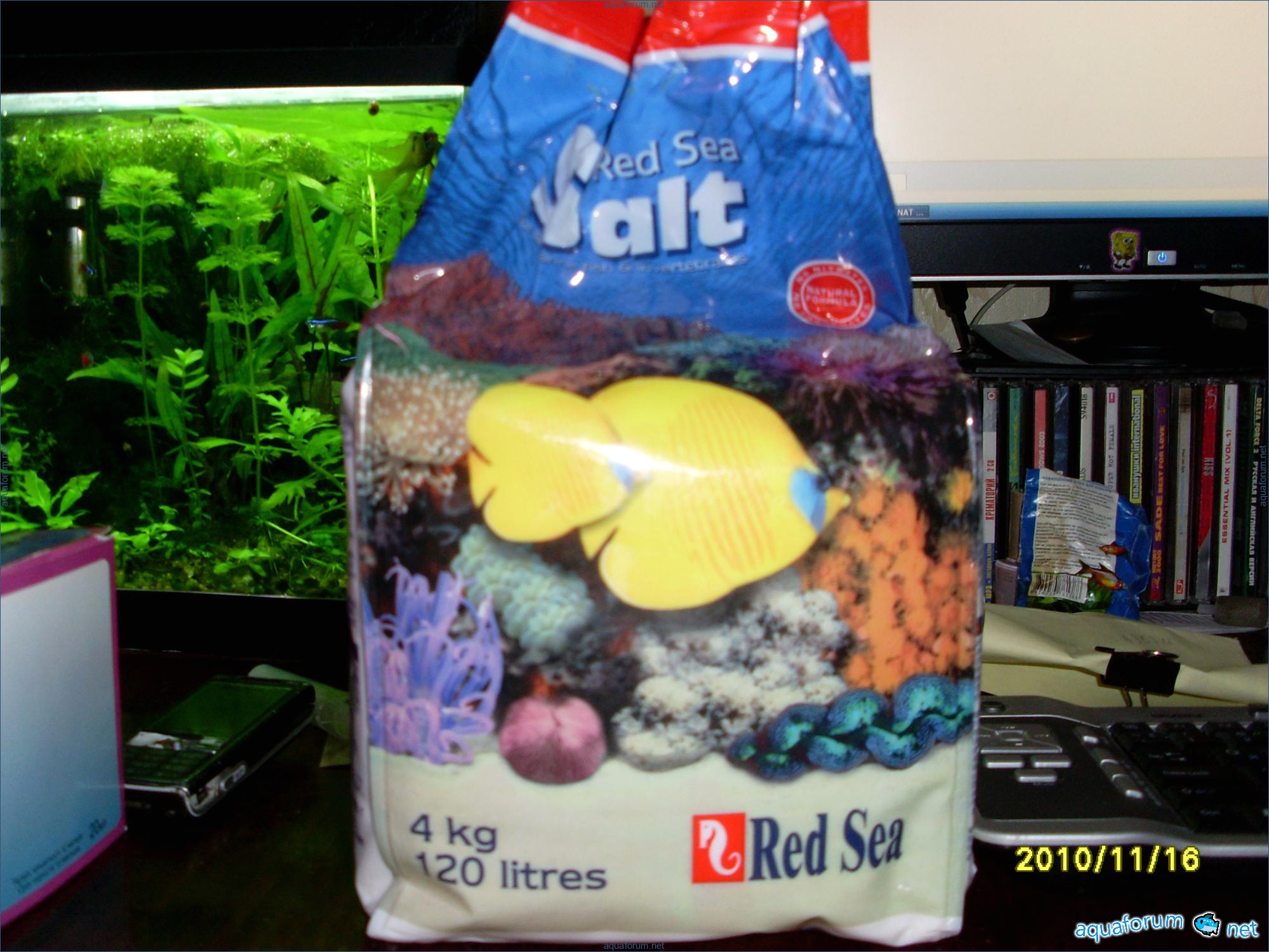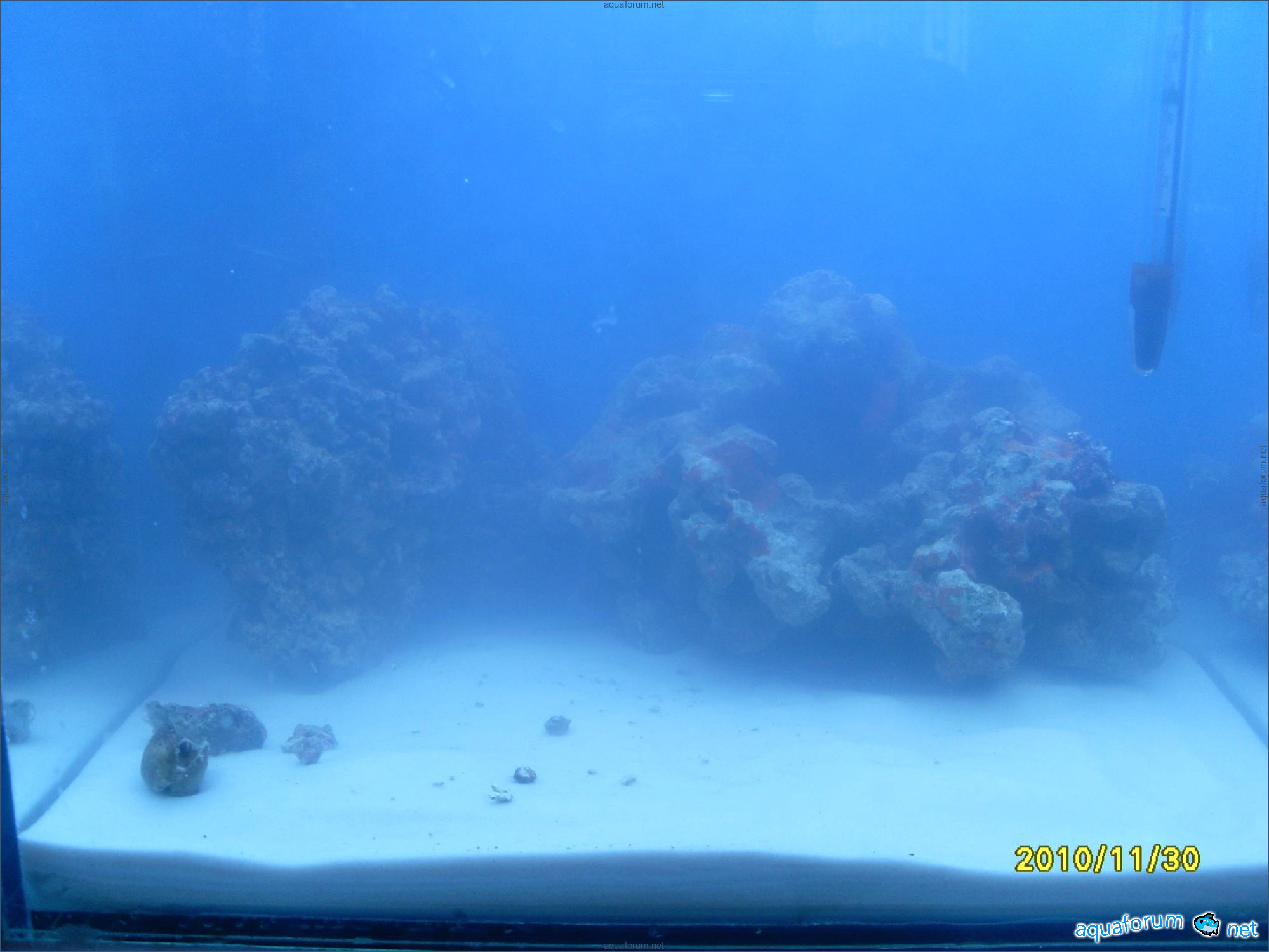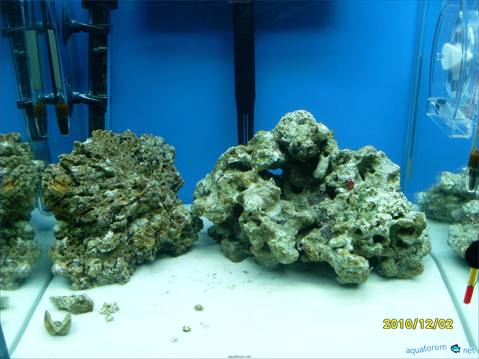 A31-liter cube was used for practice instead of launching a 200-liter sea project. Surprisingly, a 370-liter cichlid aquariumhlid aquarium looks like a bomb, despite the small 31-liter size and two stones. The cube dimensions are 35*35*30 cm. The lighting setup includes 2*24 PL lamps, blue LEDs, and a moonlight. The filtration system consists of an Eheim Liberty filter with sponge, polyfill, and Prigen. A Hailea heater and a Red Sea hydrometer are used. Red Sea salt and Natures Ocean sand are the substrate. Reverse osmosis water is