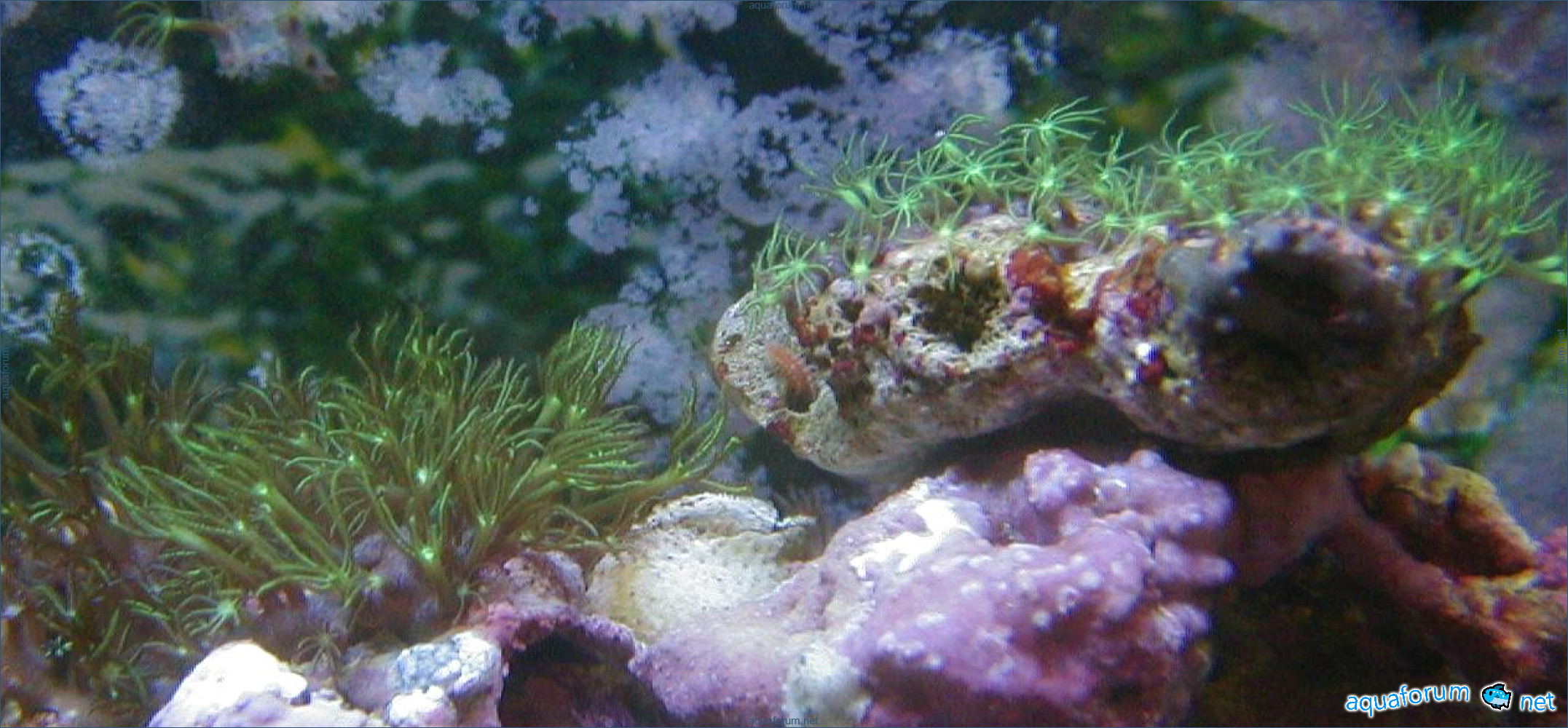 Well, there are also various gammarids, mysids, polychaetes, mussels, a couple of striped worms, sponges, and a bit of algae - chaetomorpha has started to grow, red algae - a phosphate eater, and also snails and little snails that didn't make it into the frame.