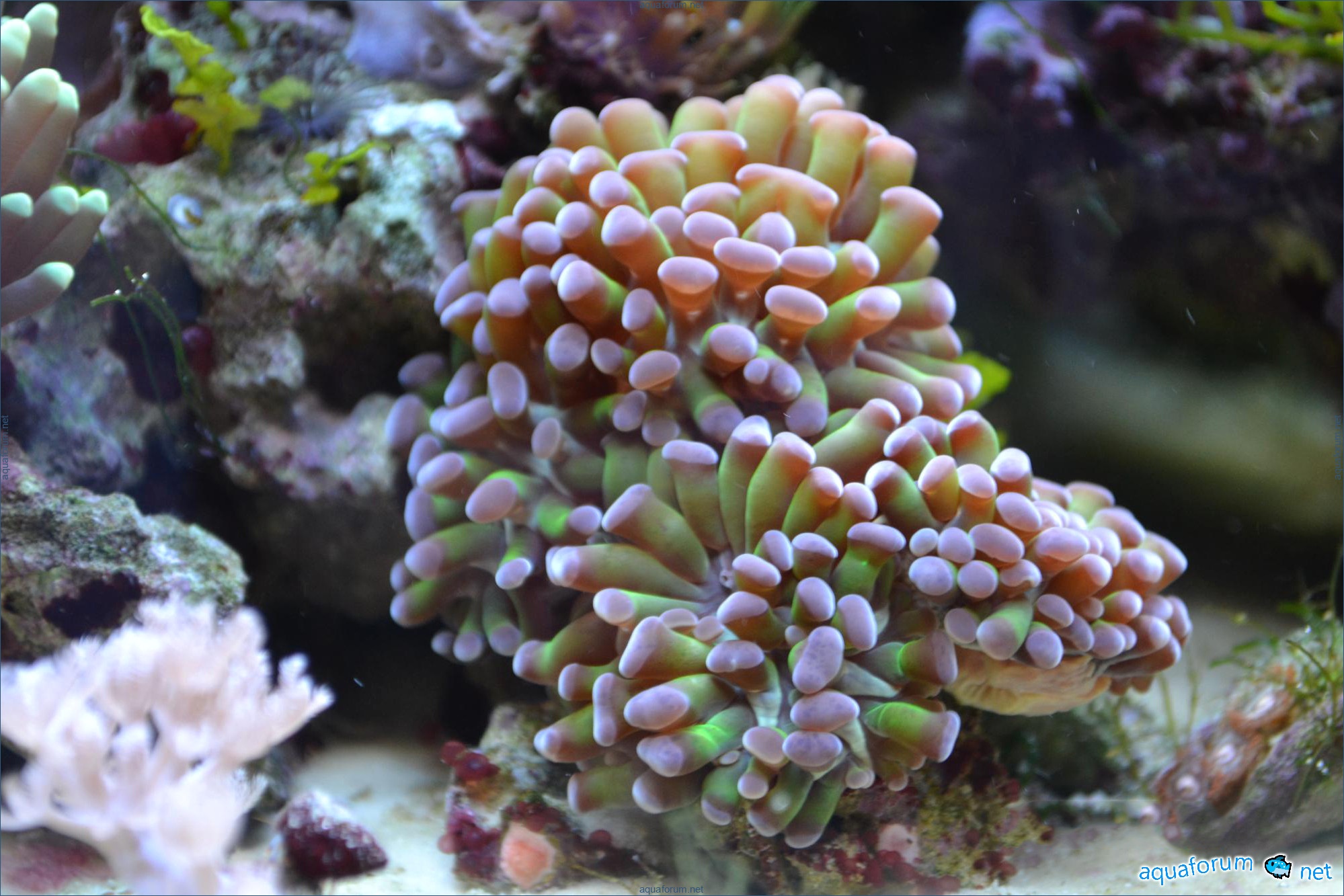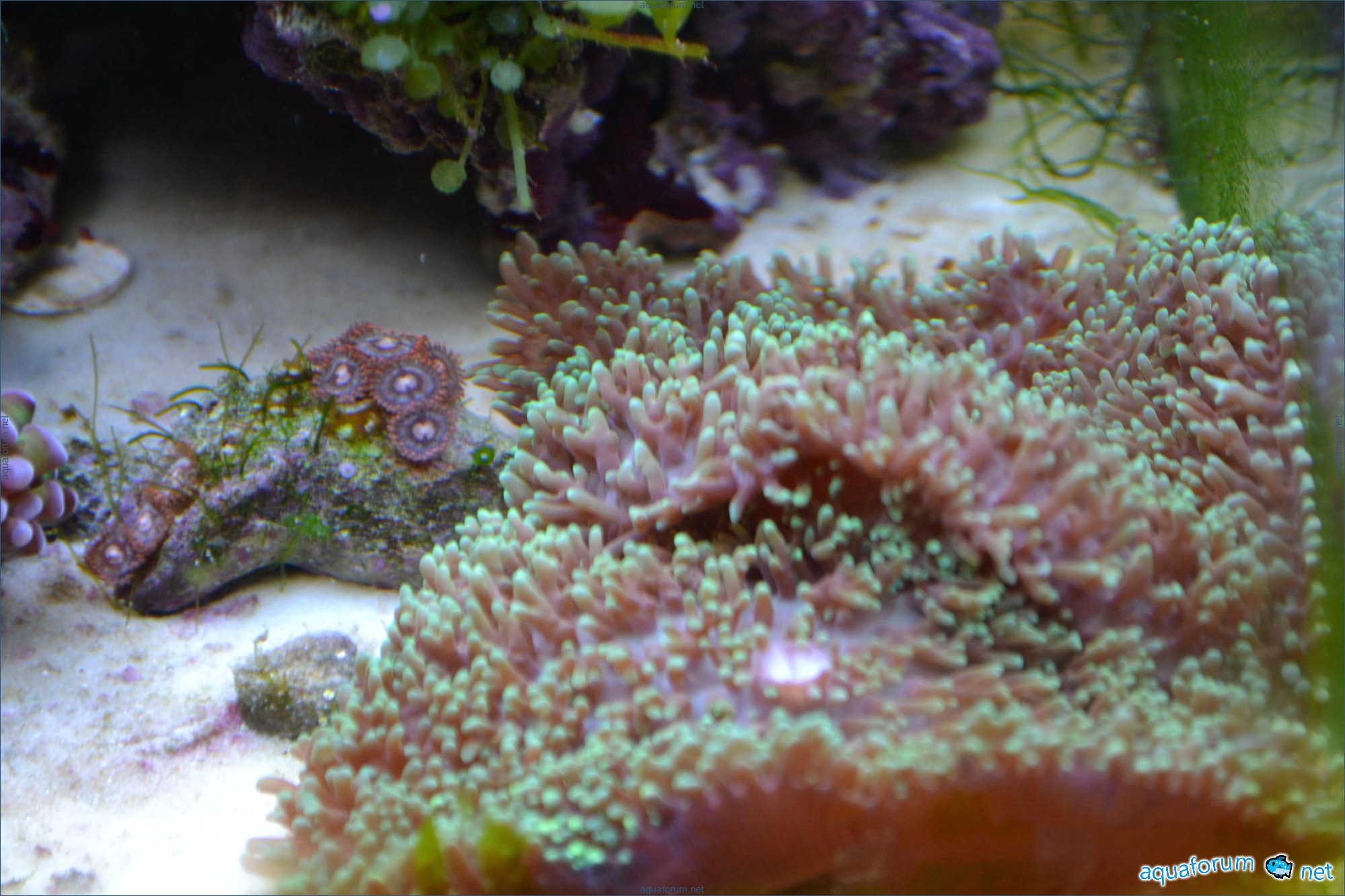 I observe on the stone with Clavularia algae in the form of reddish bubbles resembling grape clusters. Are they beneficial or harmful, or is it better to remove them? Previously, there were elongated green bubbles resembling a bunch of bananas, so I threw them away. Also, under the stone with the Clavularia, there is something resembling a white thick web or a piece of cotton candy. What is this cotton? Is it harmful?