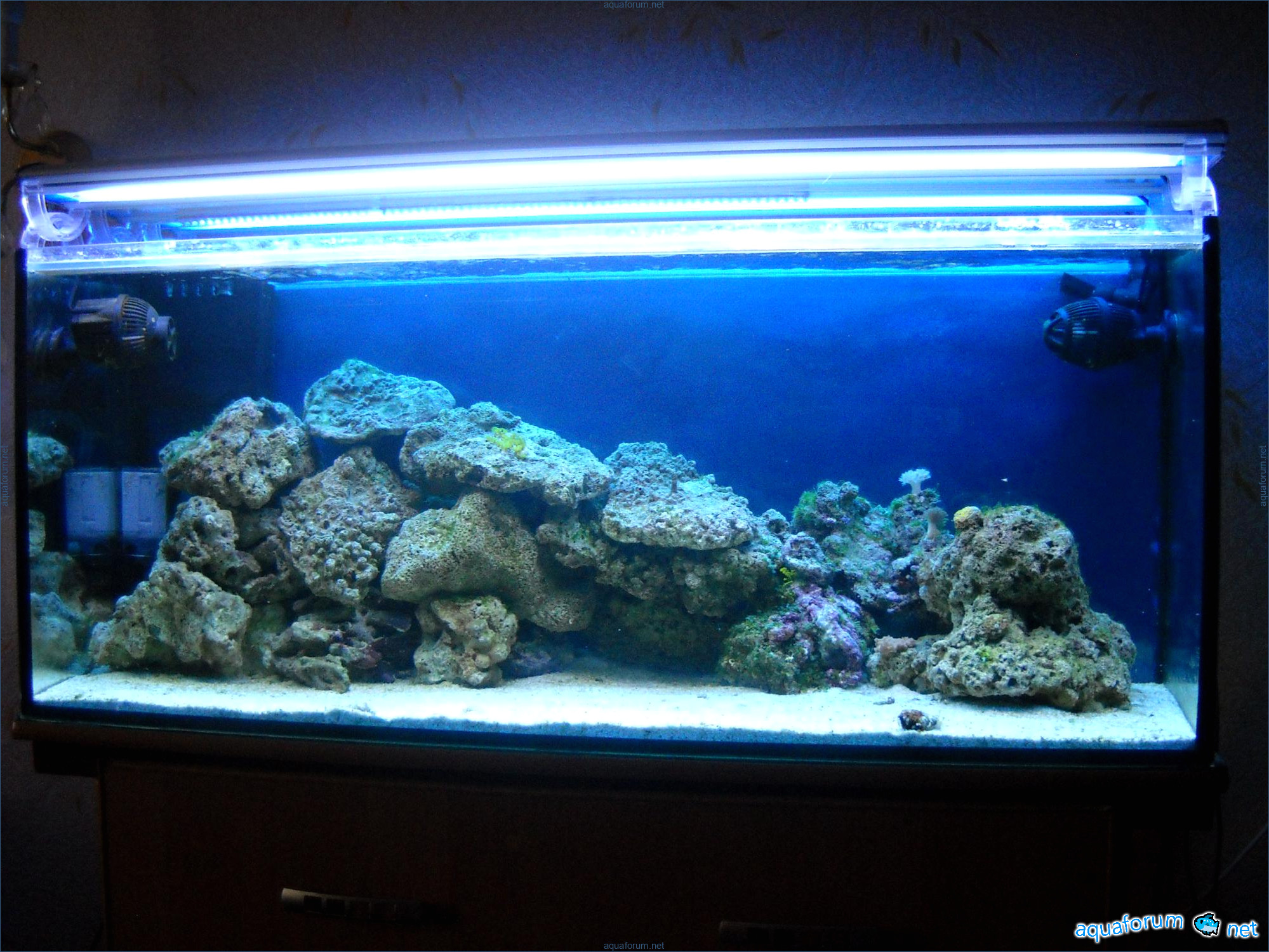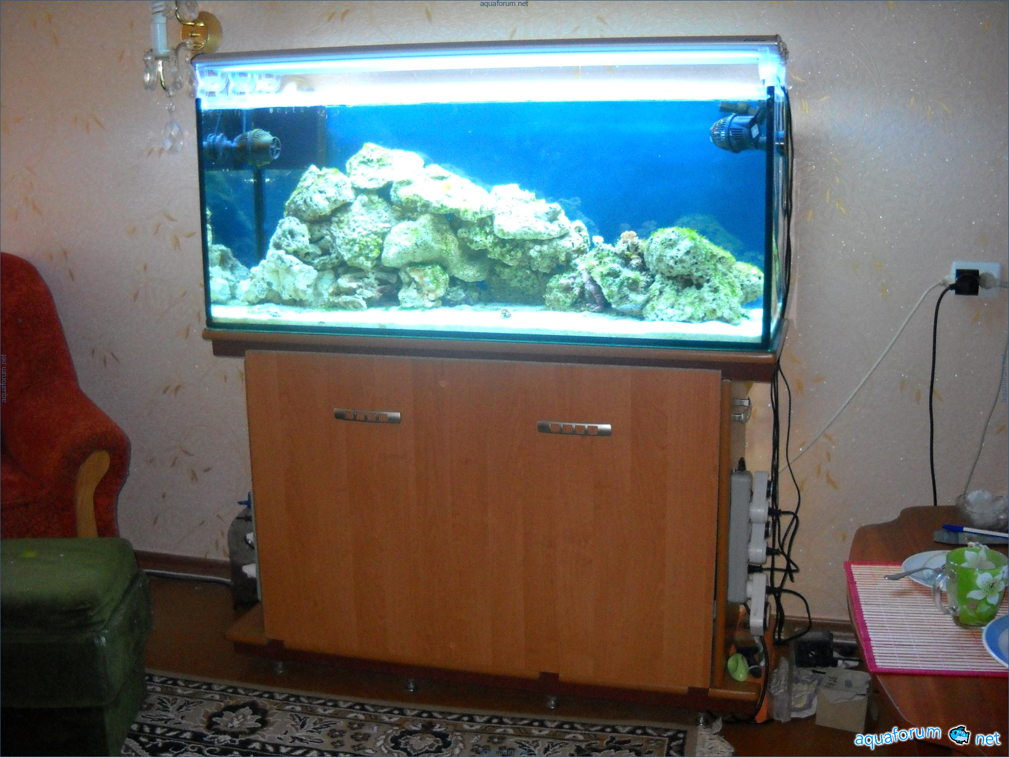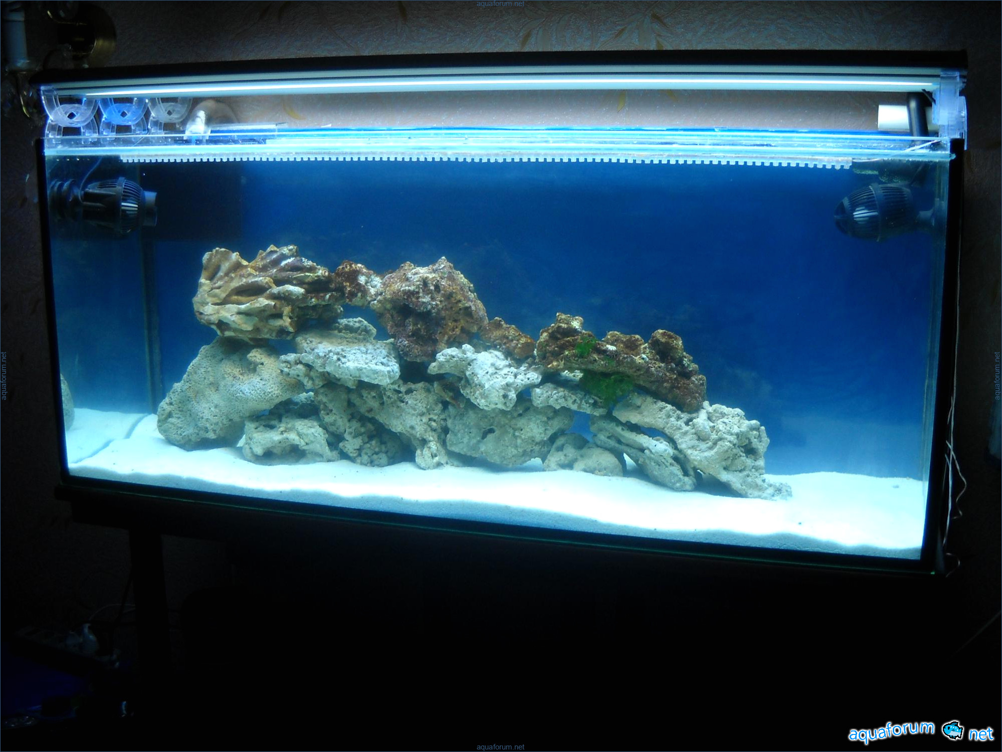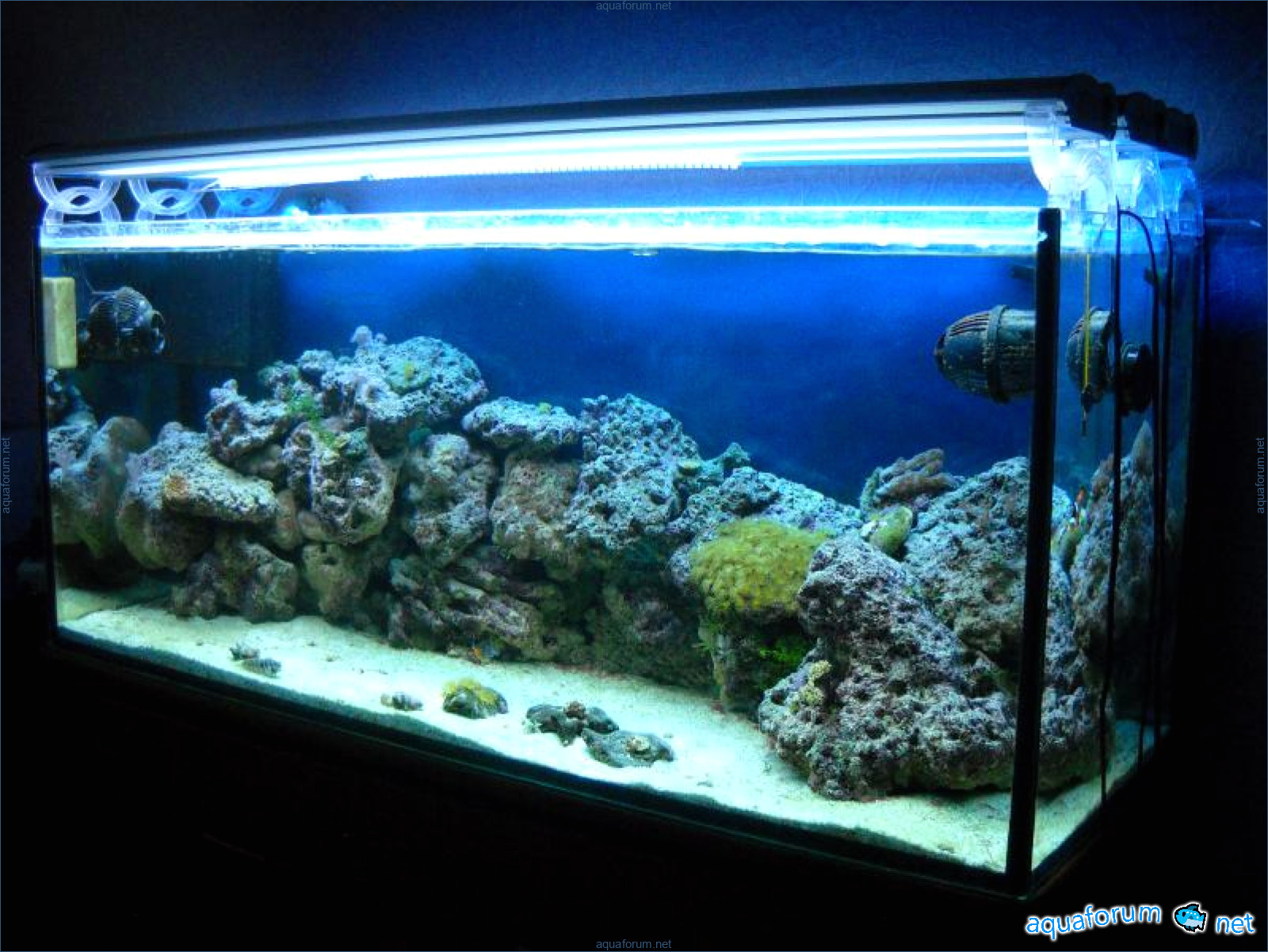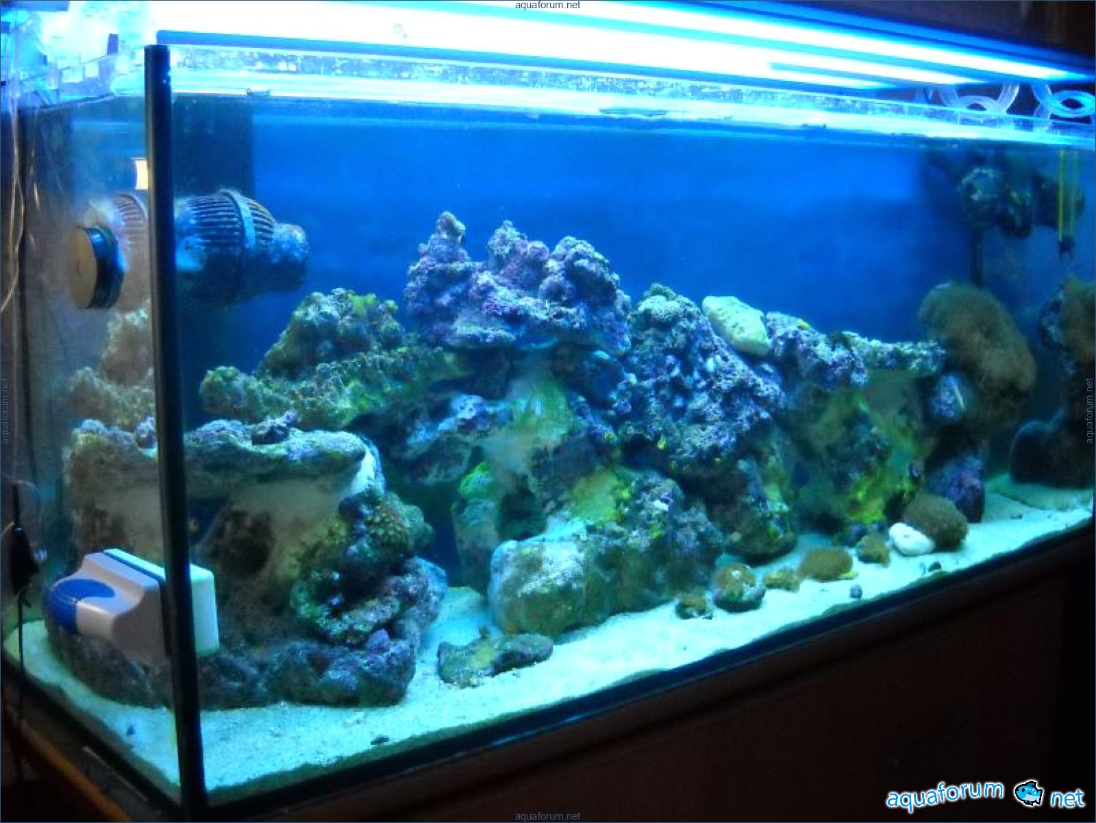Hello everyone, dear forum participants! I have finally collected all the components to launch a marine aquarium. So, it consists of: Aquarium: 1200x400x500H (former freshwater); had to cut off a piece of the back stiffeningrib on one side for the overflow installation (cut with a metal hacksaw with a tungsten blade). Sump: 600x300x400H Lighting: 3 SunSun HDD-1200B lamps, 2x54W T5, 3 white bulbs, 3 blue. Reverse osmosis: 6-stage reverse osmosis system with a pump and AURO-50P-16+M + 2K + 2 resin cartridges. Salt: Tetra Marine (will fill the osmosis and mix in the sump) Overflow: Eshopps PF 300 Protein skimmer: Bubble Magnus BM-110 Drain hose: Eshopps filter sock Flow: 1 x sun sun 3000 l/h, 1 x 5000 l/h Return pump: Viaaqua 1800 Live rock - 7 kg, Dry rock - 25 kg, Sand - 15-18 kg approximately. That's all for now. Photo description: 1,2 - sump gluing; 3 - frame; The rest of the photos up to the cat show the current state of the aquarium; 15, 16 - sump gluing; 17 - sump testing; Further - the chronology of the work done. Gluing the chipboard to the frame, installing the aqu