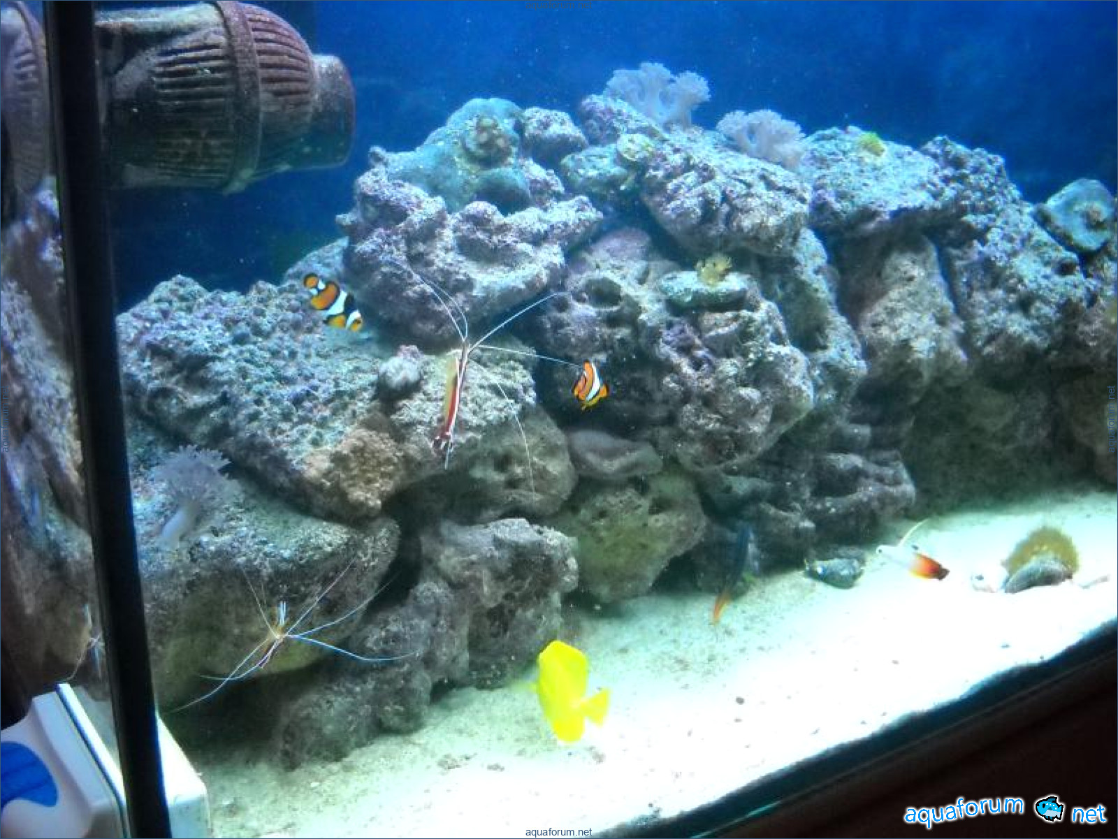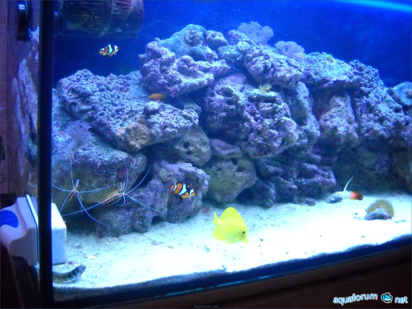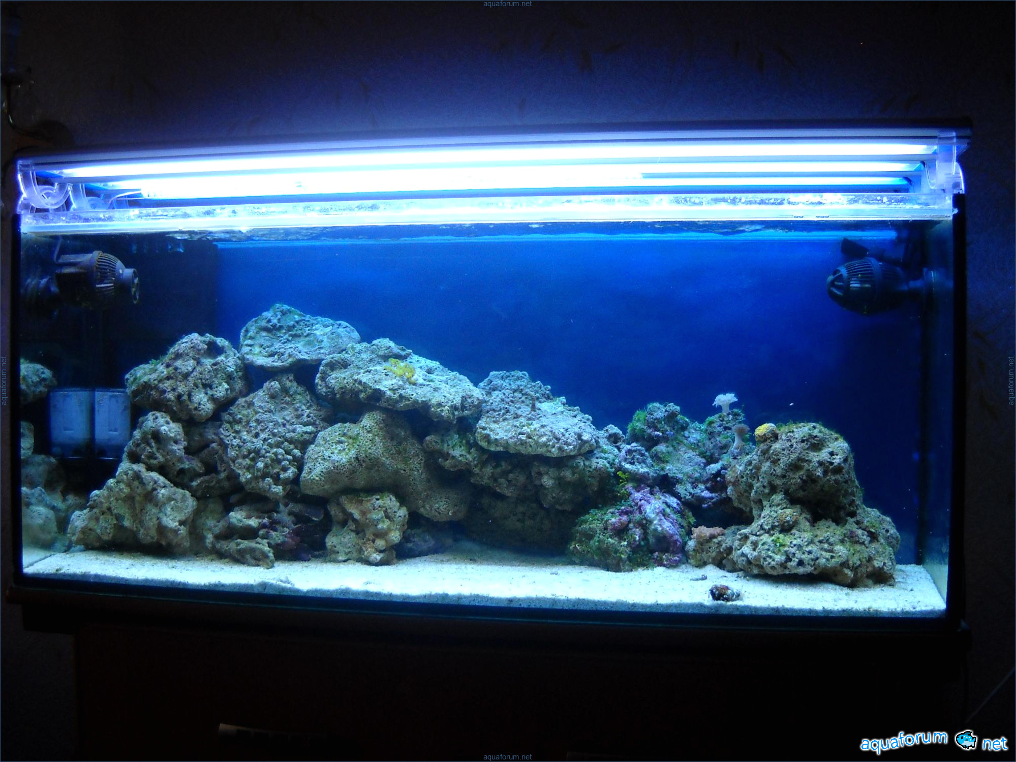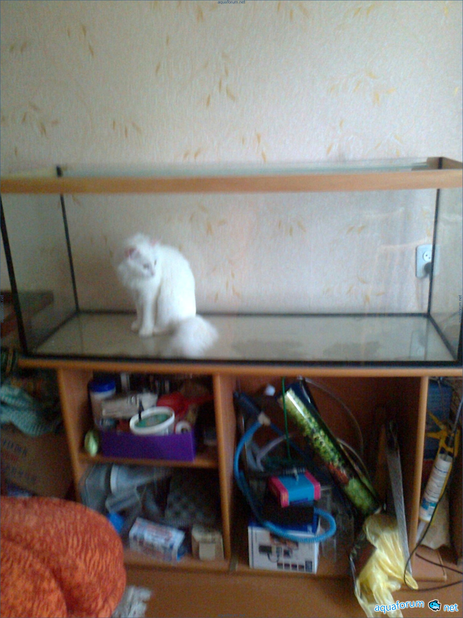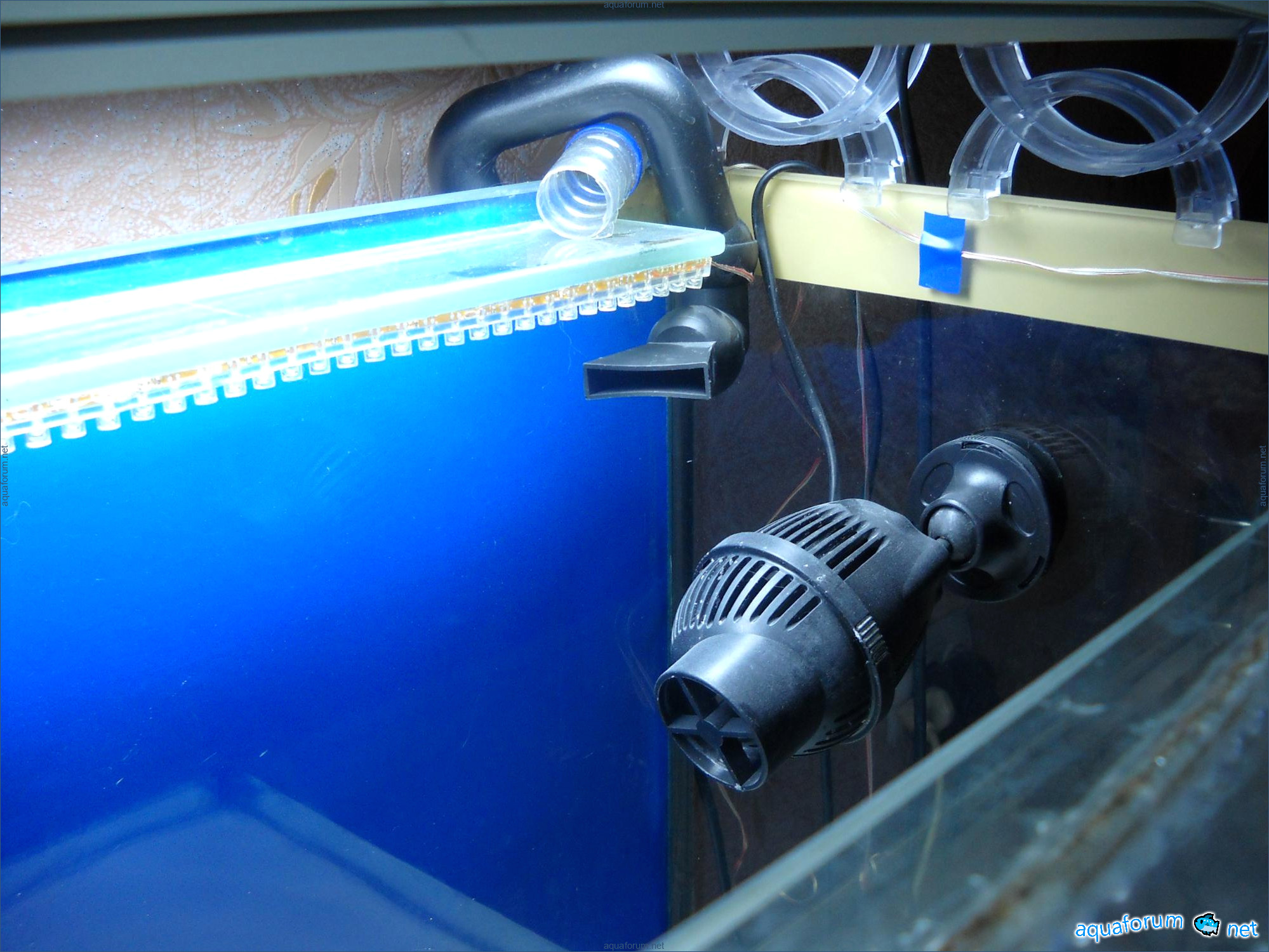 Hello everyone, dear forum participants! I have finally collected all the components to launch a marine aquarium. So, it consists of: Aquarium: 1200x400x500H (former freshwater); had to cut off a piece of the back stiffeningrib on one side for the overflow installation (cut with a metal hacksaw with a tungsten blade). Sump: 600x300x400H Lighting: 3 SunSun HDD-1200B lamps, 2x54W T5, 3 white bulbs, 3 blue. Reverse osmosis: 6-stage reverse osmosis system with a pump and AURO-50P-16+M + 2K + 2 resin cartridges. Salt: Tetra Marine (will fill the osmosis and mix in the sump) Overflow: Eshopps PF 300 Protein skimmer: Bubble Magnus BM-110 Drain hose: Eshopps filter sock Flow: 1 x sun sun 3000 l/h, 1 x 5000 l/h Return pump: Viaaqua 1800 Live rock - 7 kg, Dry rock - 25 kg, Sand - 15-18 kg approximately. That's all for now. Photo description: 1,2 - sump gluing; 3 - frame; The rest of the photos up to the cat show the current state of the aquarium; 15, 16 - sump gluing; 17 - sump testing; Further - the chronology of the work done. Gluing the chipboard to the frame, installing the aqu