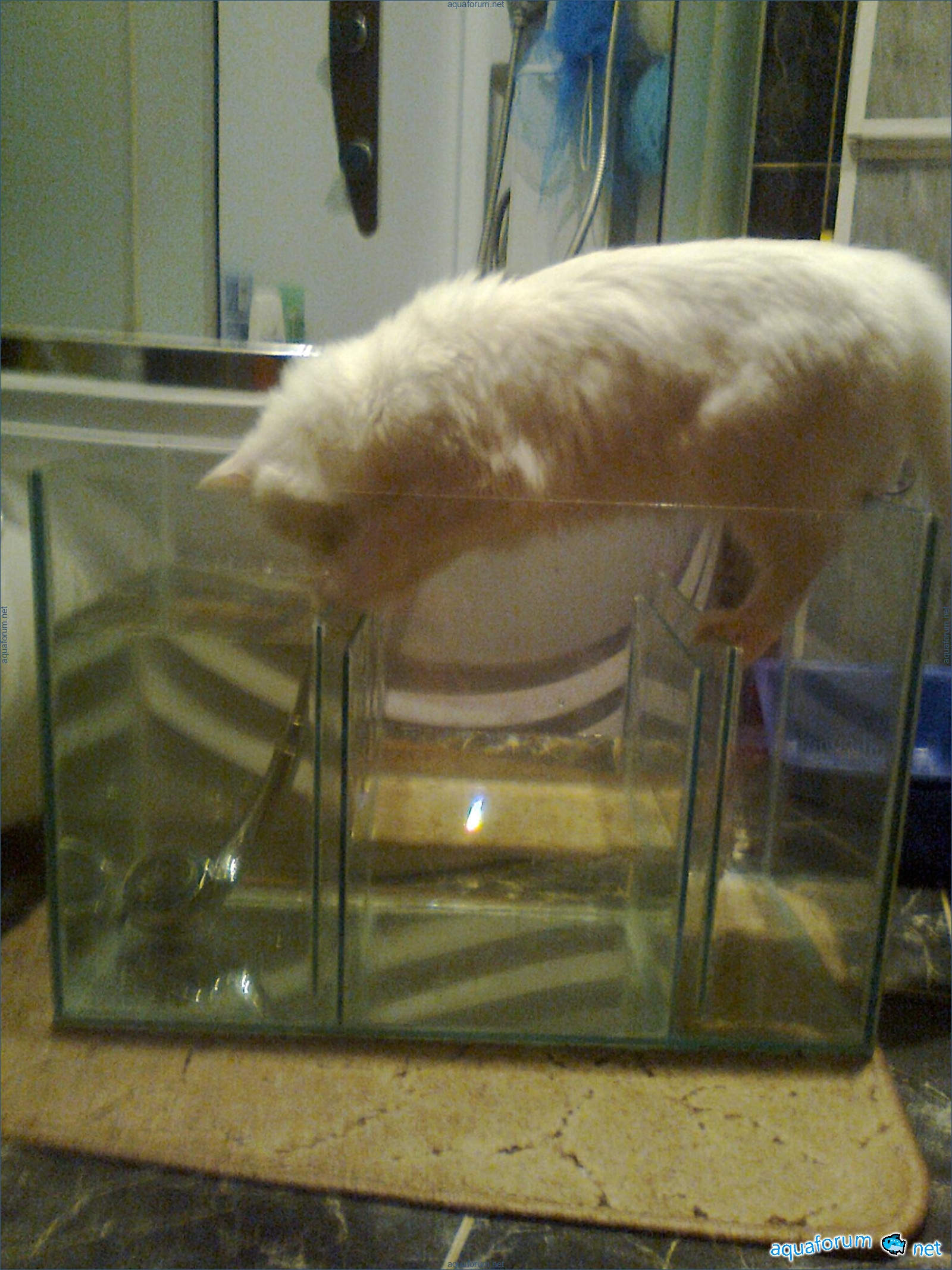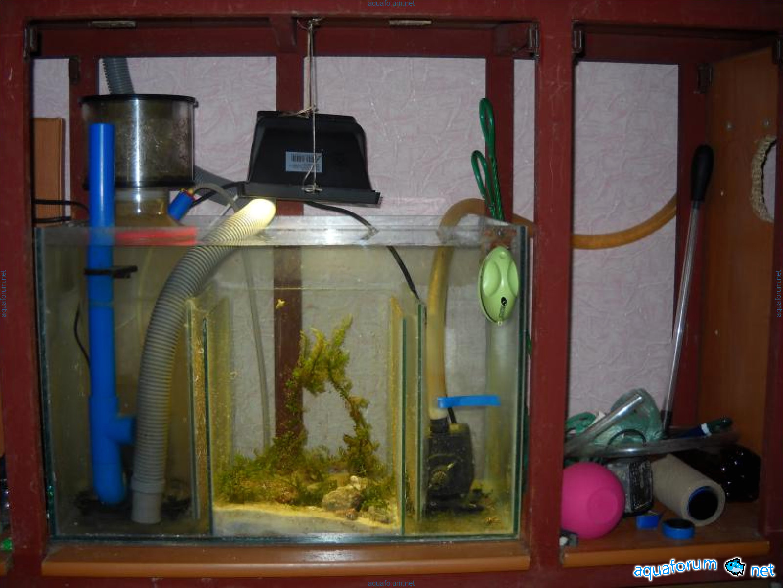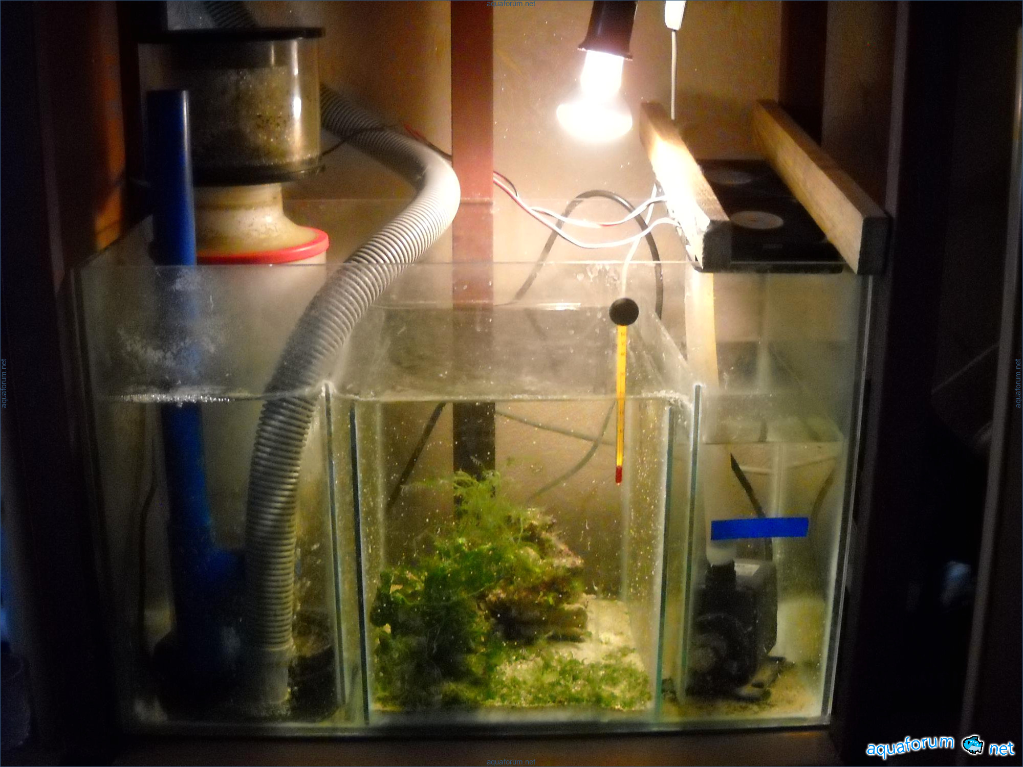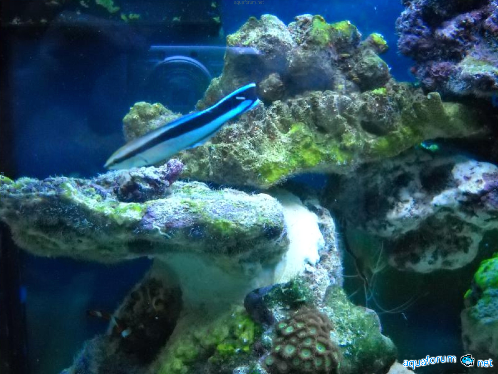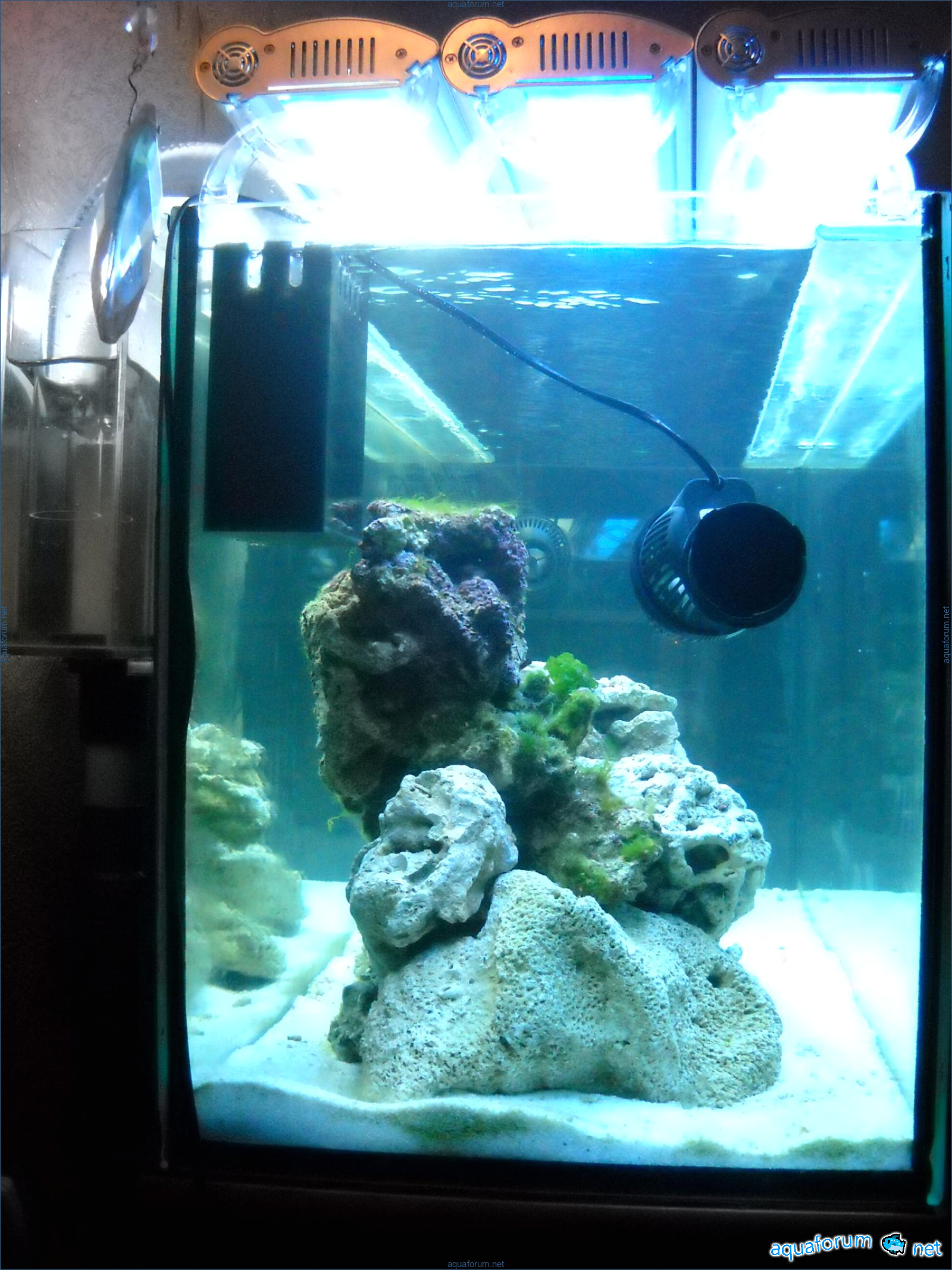 Hello everyone, dear forum participants! I have finally collected all the components to launch a marine aquarium. So, it consists of: Aquarium: 1200x400x500H (former freshwater); had to cut off a piece of the back stiffeningrib on one side for the overflow installation (cut with a metal hacksaw with a tungsten blade). Sump: 600x300x400H Lighting: 3 SunSun HDD-1200B lamps, 2x54W T5, 3 white bulbs, 3 blue. Reverse osmosis: 6-stage reverse osmosis system with a pump and AURO-50P-16+M + 2K + 2 resin cartridges. Salt: Tetra Marine (will fill the osmosis and mix in the sump) Overflow: Eshopps PF 300 Protein skimmer: Bubble Magnus BM-110 Drain hose: Eshopps filter sock Flow: 1 x sun sun 3000 l/h, 1 x 5000 l/h Return pump: Viaaqua 1800 Live rock - 7 kg, Dry rock - 25 kg, Sand - 15-18 kg approximately. That's all for now. Photo description: 1,2 - sump gluing; 3 - frame; The rest of the photos up to the cat show the current state of the aquarium; 15, 16 - sump gluing; 17 - sump testing; Further - the chronology of the work done. Gluing the chipboard to the frame, installing the aqu