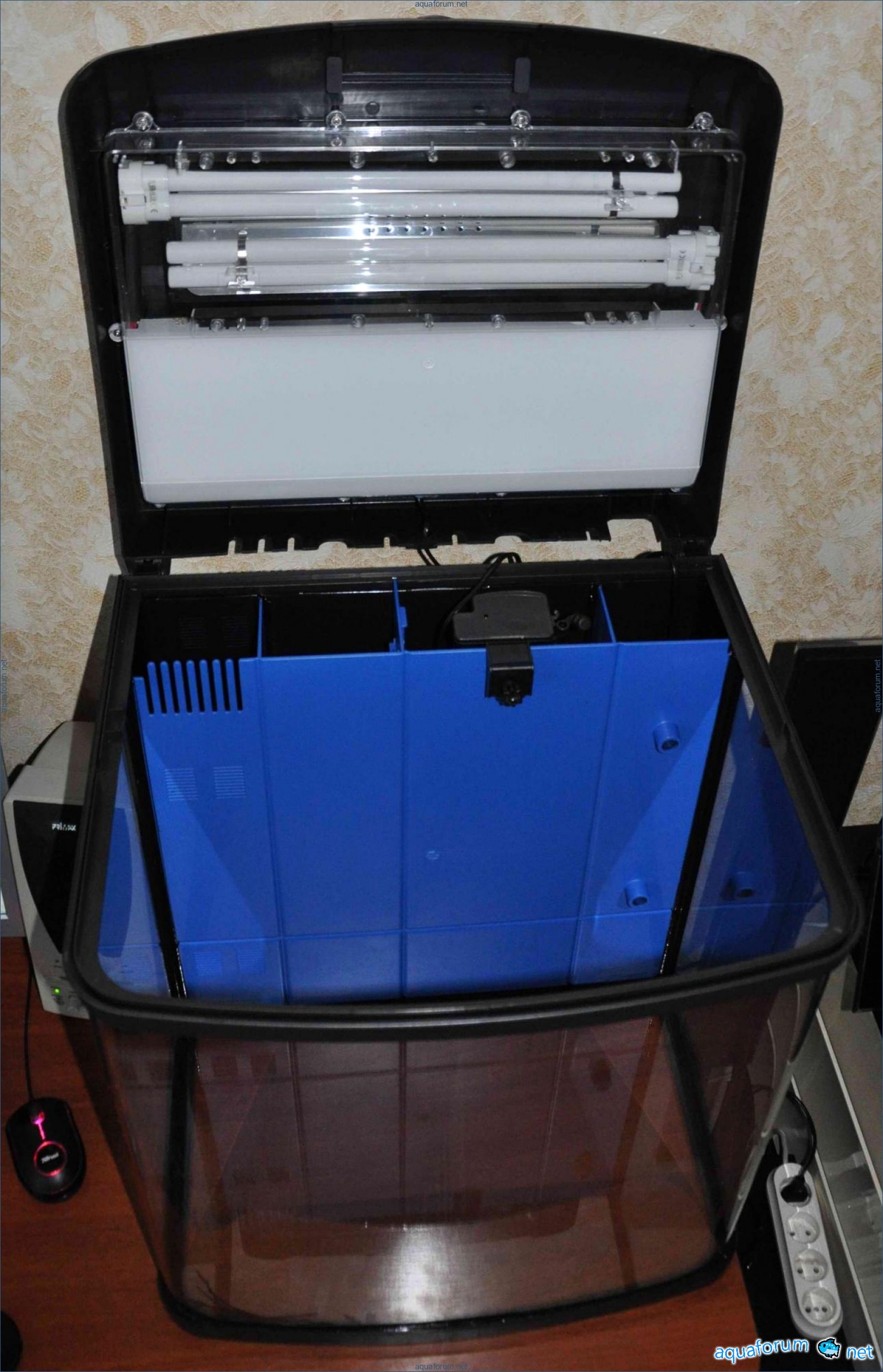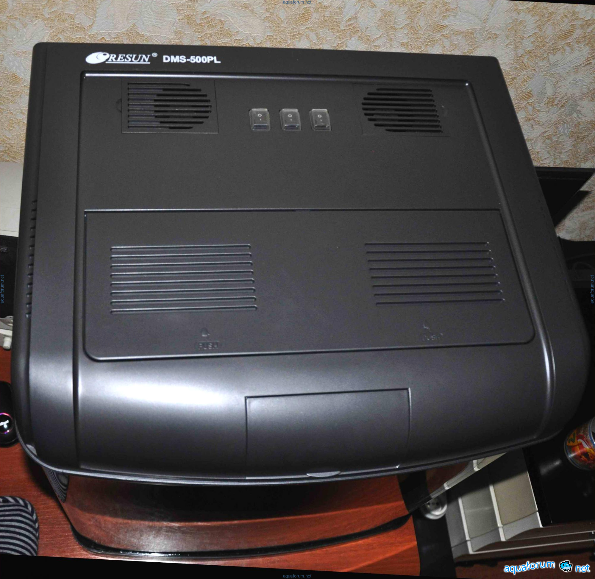 While making a large aquarium, I decided to start a small marine tank and gain some practical experience. I chose the Resun DMS-500PL aquarium, which was successfully acquired today along with the Resun sk-300 skimmer. The total cost was $200. Additionally, before salting, the following items were purchased: 1. Carib Sea sand, 9.2 kg, white, $50. 2. Tetra Marine Aquarium Sea Salt, 4 kg, $20. 3. Aqua Medic Salimeter hydrometer, $10. 4. Hydor Koralia Nano New pump, 900 l/h, $35. 5. Reverse osmosis water, 80 l, $10. I still need to buy 20 l more. The total is $325. Photo of the j