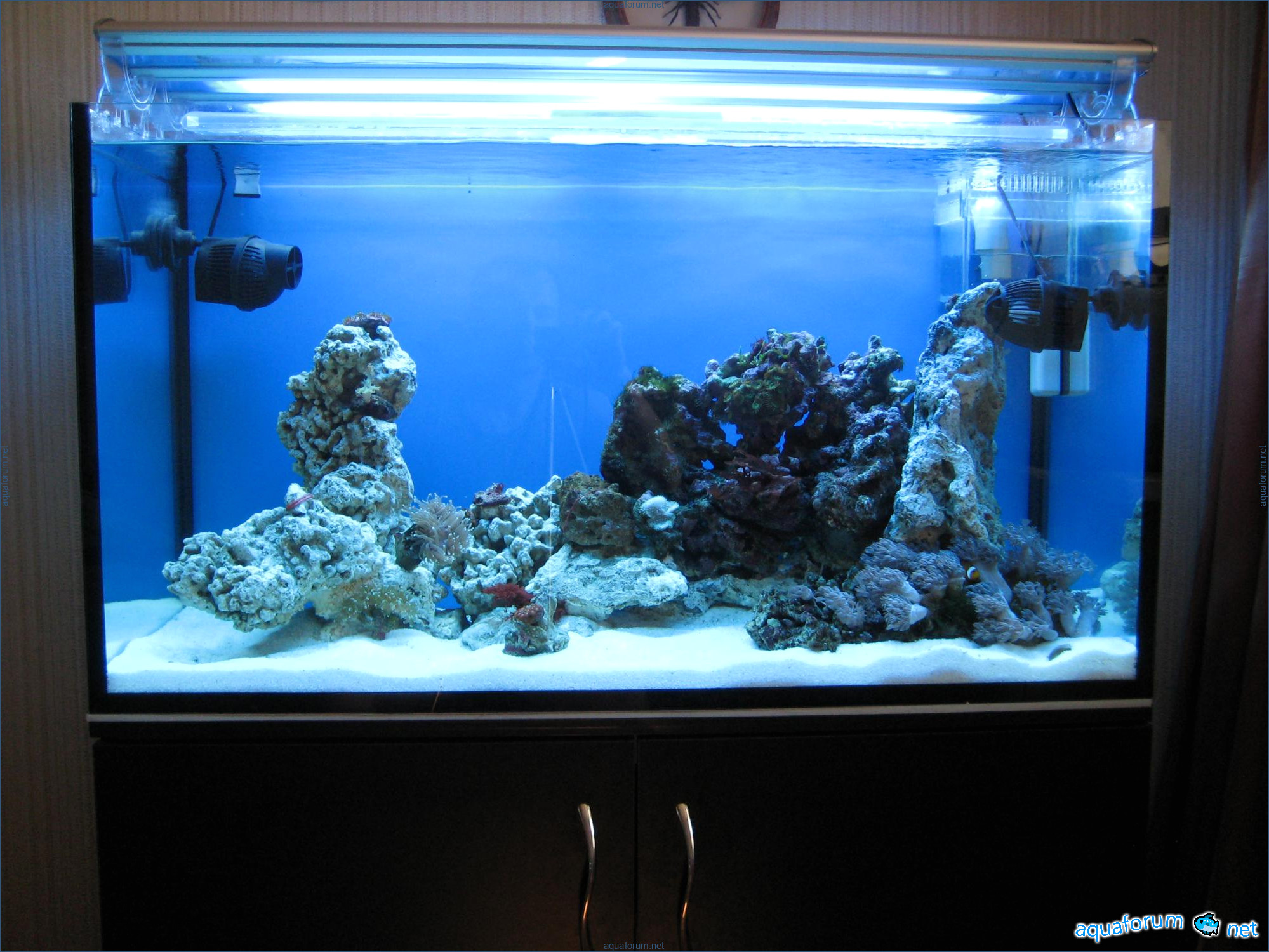 Finally, it happened. To be honest, I have been working towards this for a long time. I started the development and preparation of everything necessary as early as last November. I already had an 80-liter aquarium, which gave me a small but necessary experience. I would like to express my sincere gratitude to all the people who helped me, gave valuable advice, and shared their experience. The transplant from the 80-liter tank went well. It took me an entire day, from 9 a.m. to 6 p.m. But I am satisfied with the result. And now, step by step. The cabinet. The frame is made of profile and corners (not welded by me), and I covered it with 16mm chipboard. The paint is hammered. The aquarium. 100*45*55 (custom-made. I drilled the hole myself, which was quite fun). The sump has 3 compartments and a homemade auto-top-up system for 15 liters. The water was taken from my own reverse osmosis system. The salt is Tetra ine SeaSalt. The skimmer was purchased from a a. The lighting is SunSun HDD-1000B, 2x39W T5. 3 different colored lamps are used,3 blue and 3 white. The circulation pump is SunSun JVP-102, 5000 l/h, and SunSun JVP-101, 3000 l/h. The return pump is Atman PH-2000, ViaAqua-1800, 2000 l/h.20 kg of dry reef rocks and 10 kg of live rocks were used. The sterilizer is Atman UV 9W. I bought20 kg of sand and used about 14 kg. This is a topic where the equipment for this aquarium is selected. Maybe it will be useful for someone, and of course, photos for the history.