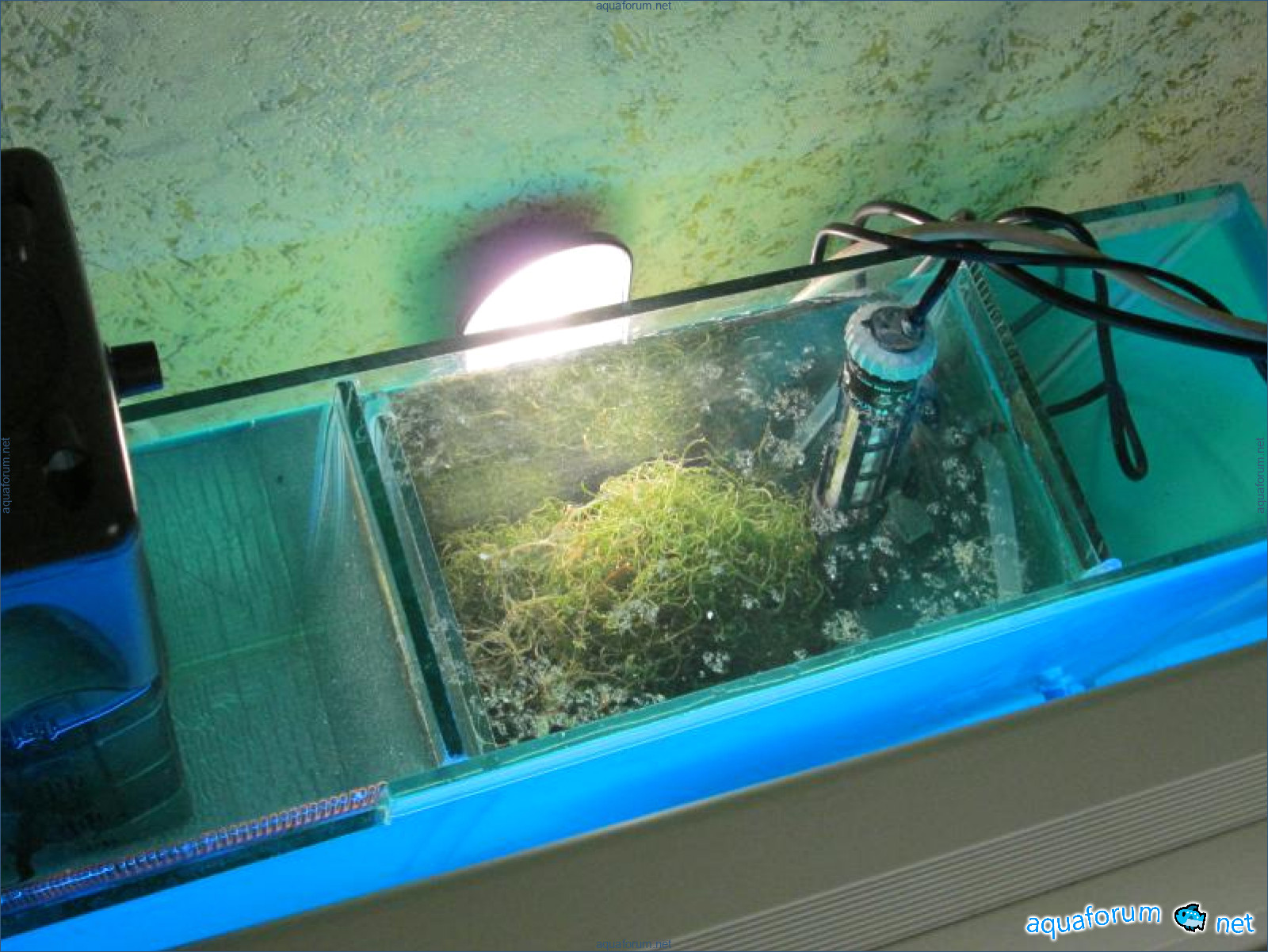 8. Sump: 1st compartment - protein skimmer, 2nd - Hetemorpha (later I will add 1-2 kg of live rock rubble), 3rd - return pump